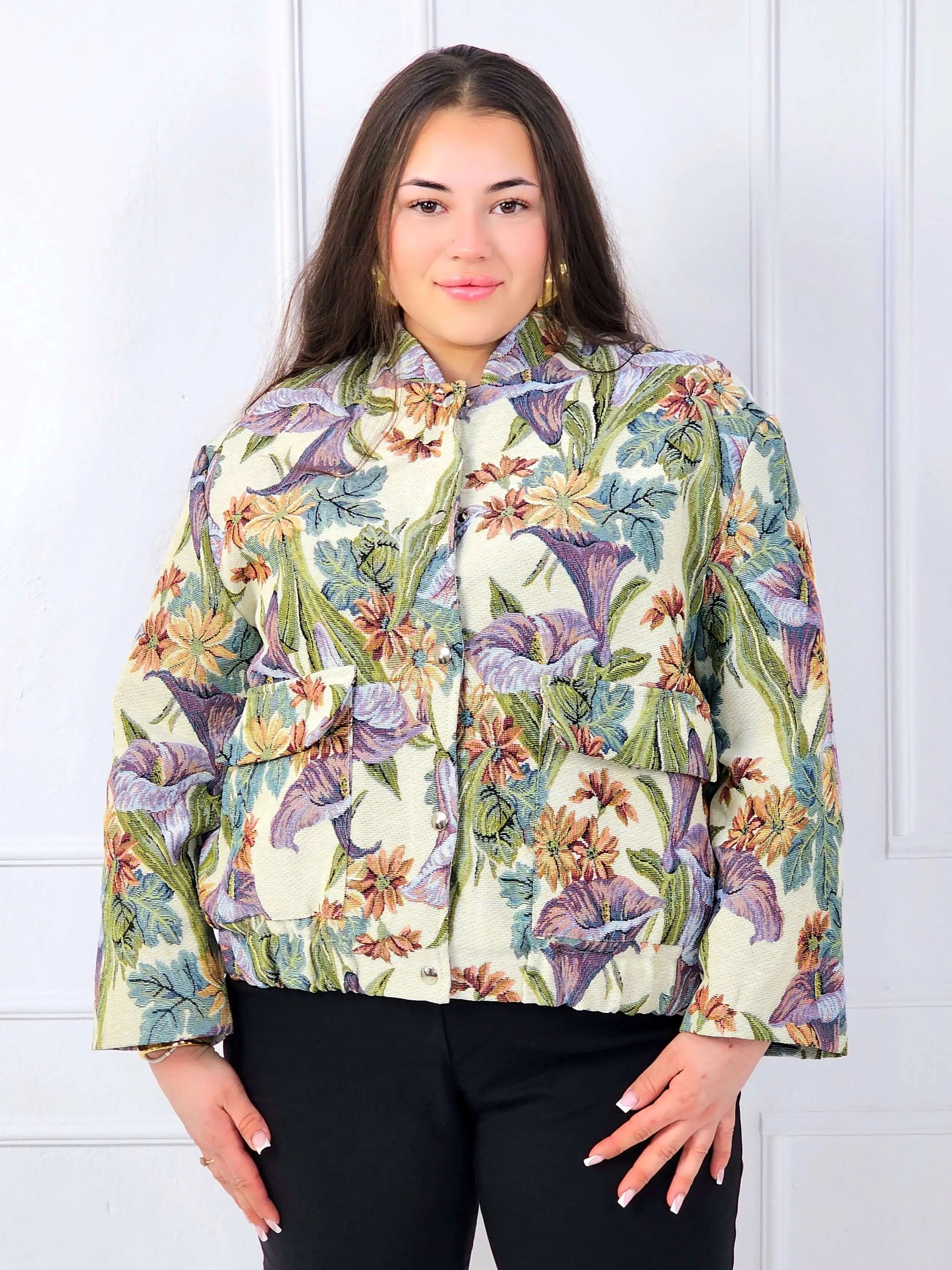 Kurtka plus size w kwiatowy wzór – elegancka kurtka XXL dla kobiet