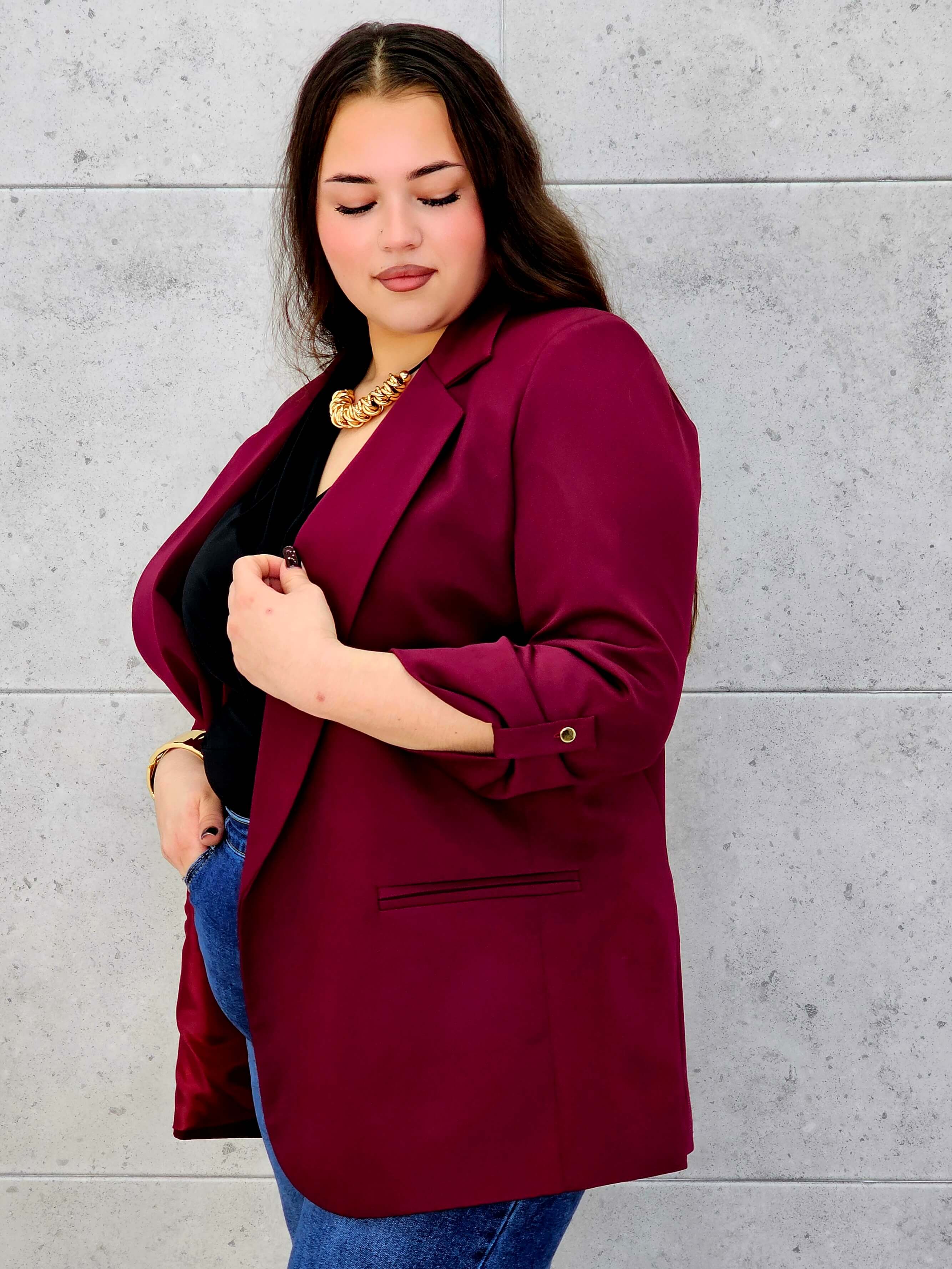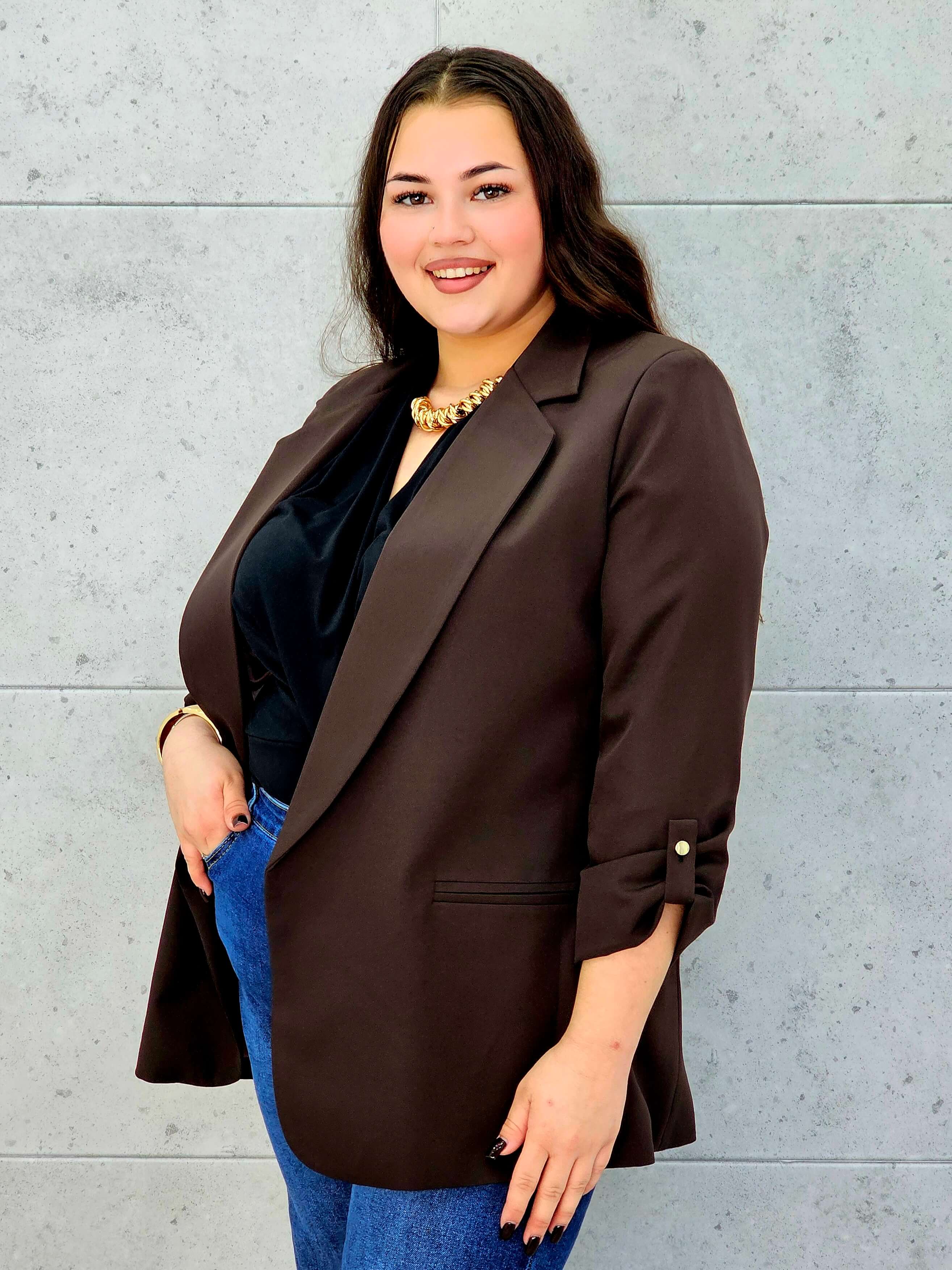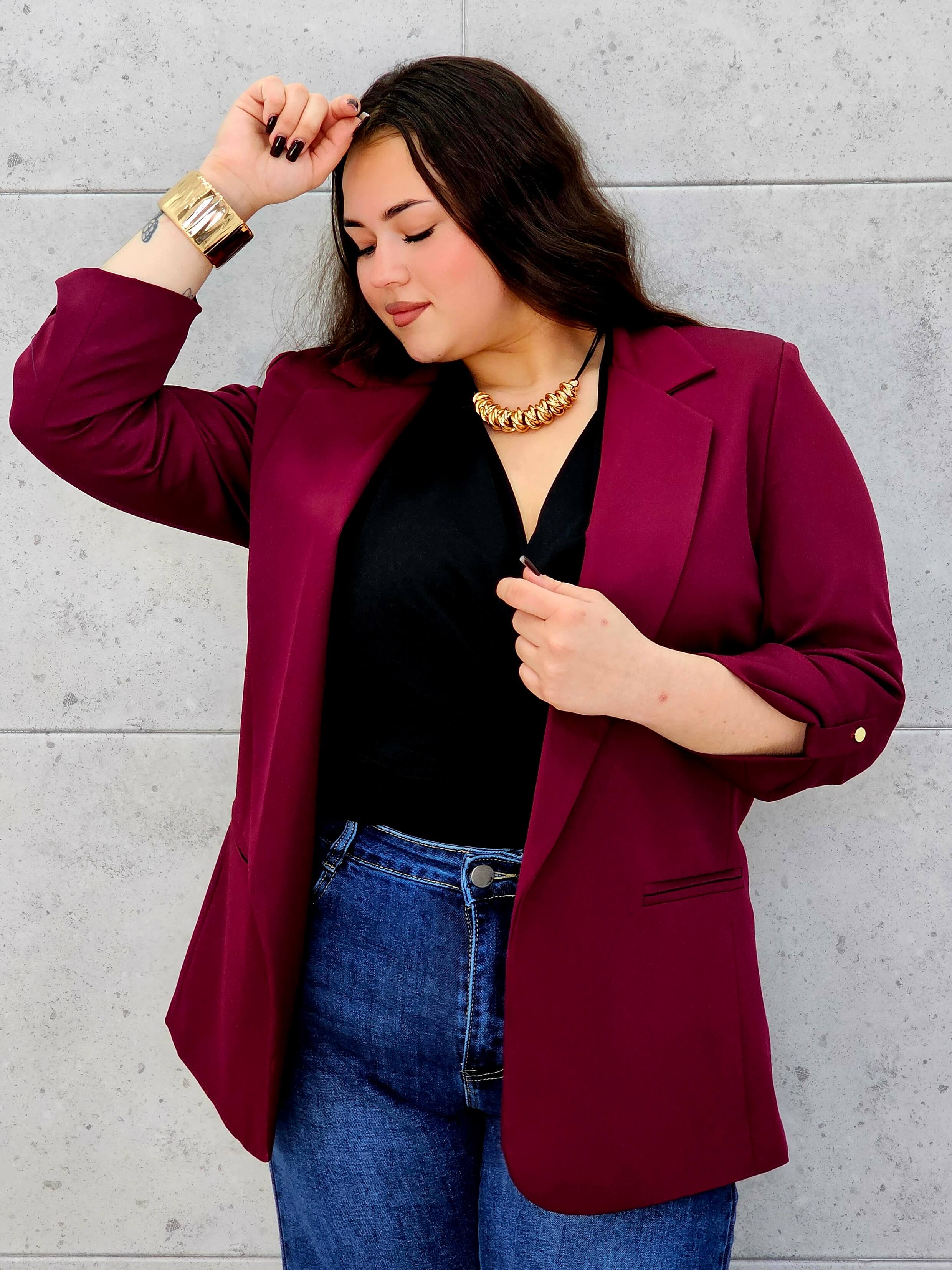Marynarka plus size z podwijanym rękawem – klasyka w nowoczesnym wydaniu