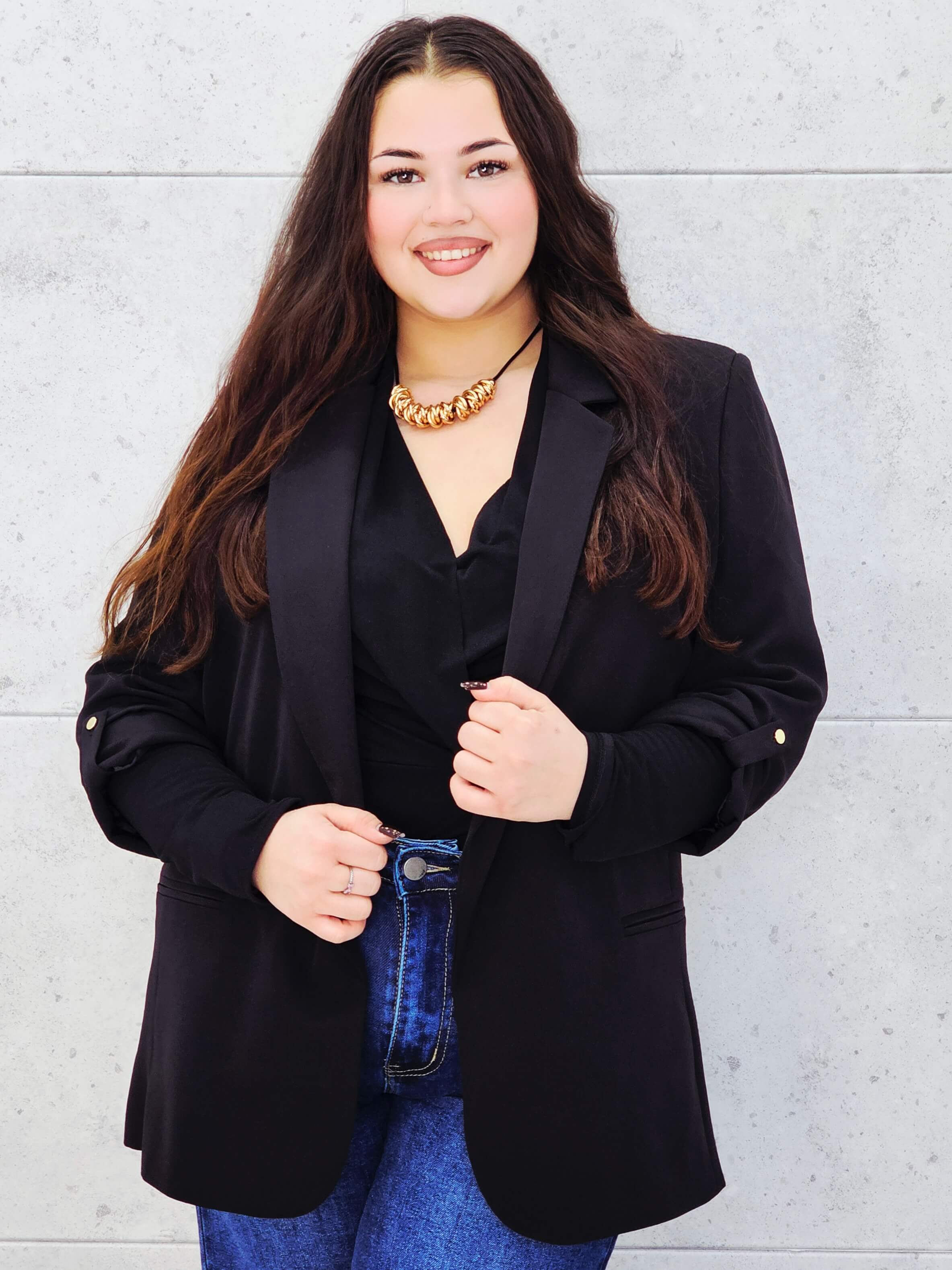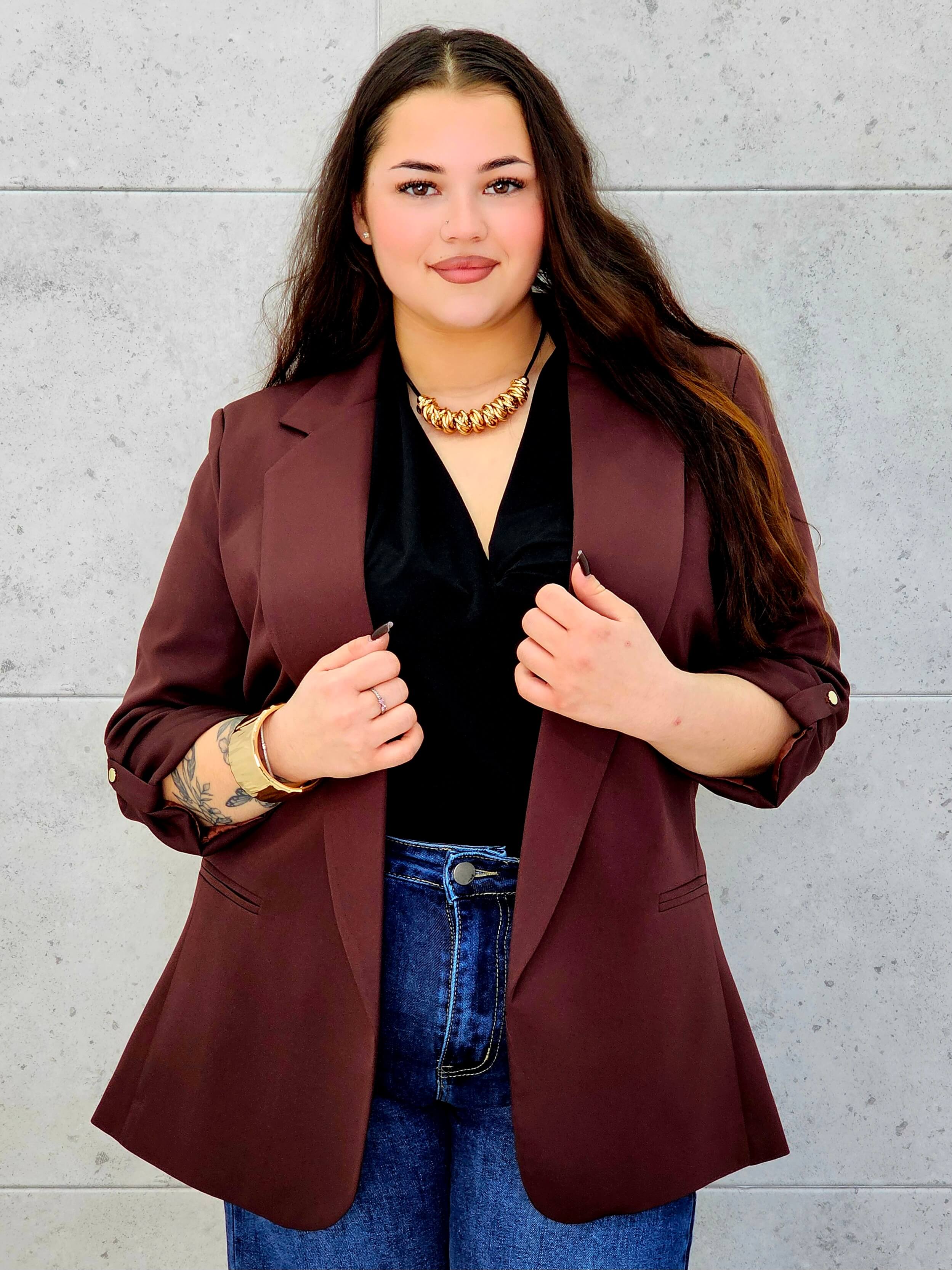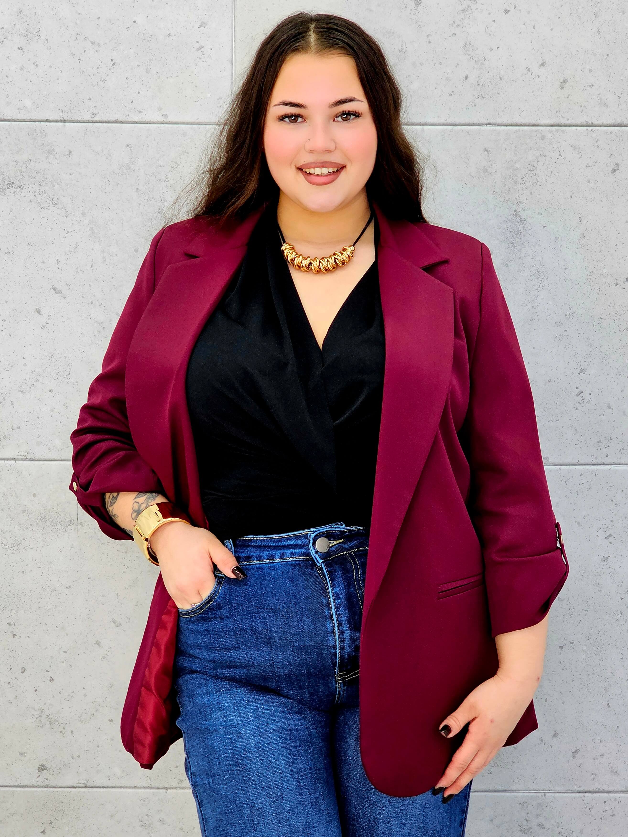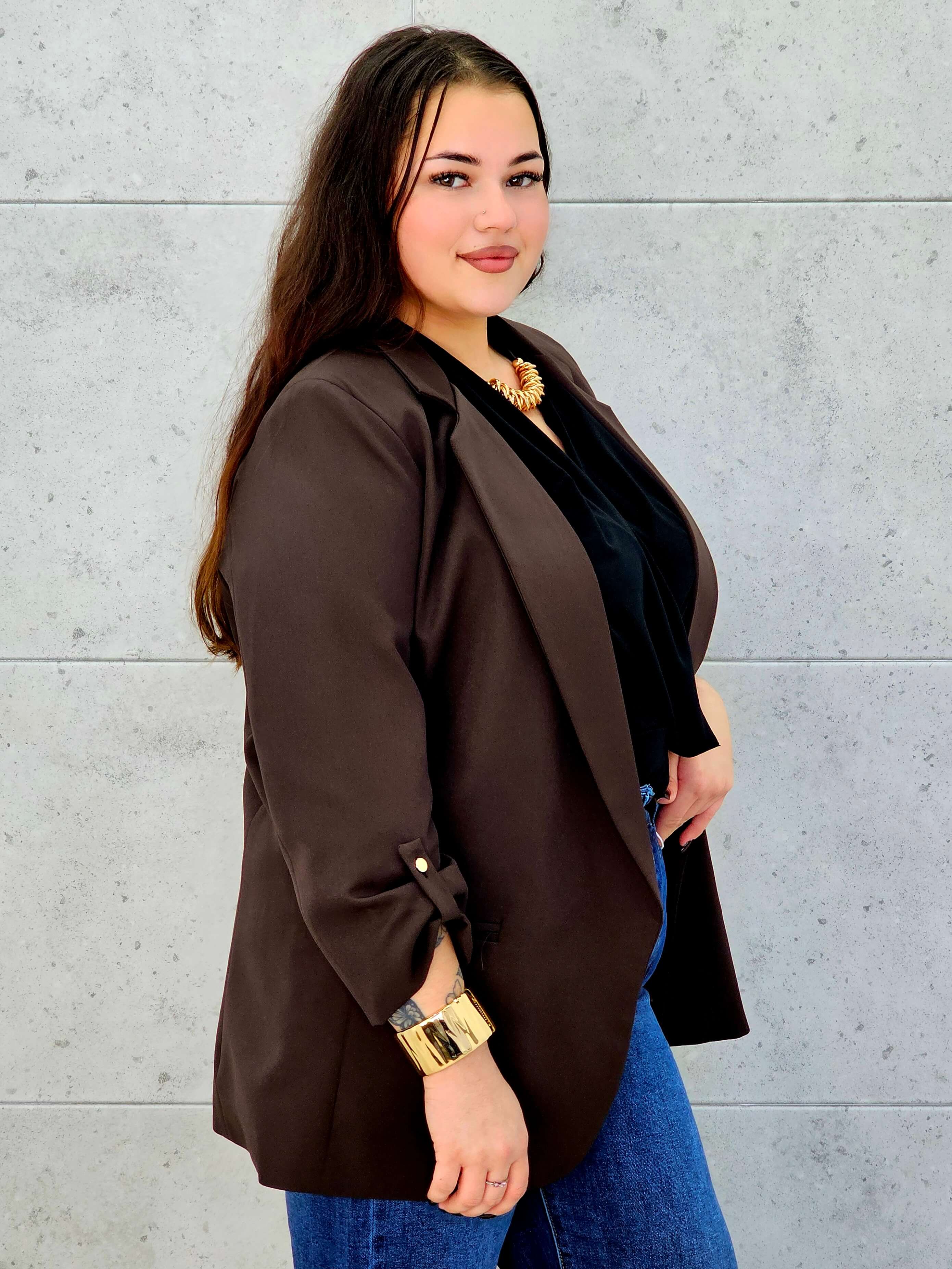 Marynarka plus size z podwijanym rękawem – klasyka w nowoczesnym wydaniu
