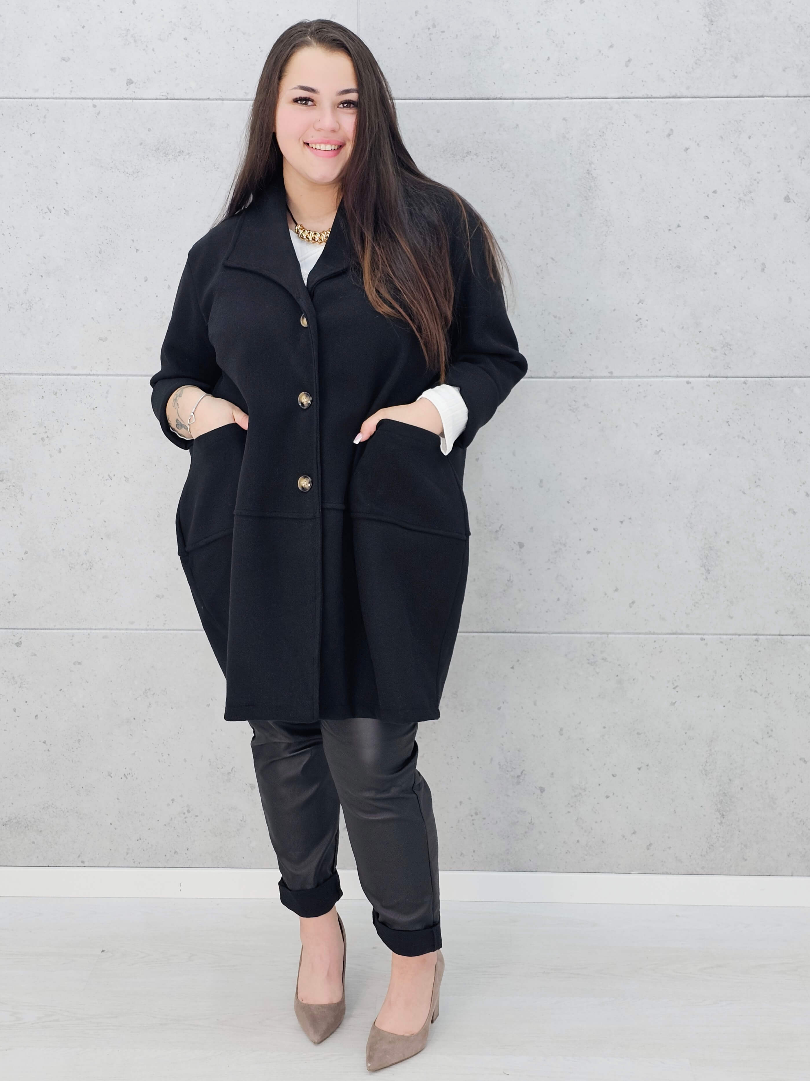 Płaszcz oversize z dużymi kieszeniami