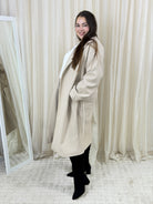 Płaszcz plus size o luksusowym kroju oversize z elegancką broszką i paskiem