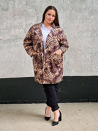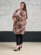 Szukasz okrycia, które doda charakteru każdej stylizacji? Ten płaszcz w modny, zwierzęcy print to strzał w dziesiątkę! 🖤 Idealny na chłodniejsze dni – nie tylko grzeje, ale także przyciąga spojrzenia. Klasyczny krój z kołnierzem i zapięciem na guziki sprawia, że płaszcz jest niezwykle wygodny, a jednocześnie bardzo kobiecy.