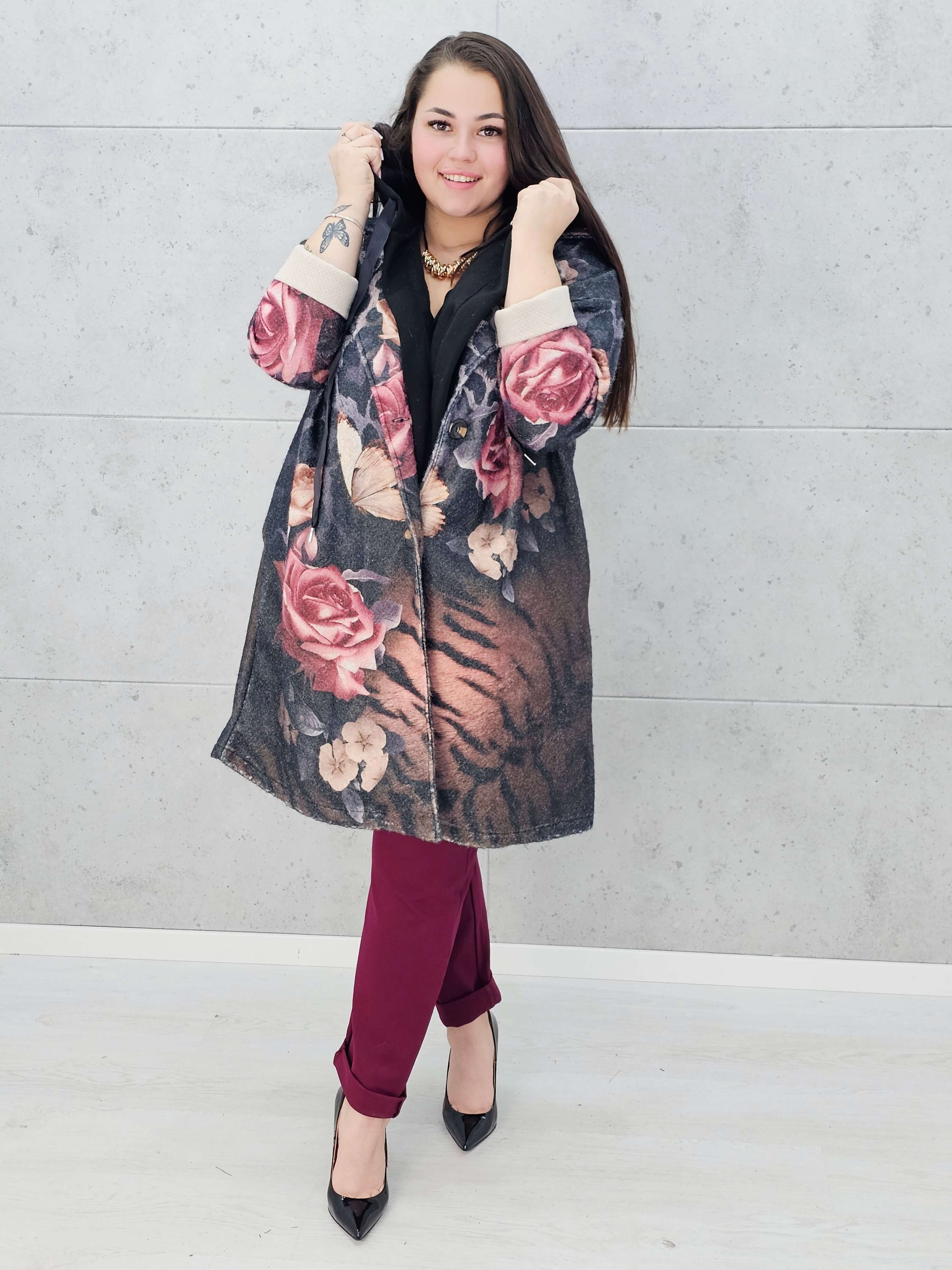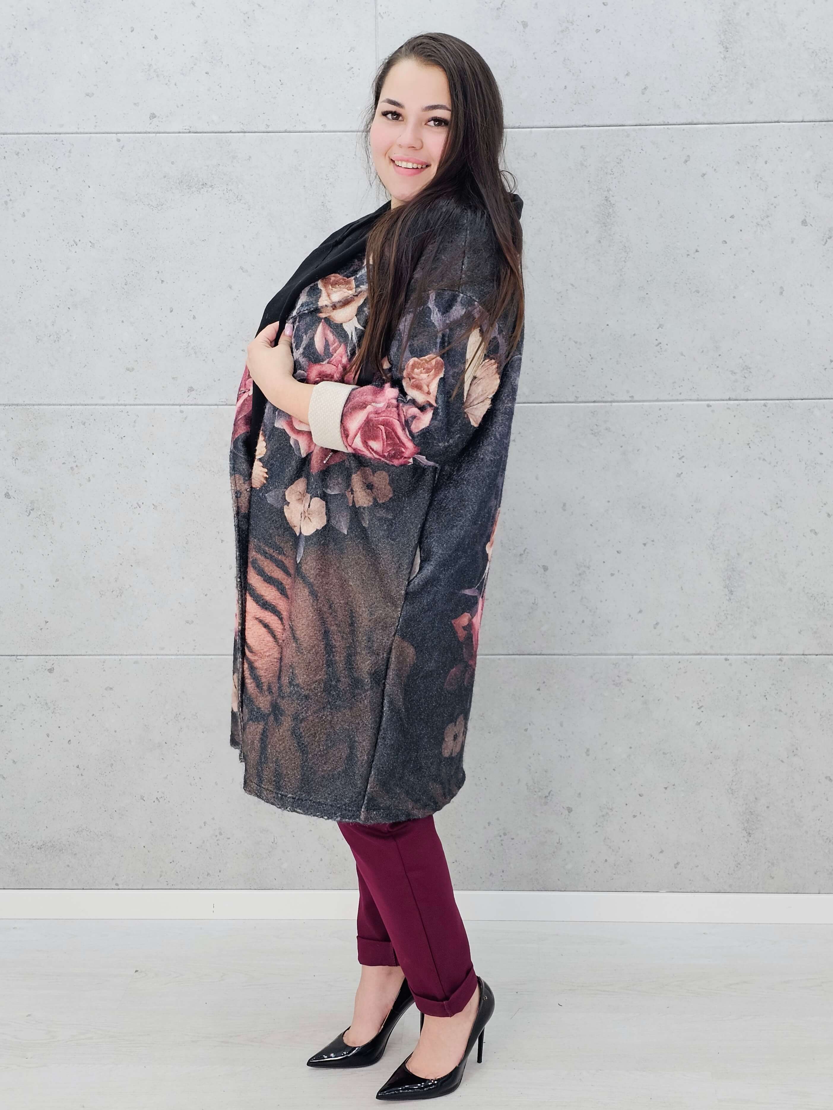 Ten płaszcz to prawdziwa perełka dla kobiet, które cenią sobie styl i wygodę Połączenie eleganckiego, kwiatowego printu z miękkim, otulającym materiałem sprawia, że każda stylizacja nabiera wyjątkowego charakteru.