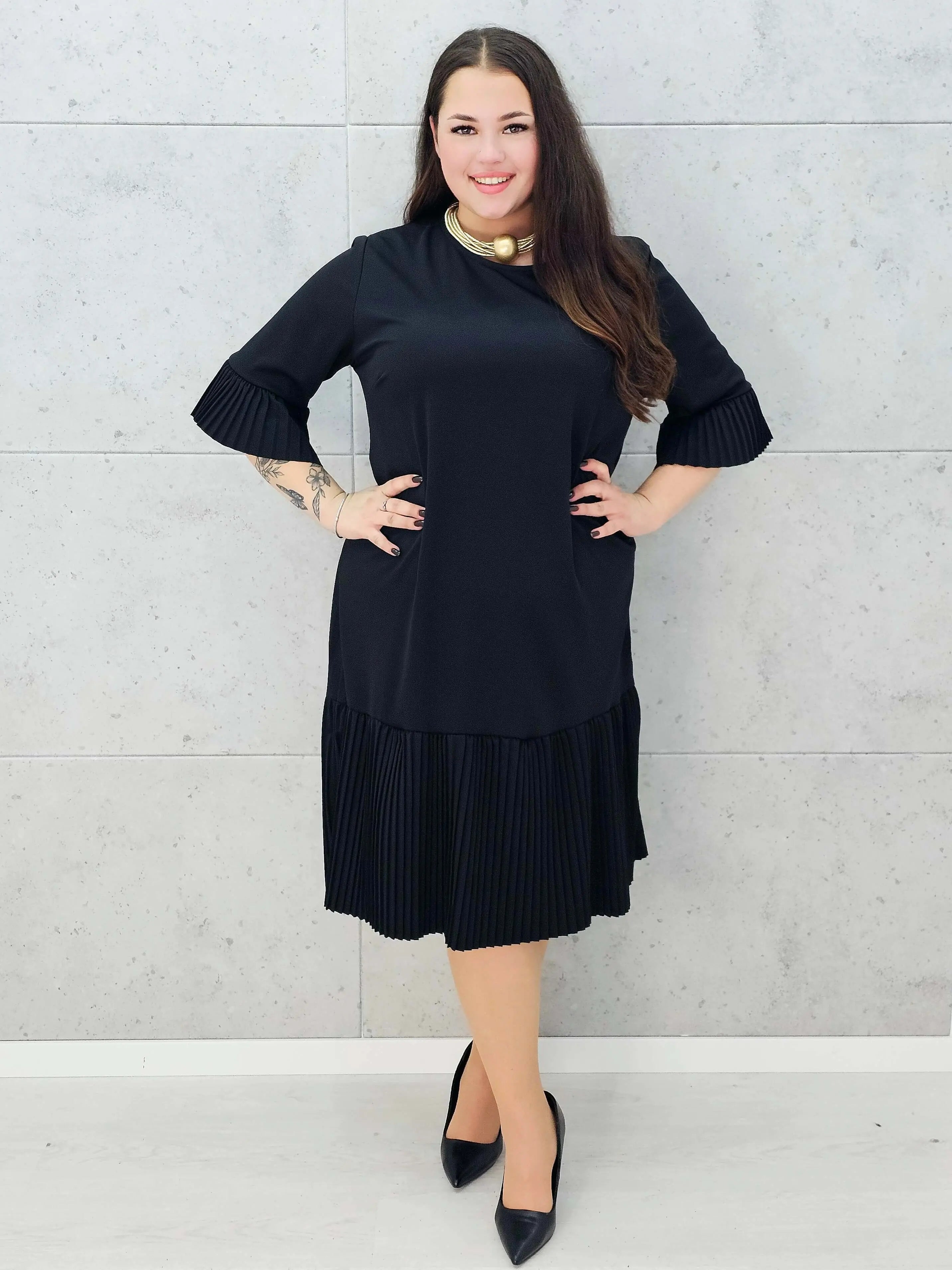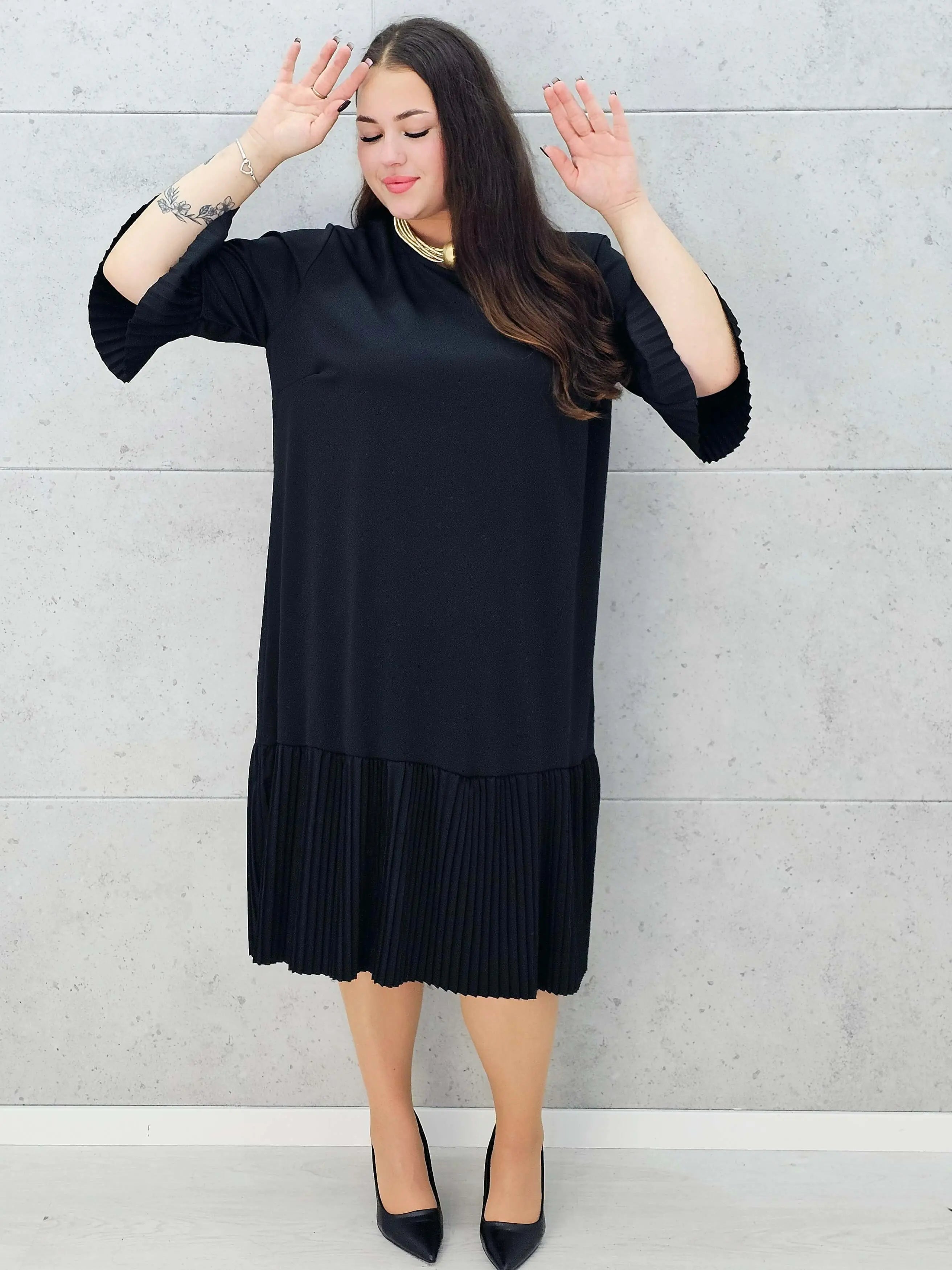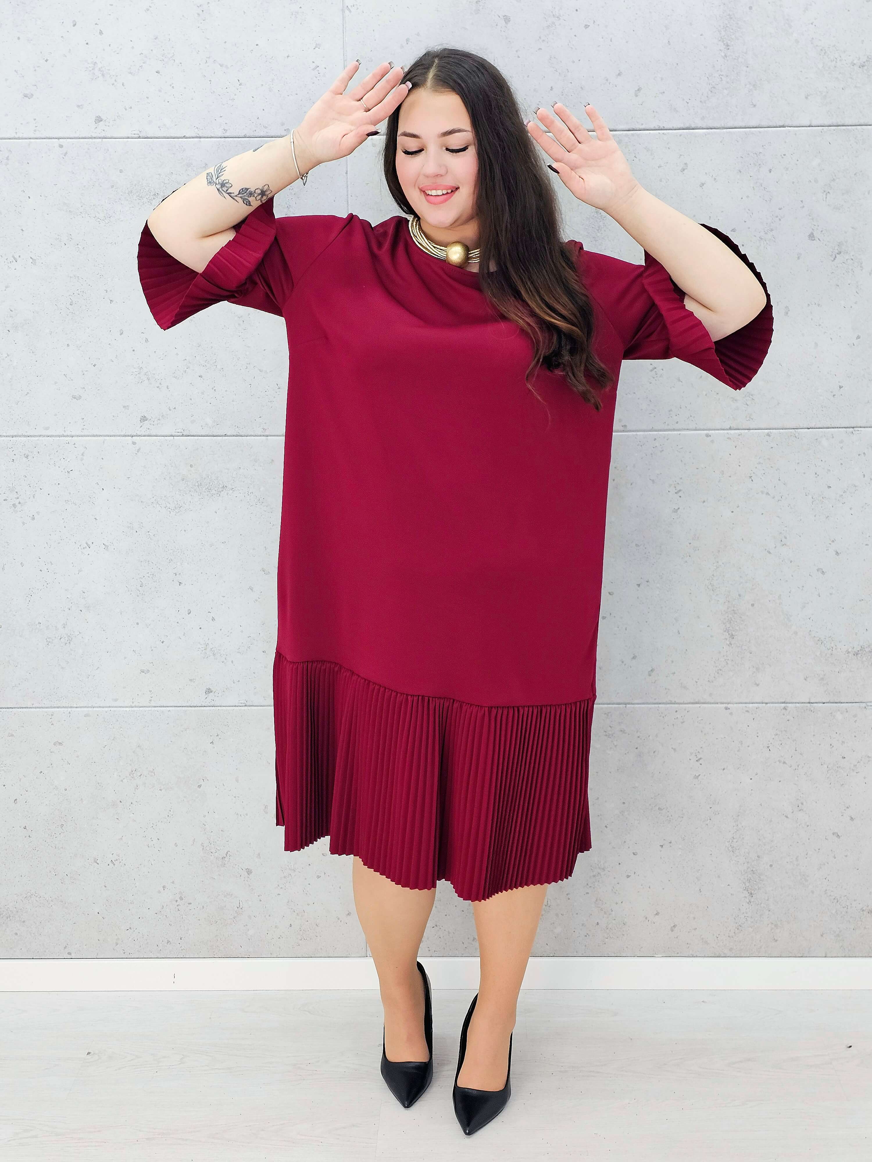 Nasza plisowana sukienka plus size to model, który doskonale podkreśla kobiecość, jednocześnie zapewniając pełen komfort noszenia.