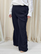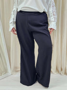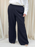 Spodnie plus size o klasycznym kroju z szeroką nogawką to idealna propozycja dla kobiet ceniących elegancję, wygodę i ponadczasowy styl. Model został zaprojektowany tak, aby pięknie układać się na sylwetce XXL, wysmuklać nogi i podkreślać atuty figury, bez uczucia ucisku.