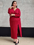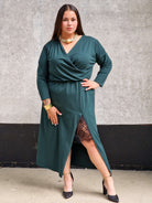 Sukienka kopertowa maxi z koronkową wstawką