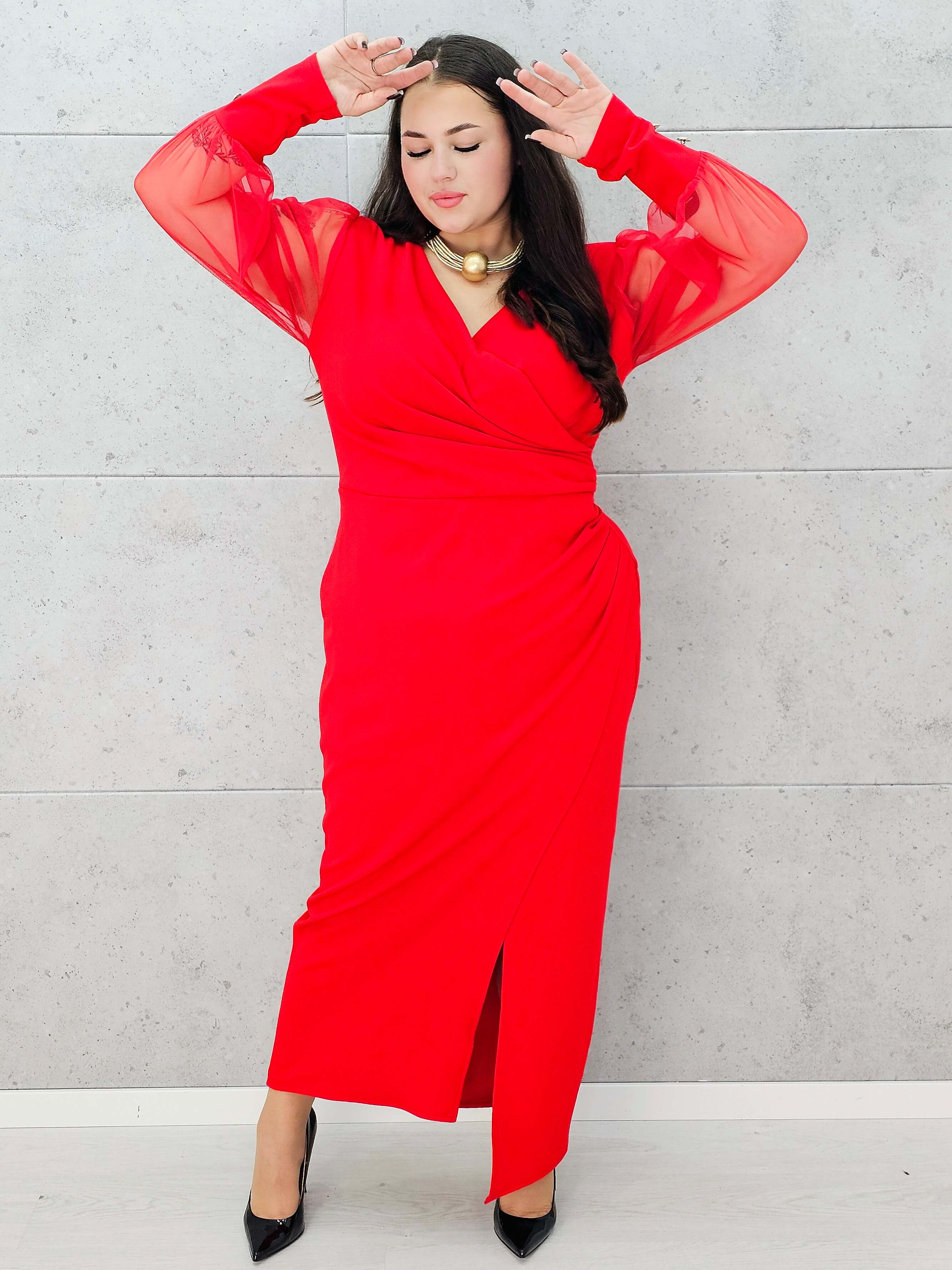 Zjawiskowa, pełna klasy i kobiecości – tak prezentuje się nasza sukienka maxi plus size z tiulowymi rękawami