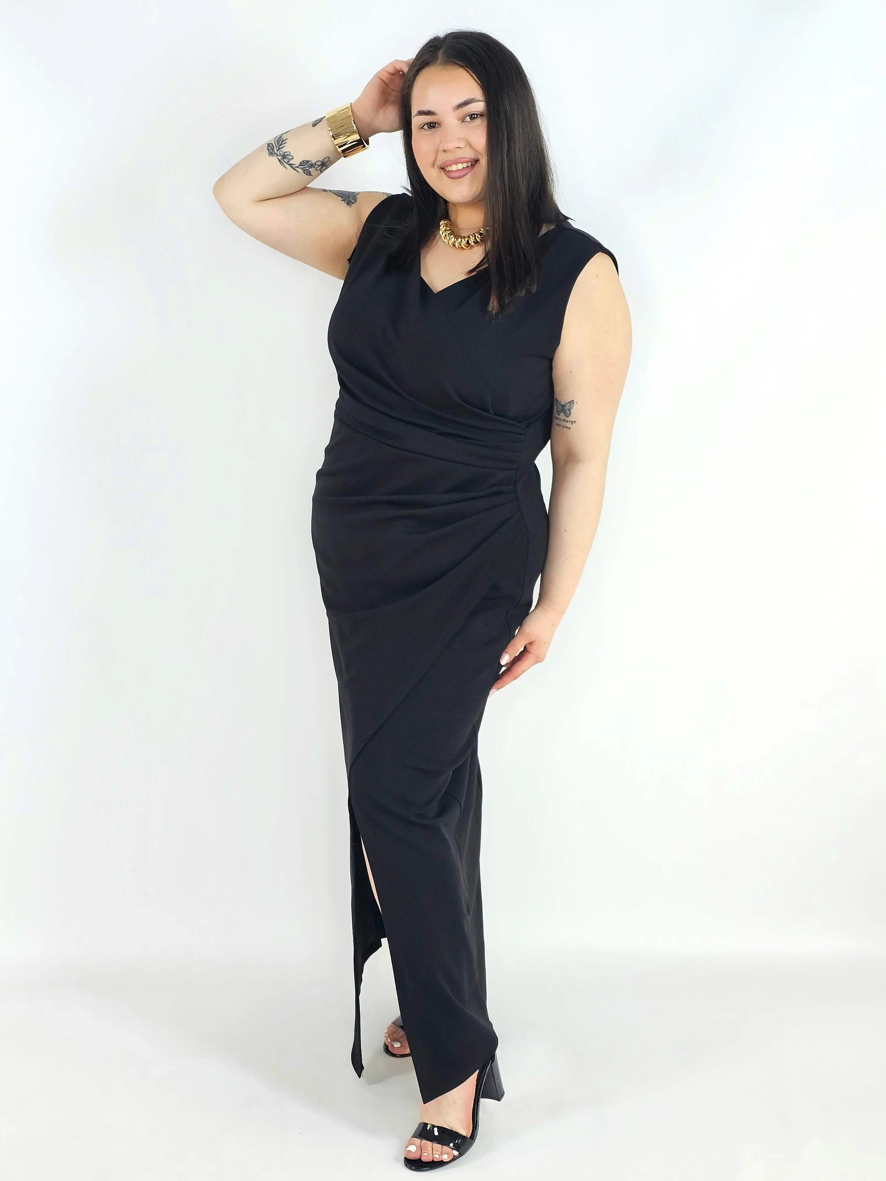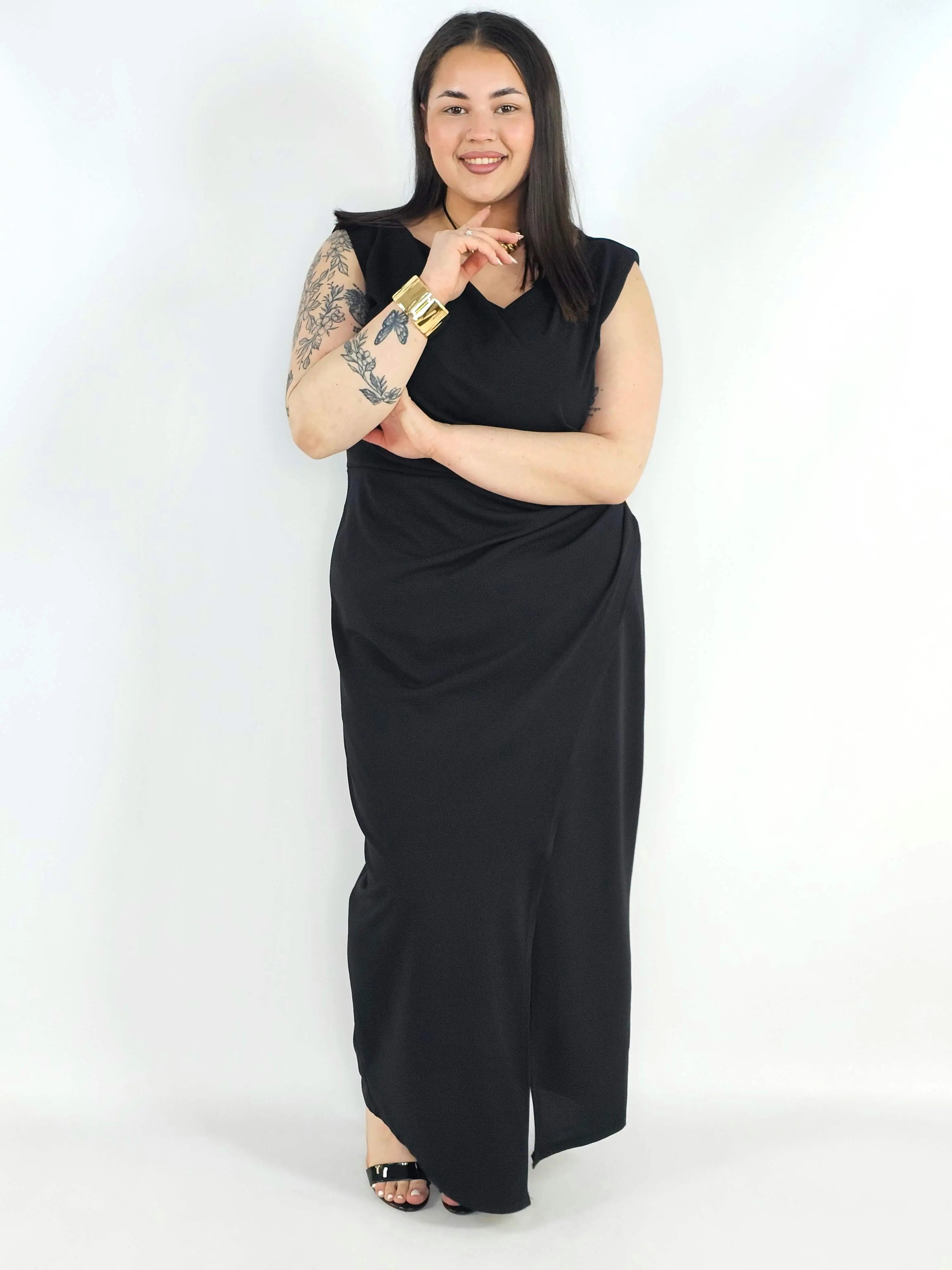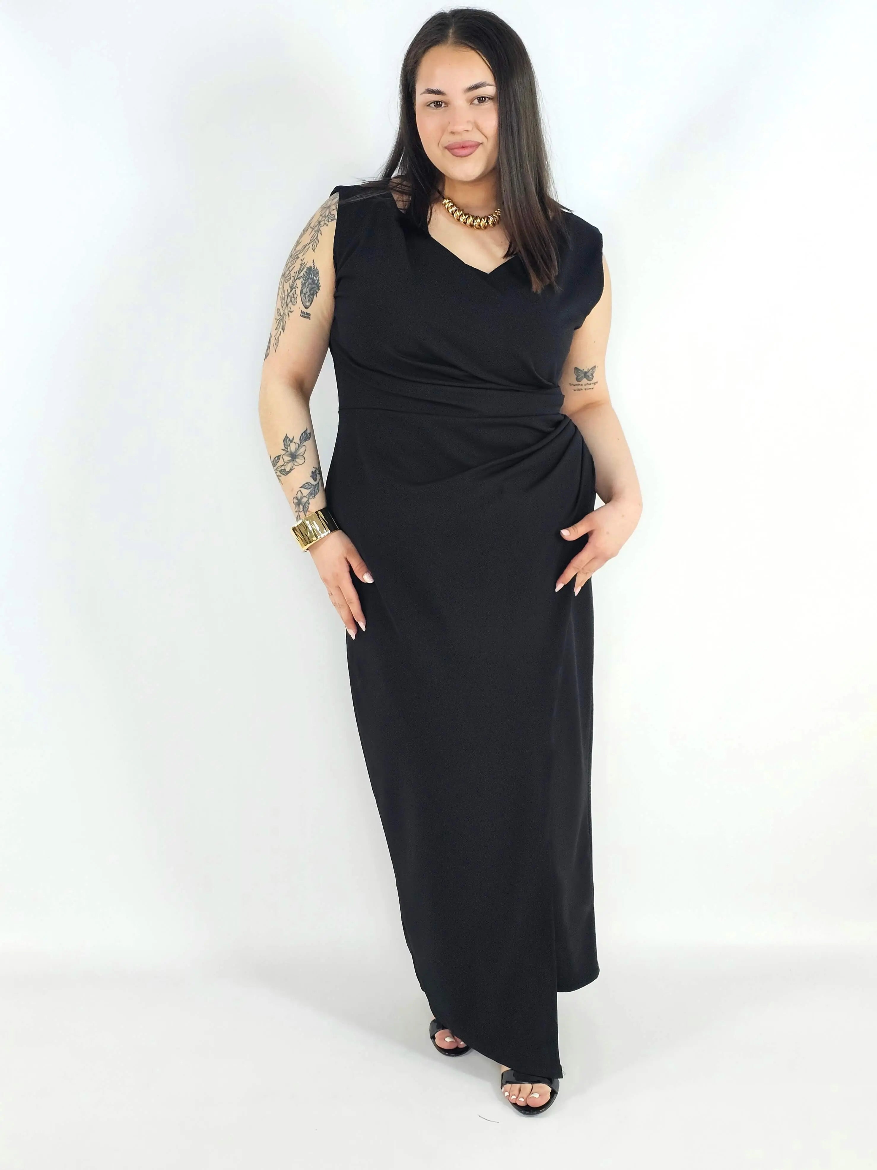 Sukienka plus size wieczorowa z kopertowym dekoltem i drapowaniem – stylowa sukienka XXL