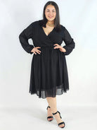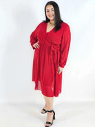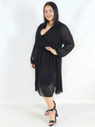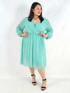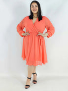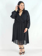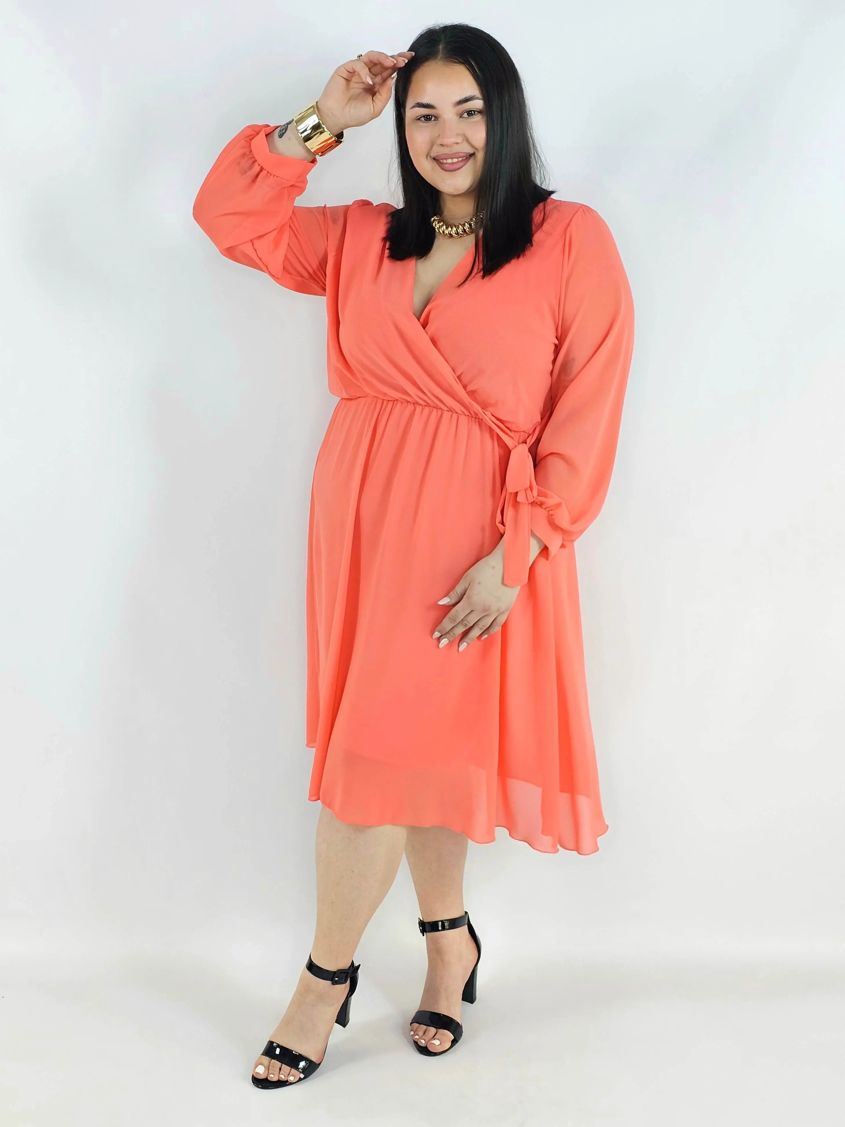 Sukienka plus size z regulacją w talii – kobieca sukienka XXL z długim rękawem