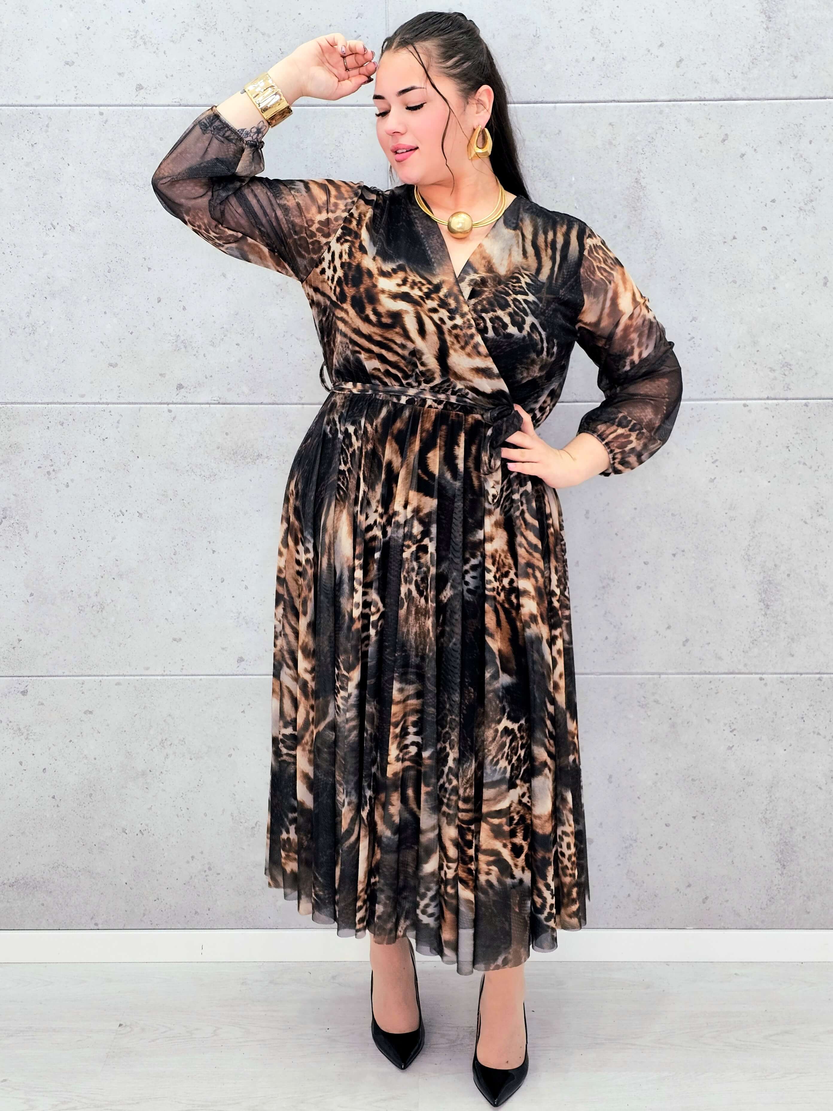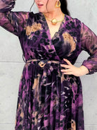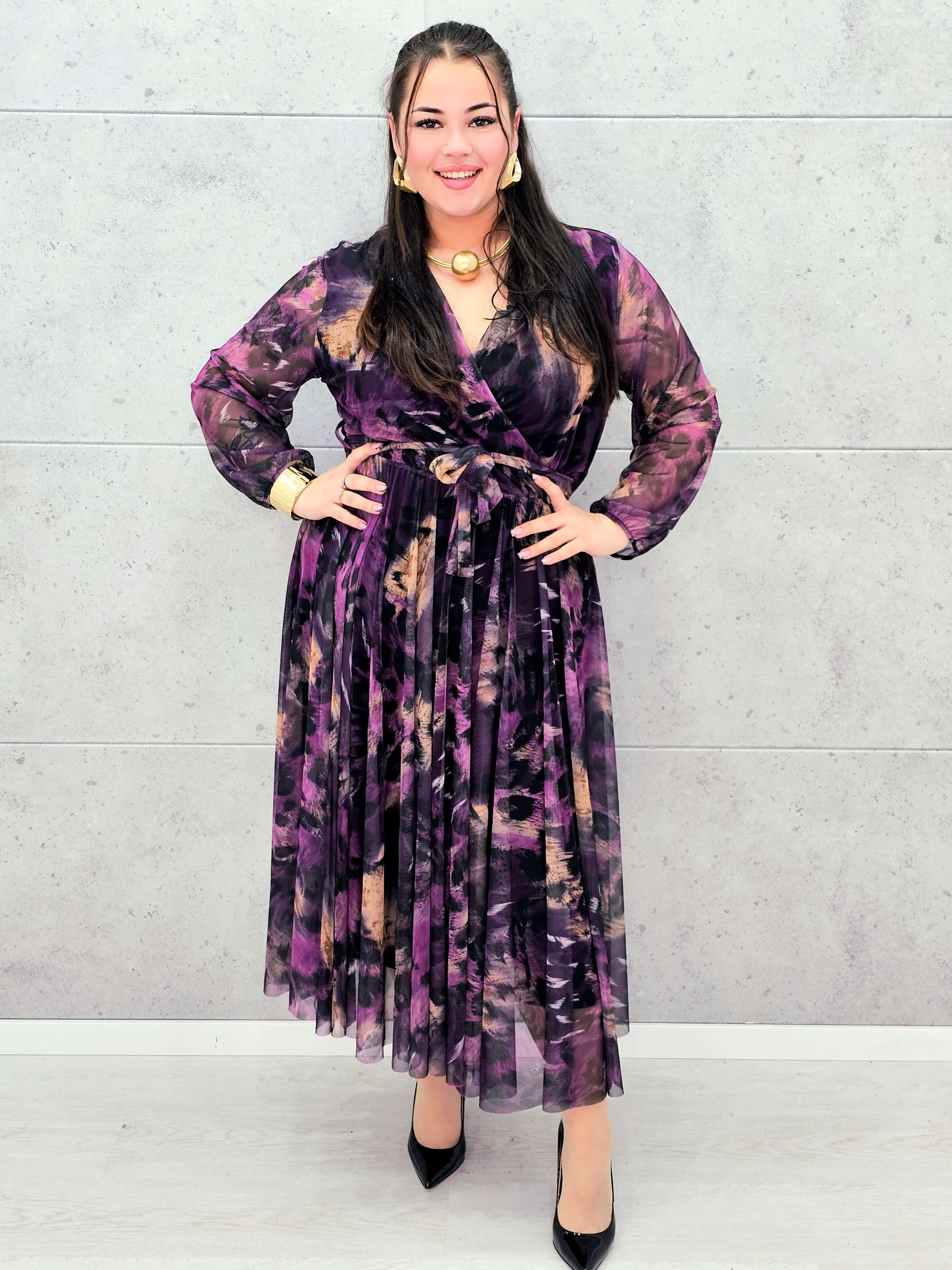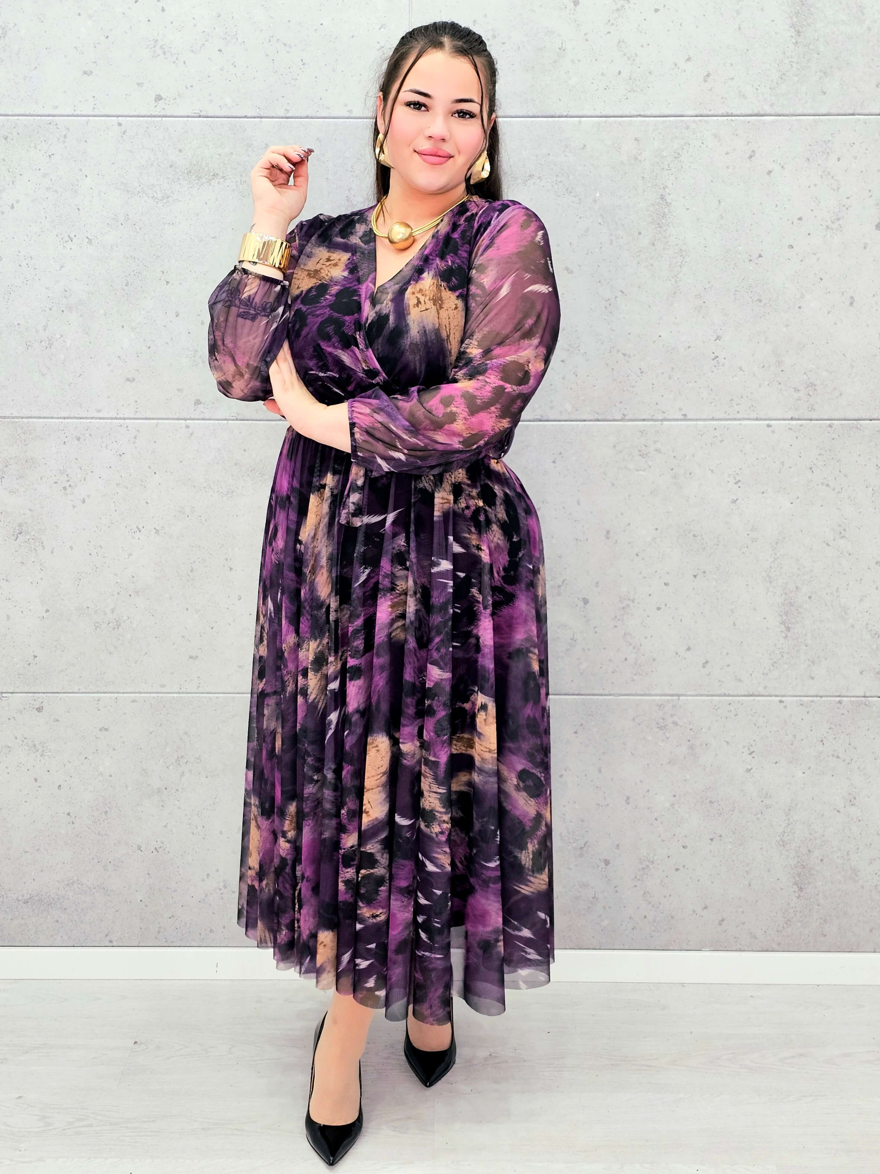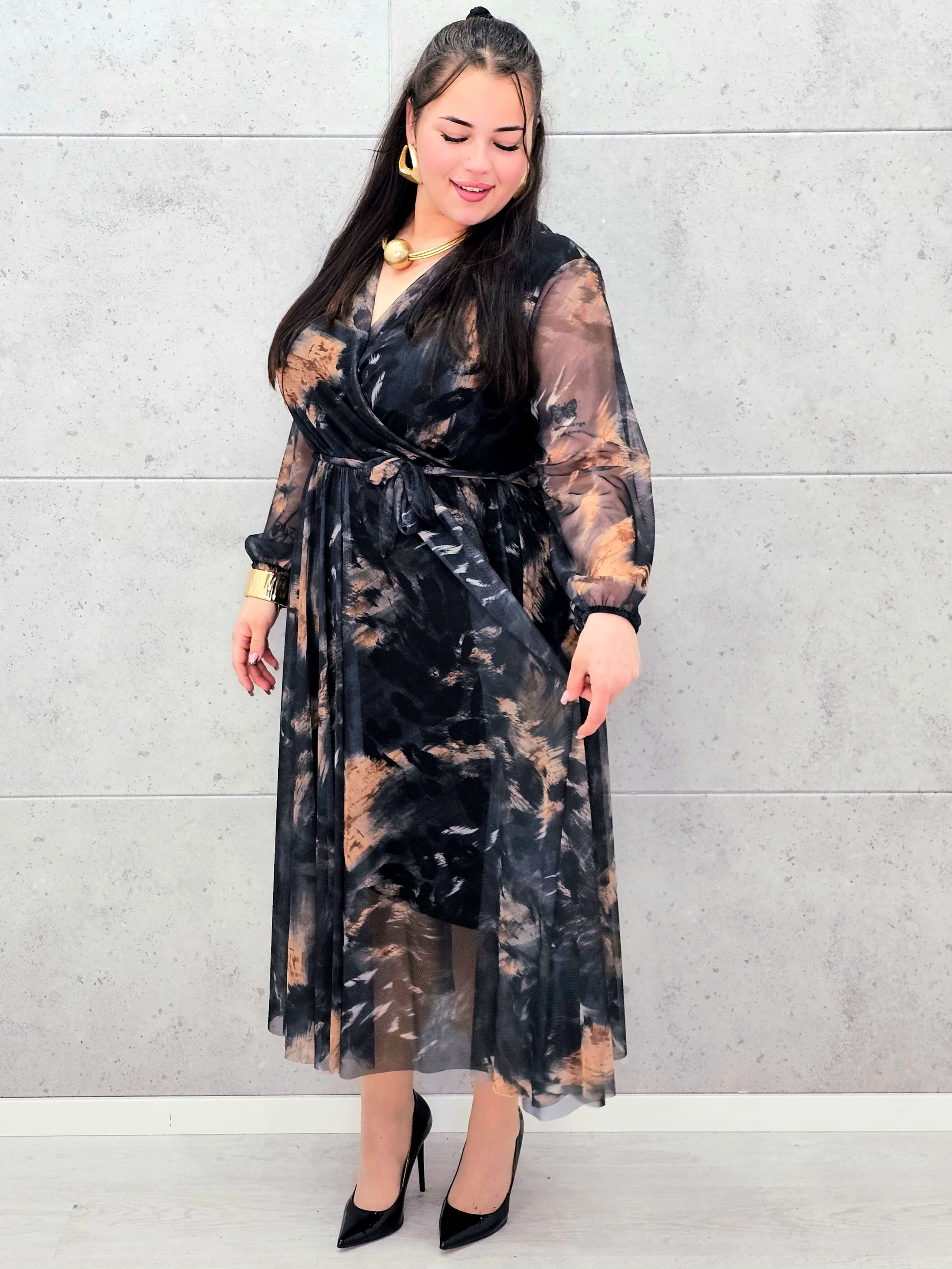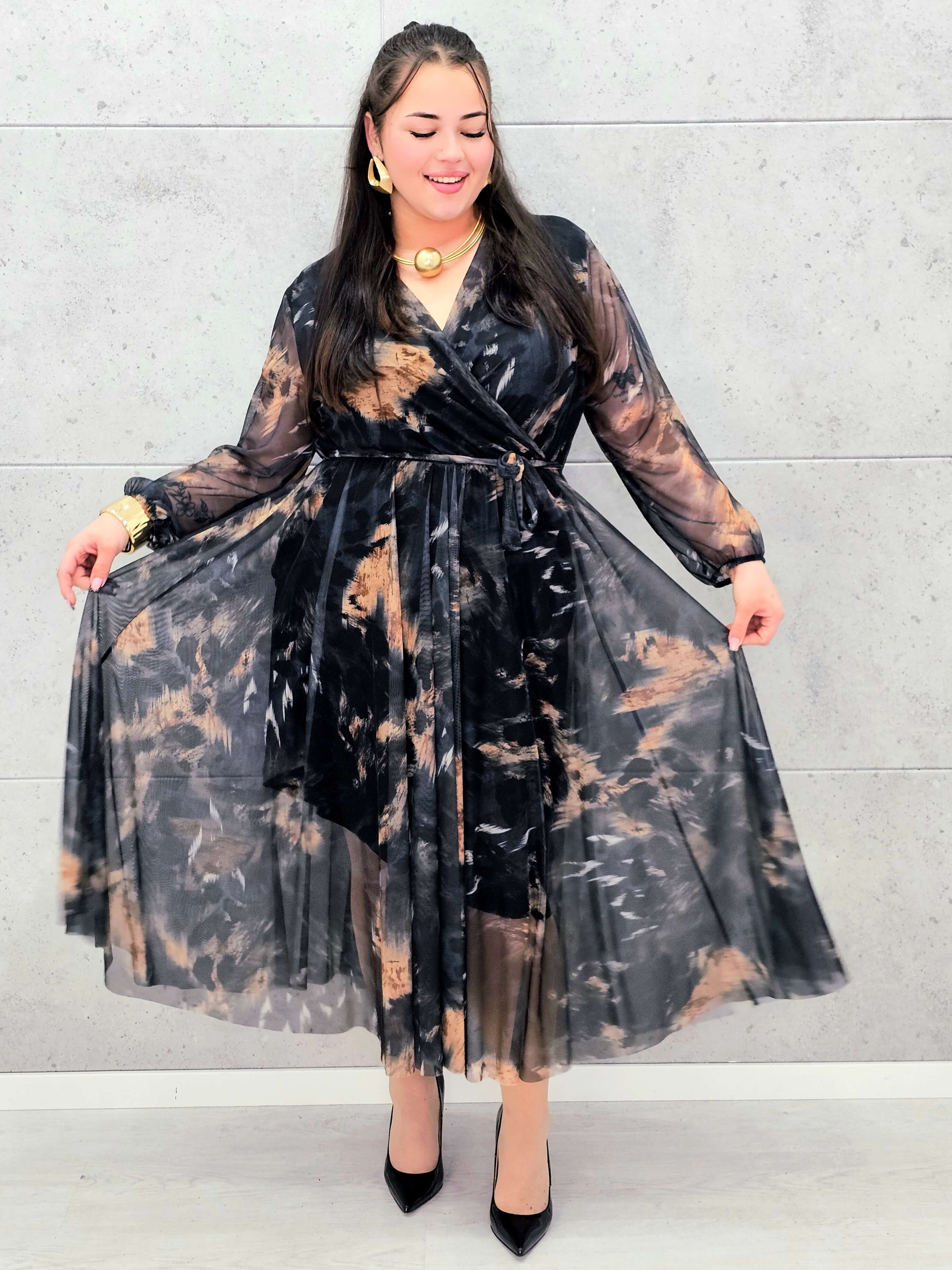 Sukienka plus size XXL z efektem artistic print i kopertowym dekoltem — elegancja dla kobiet kochających modę plus size