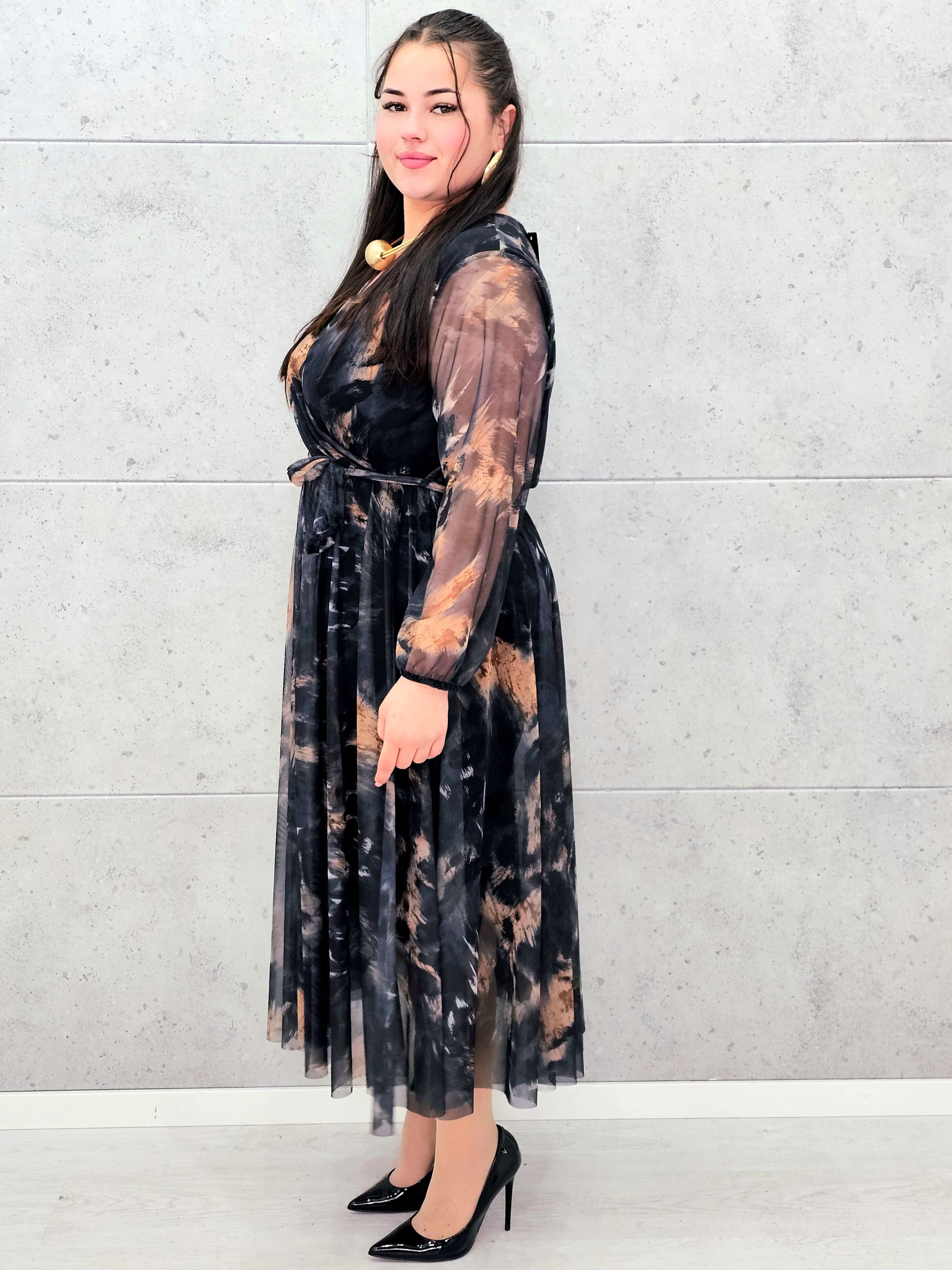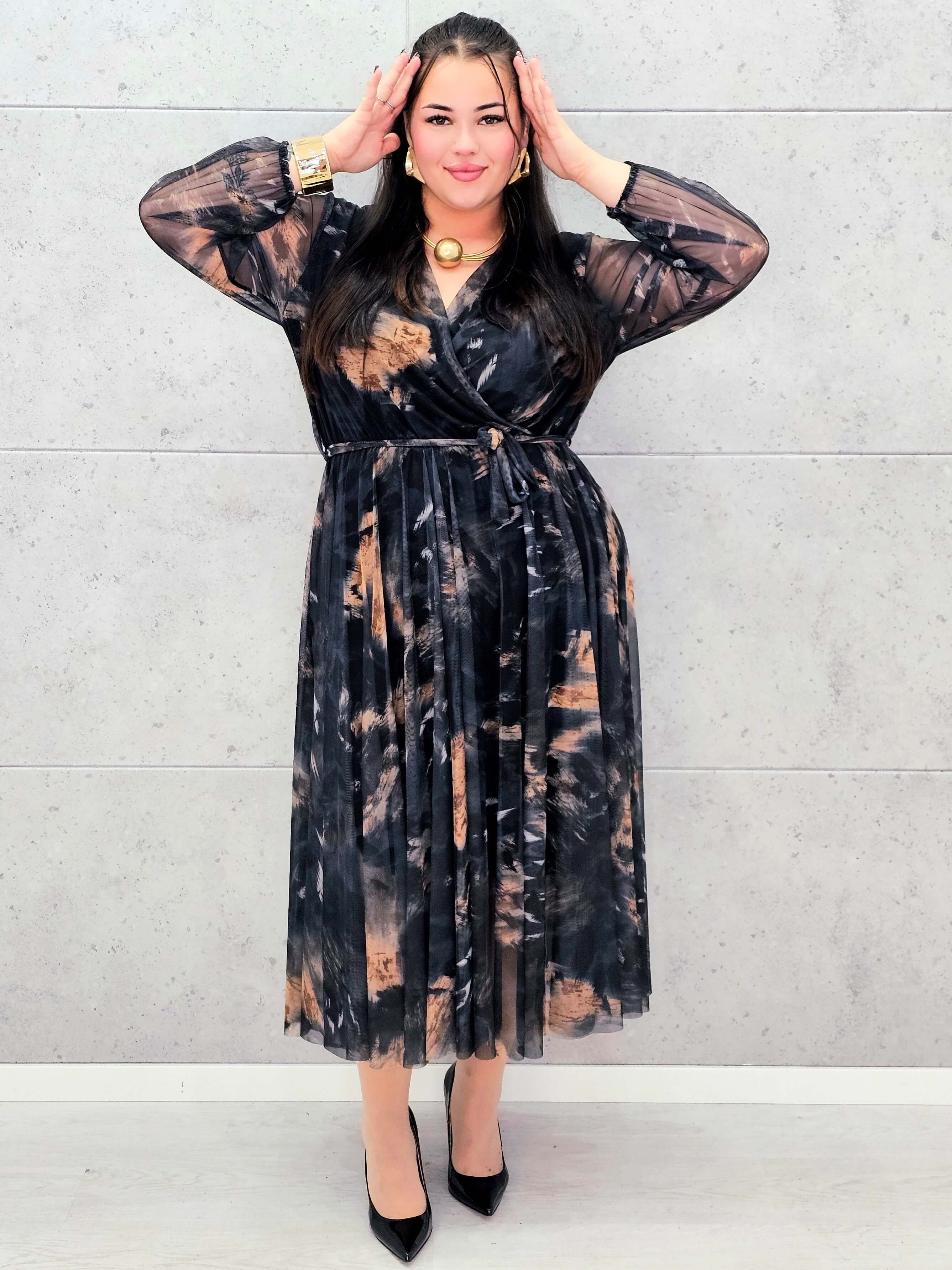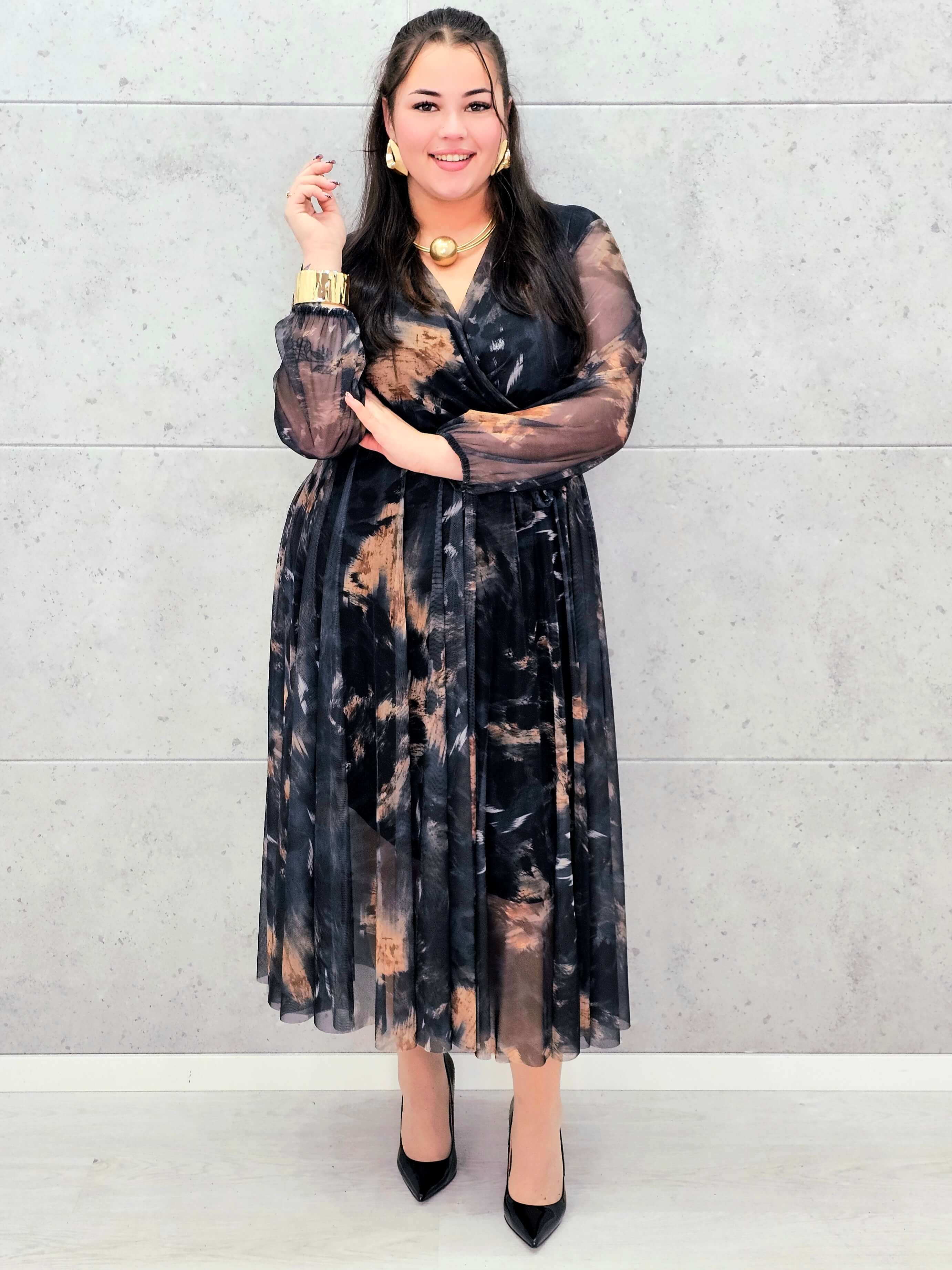Sukienka plus size XXL z artistic print — zjawiskowy model podkreślający kobiece kształty