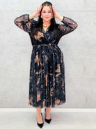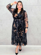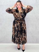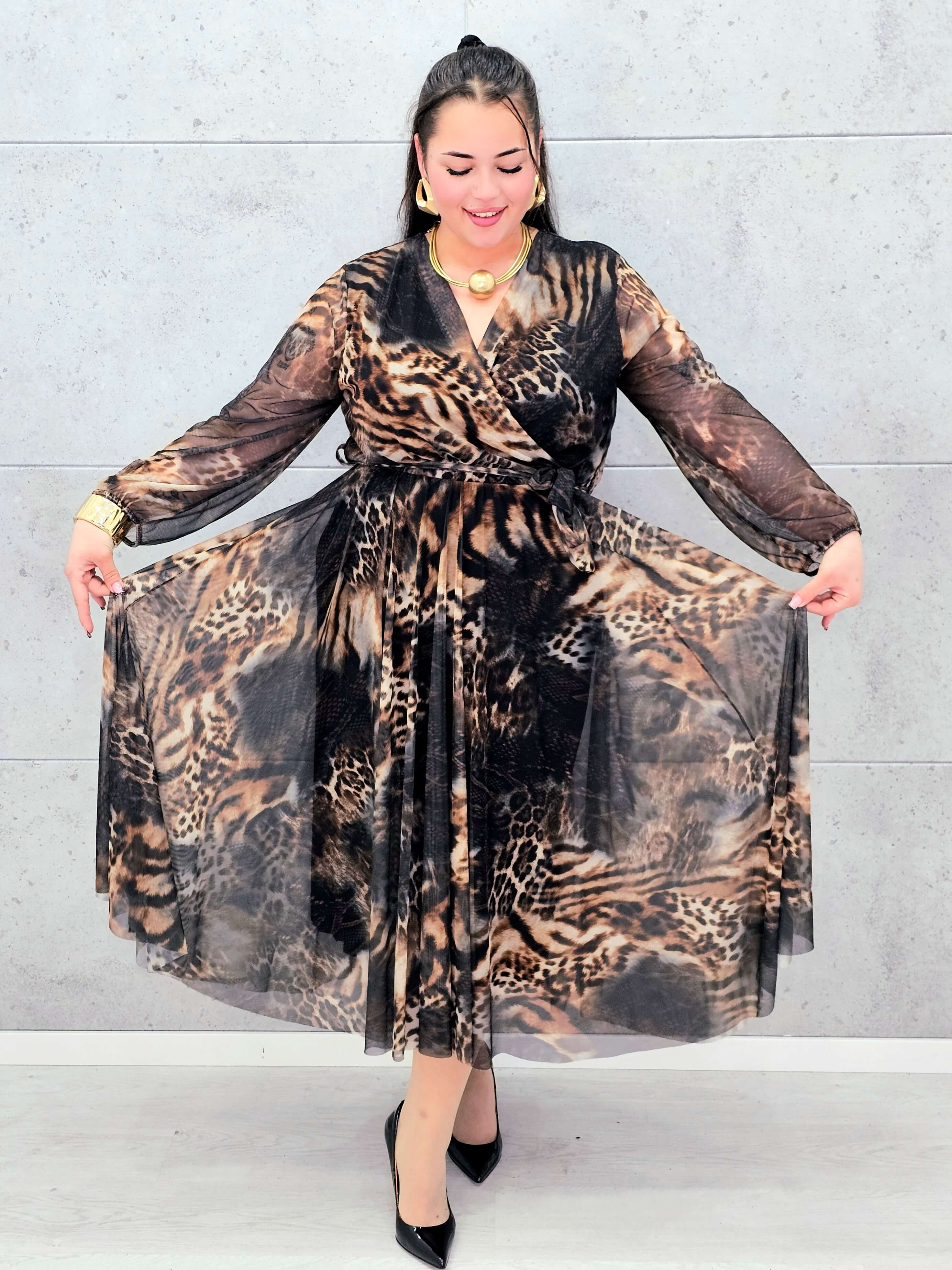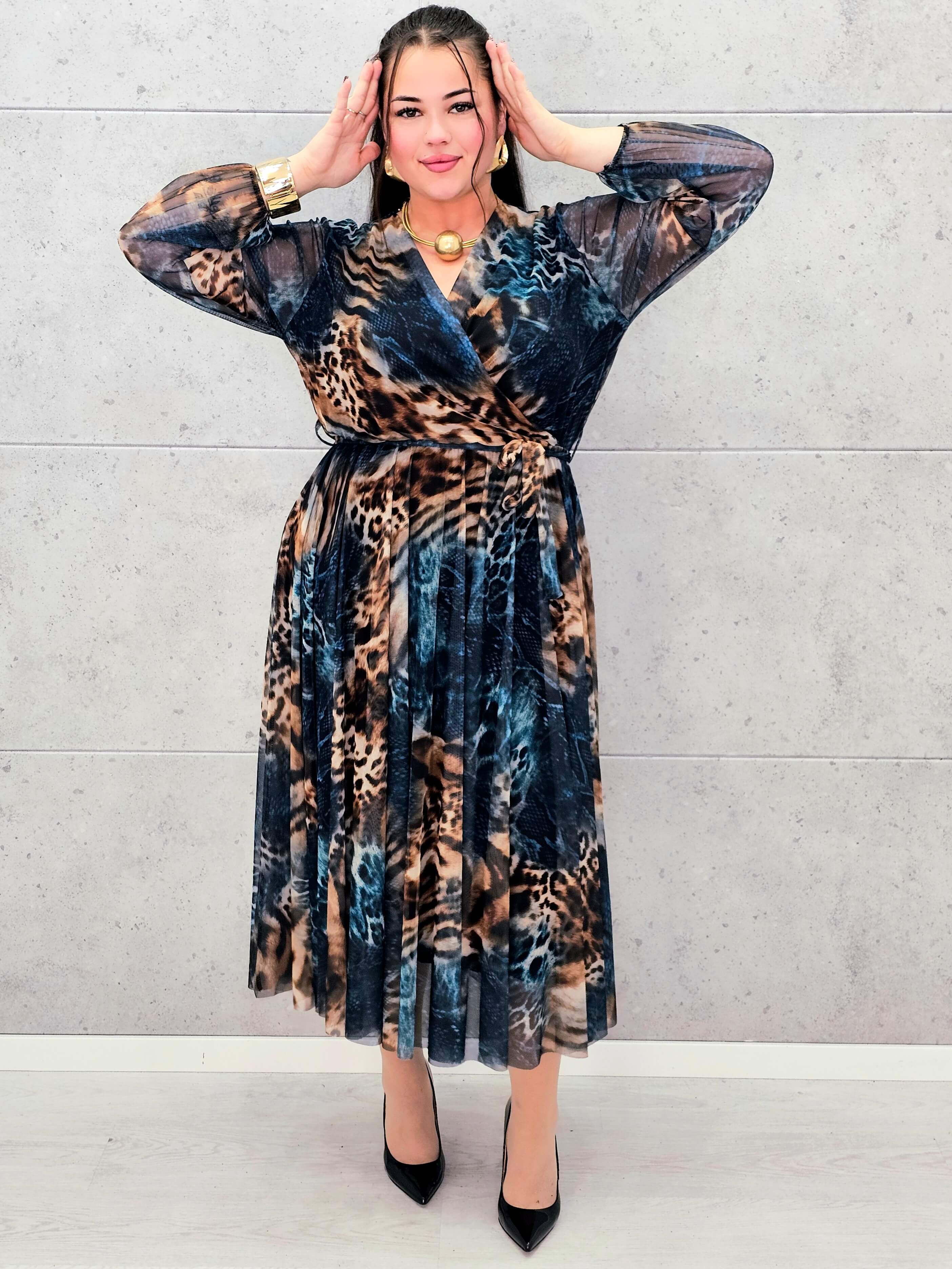 Wyróżnia ją subtelnie transparentny rękaw, lekko rozkloszowany dół oraz print, który w ruchu daje efekt luksusowej tkaniny premium. Sukienka dostępna jest w kilku zachwycających kolorach: