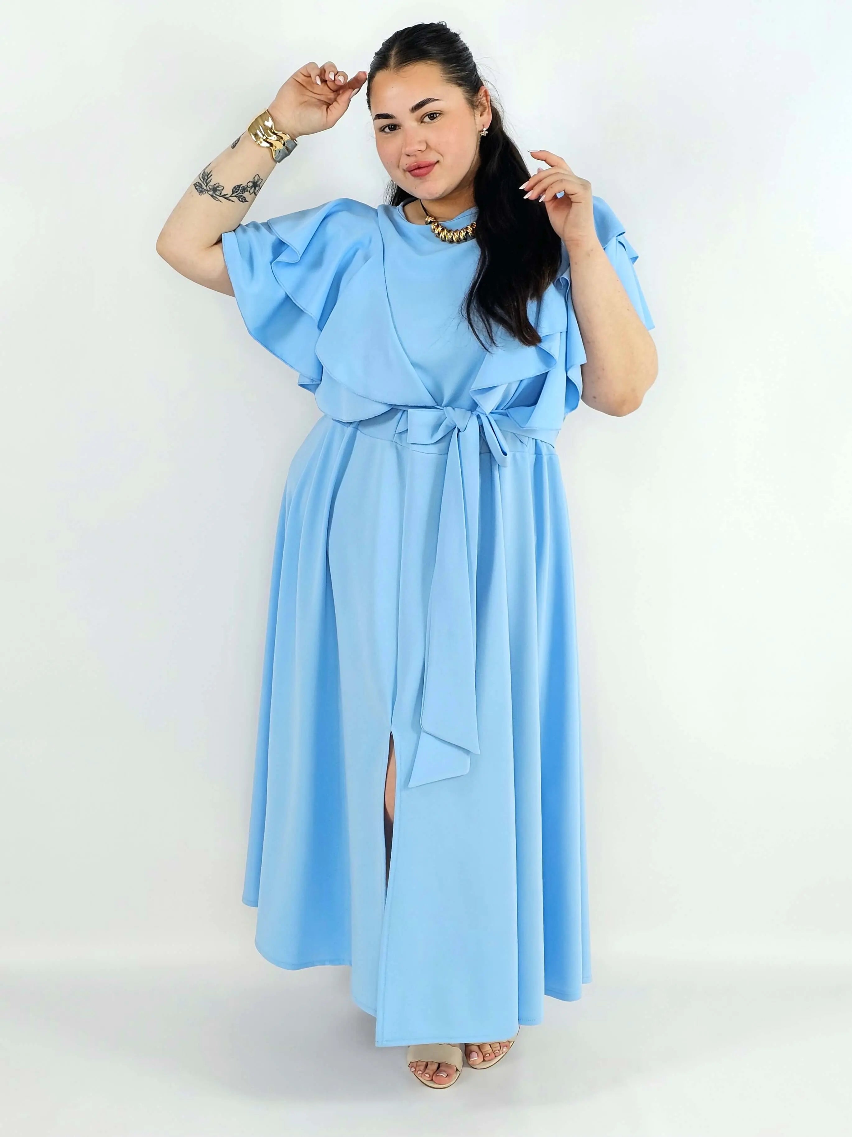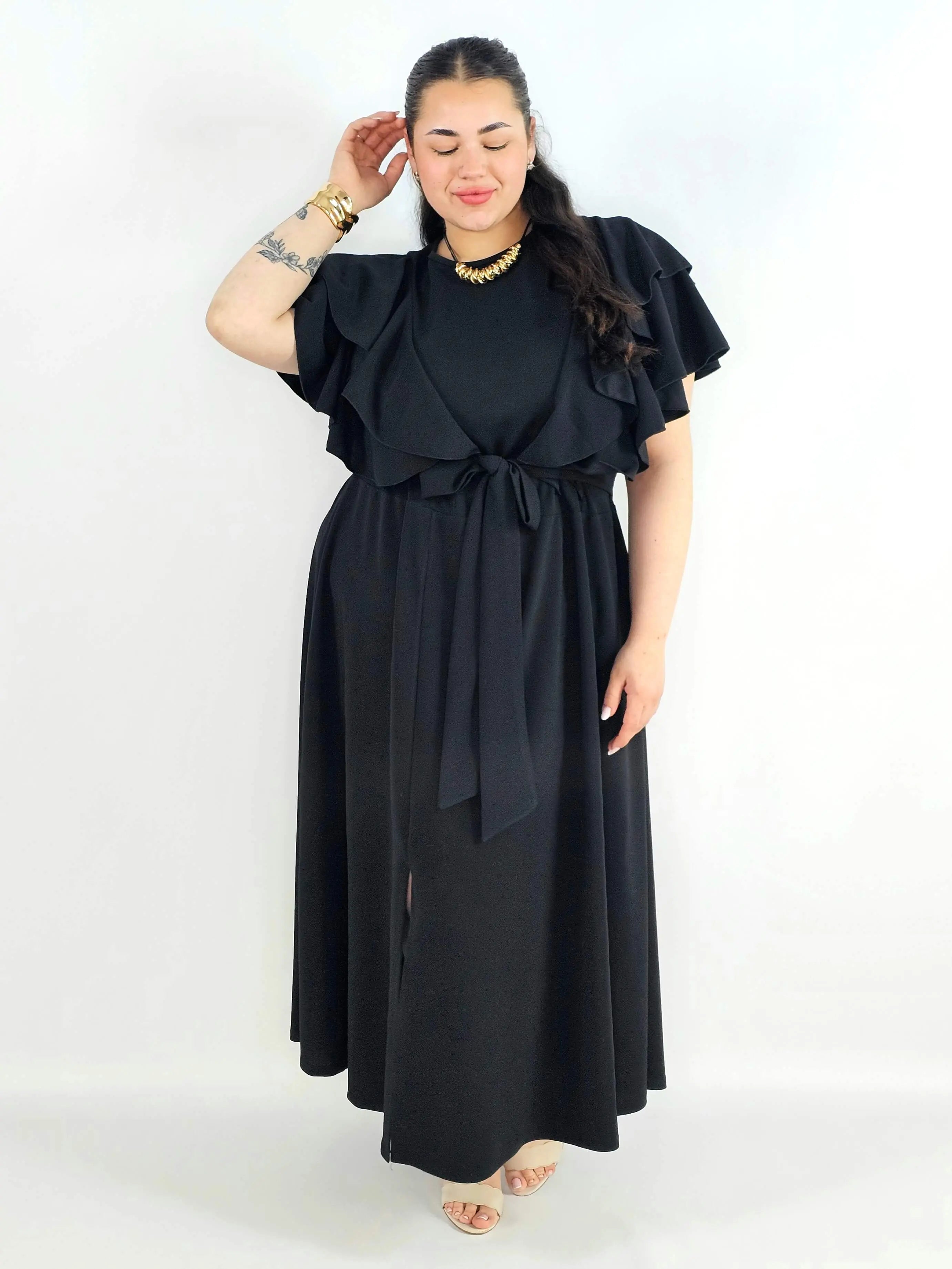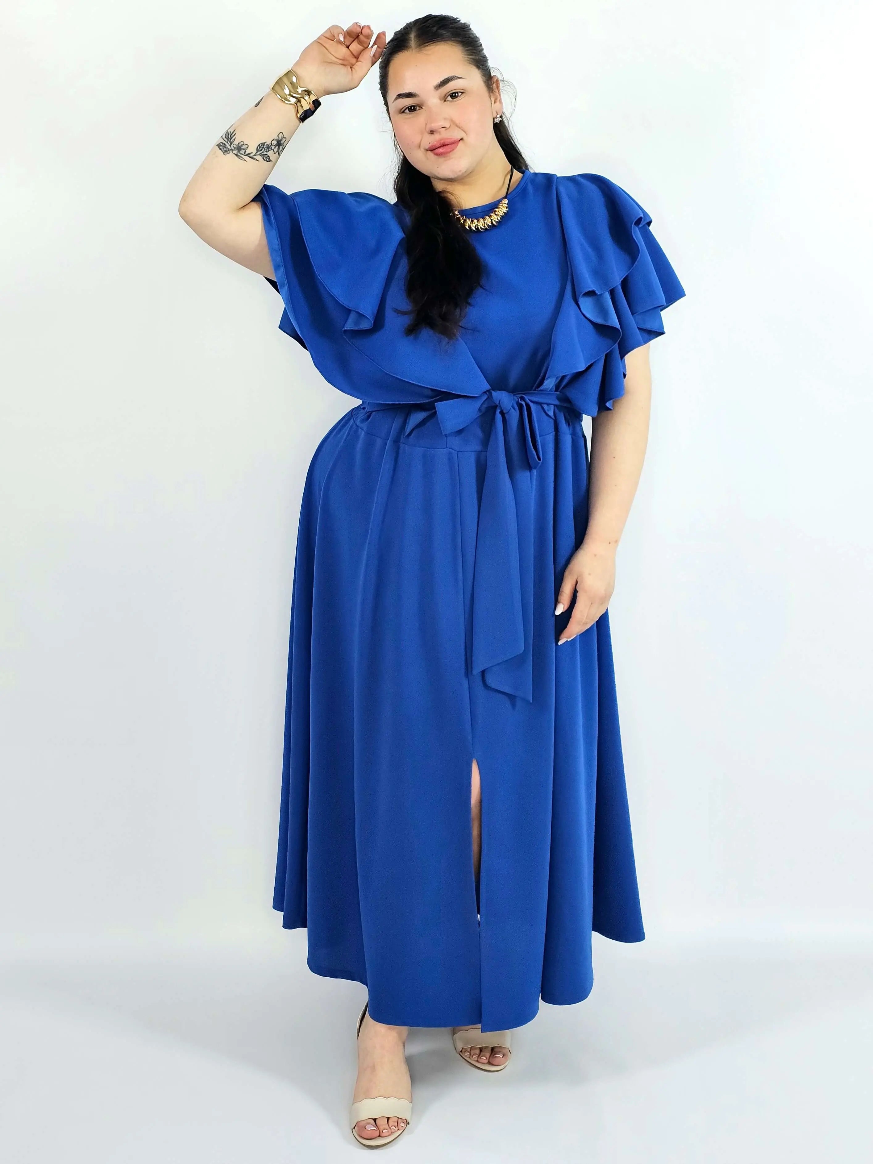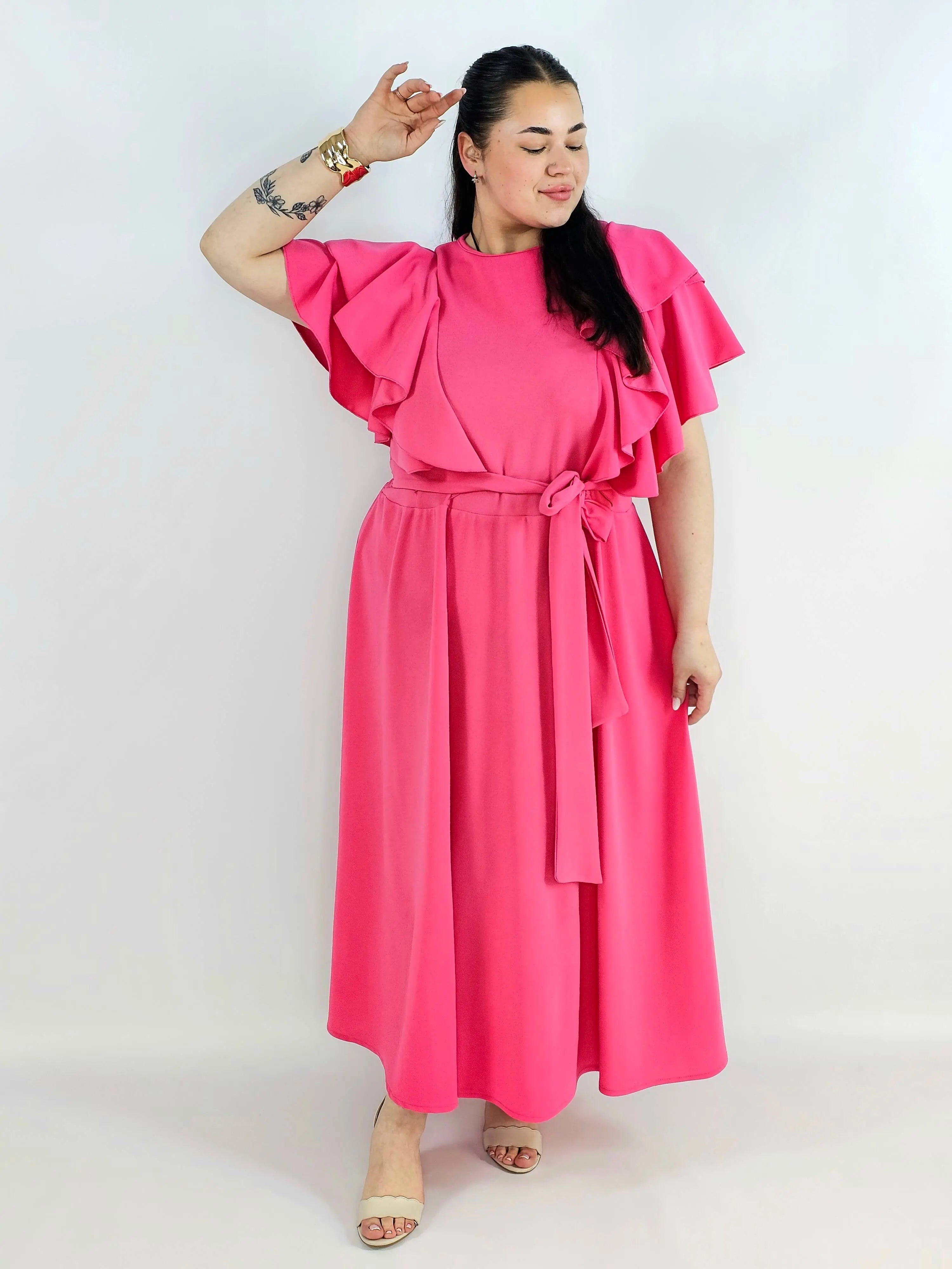 • Sukienka plus size z efektownymi falbanami przy ramionach