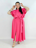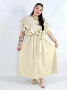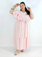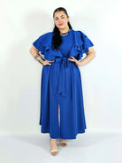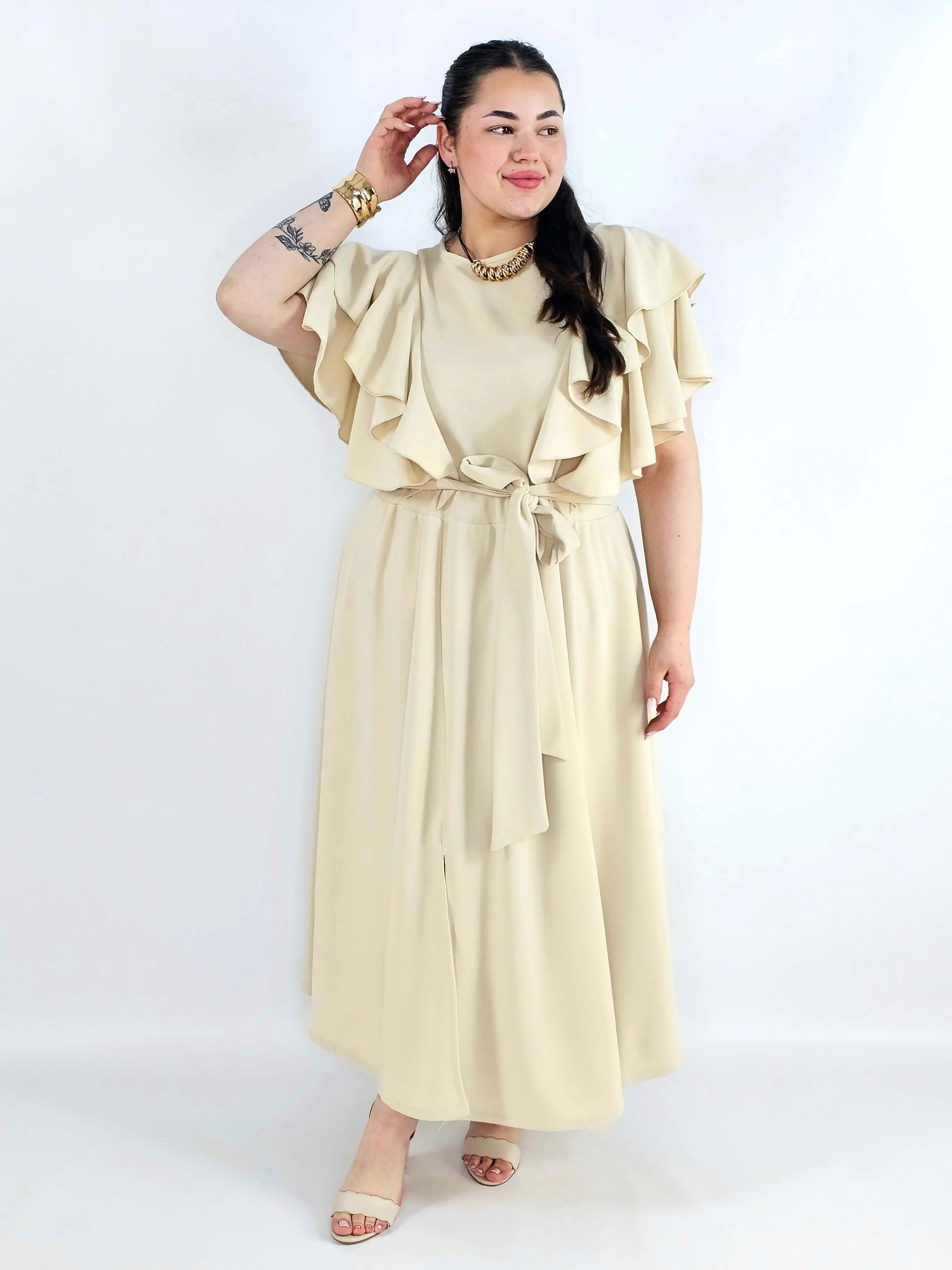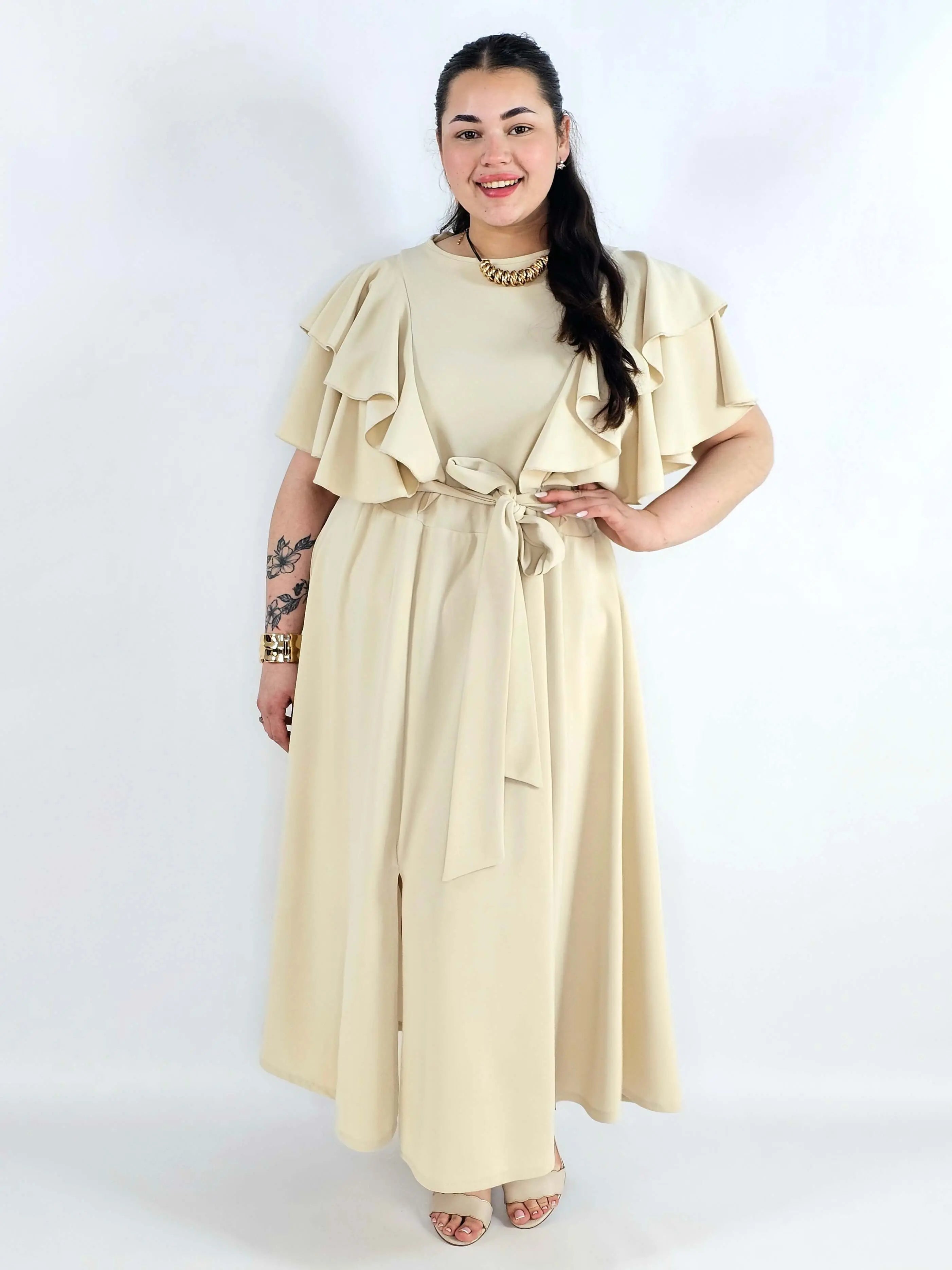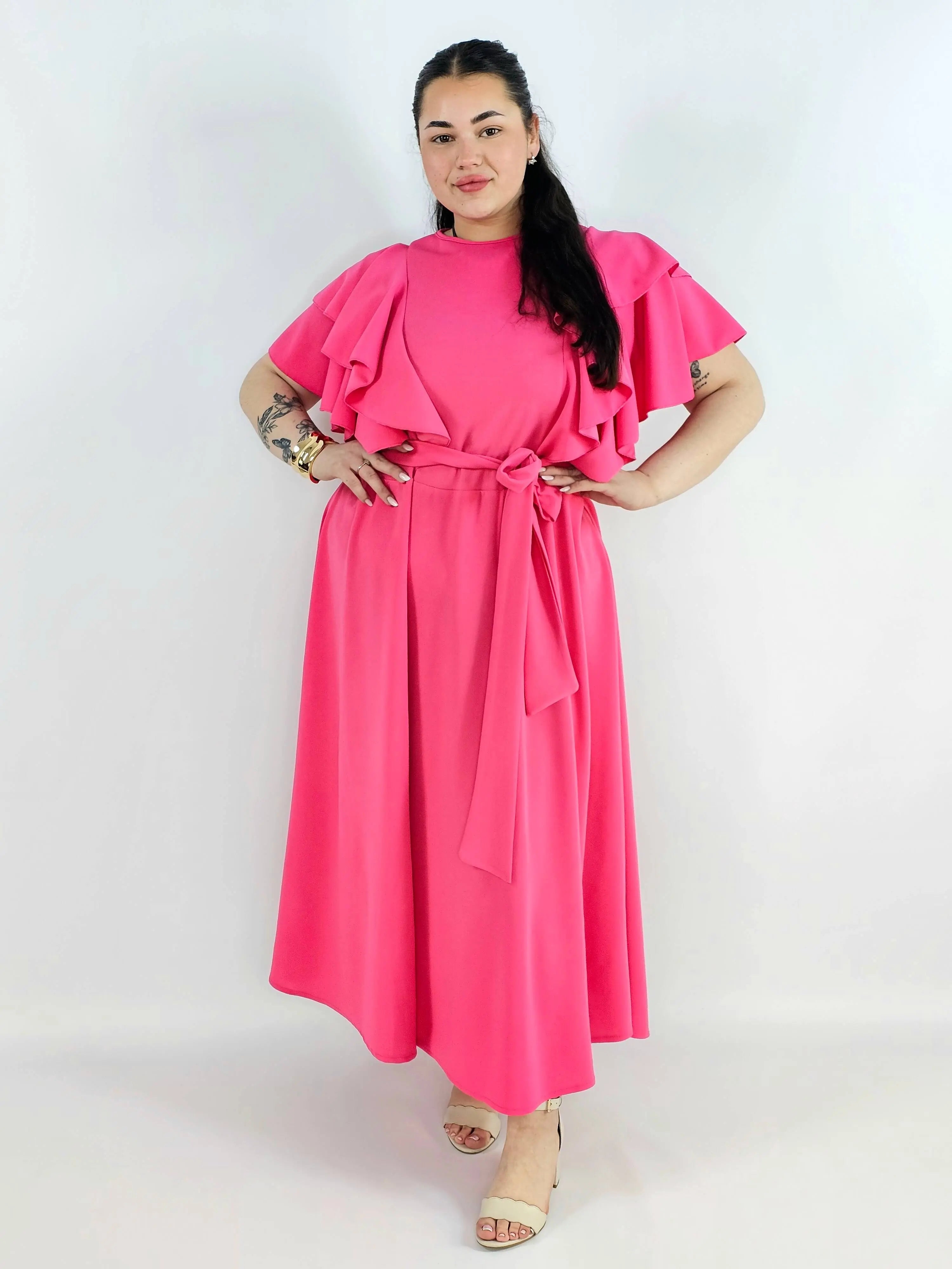 • Sukienka plus size z efektownymi falbanami przy ramionach