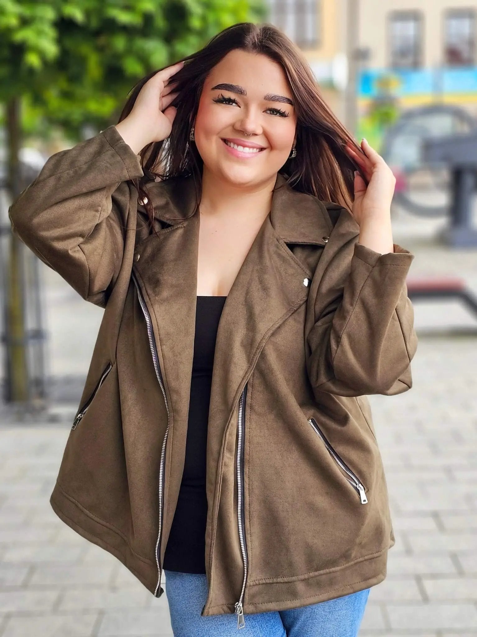 Kurtka ramoneska zamszowa khaki - rozmiary