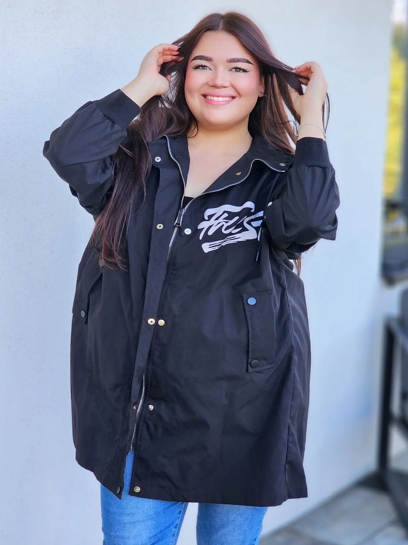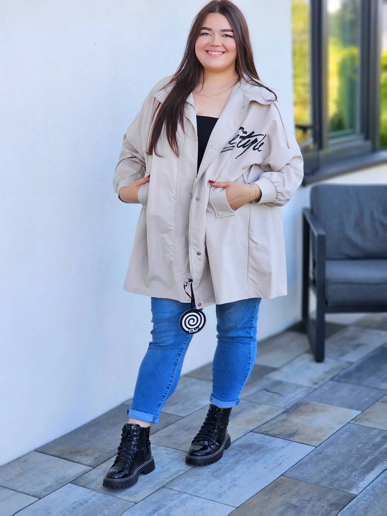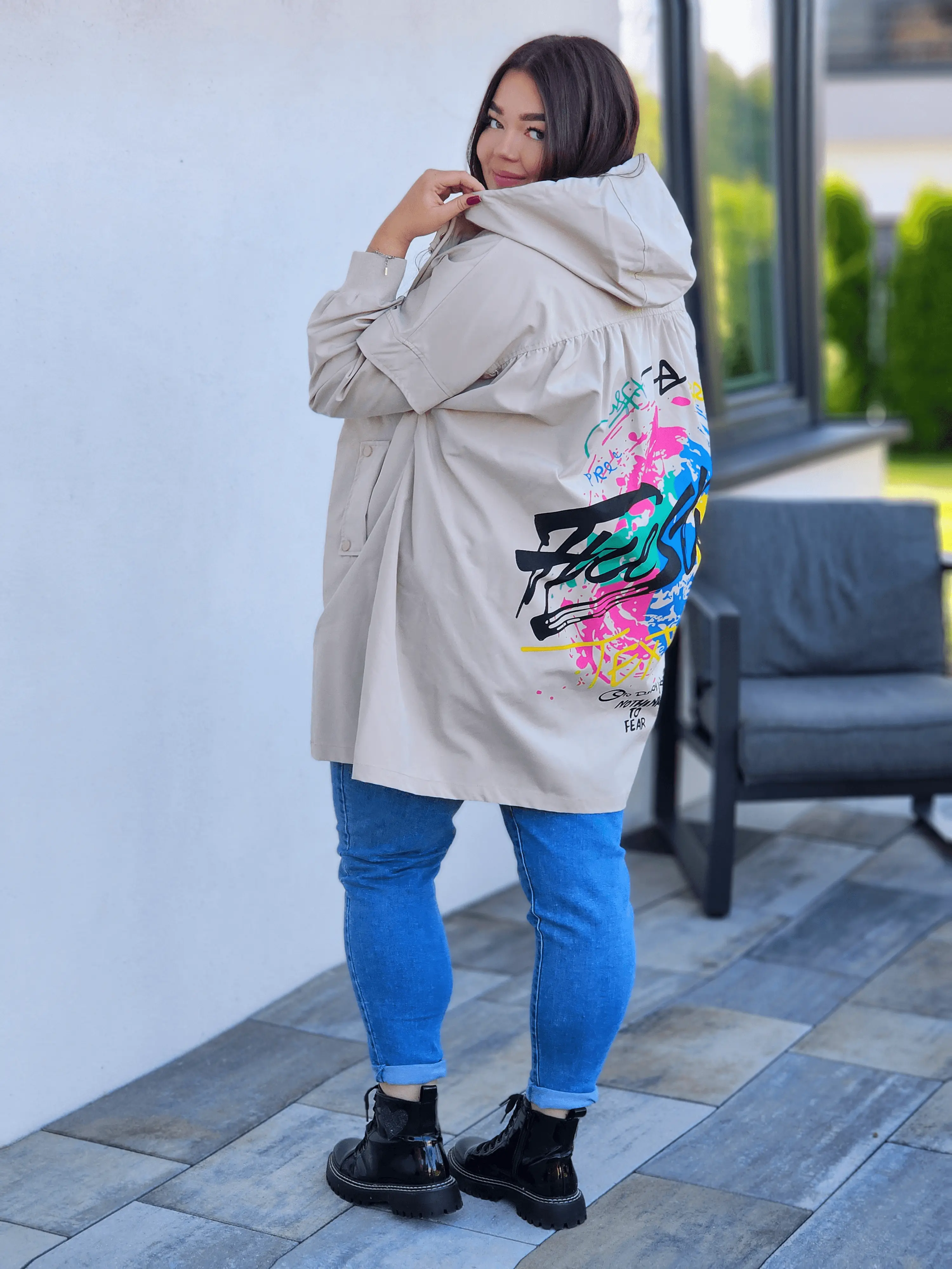 Ta lekka kurtka z kapturem to idealna propozycja dla miłośniczek miejskiego stylu. Gładki przód w połączeniu z efektownym, kolorowym nadrukiem na plecach tworzy nowoczesny, przyciągający wzrok look. Luźny krój i praktyczne kieszenie zapewniają wygodę w codziennym noszeniu.