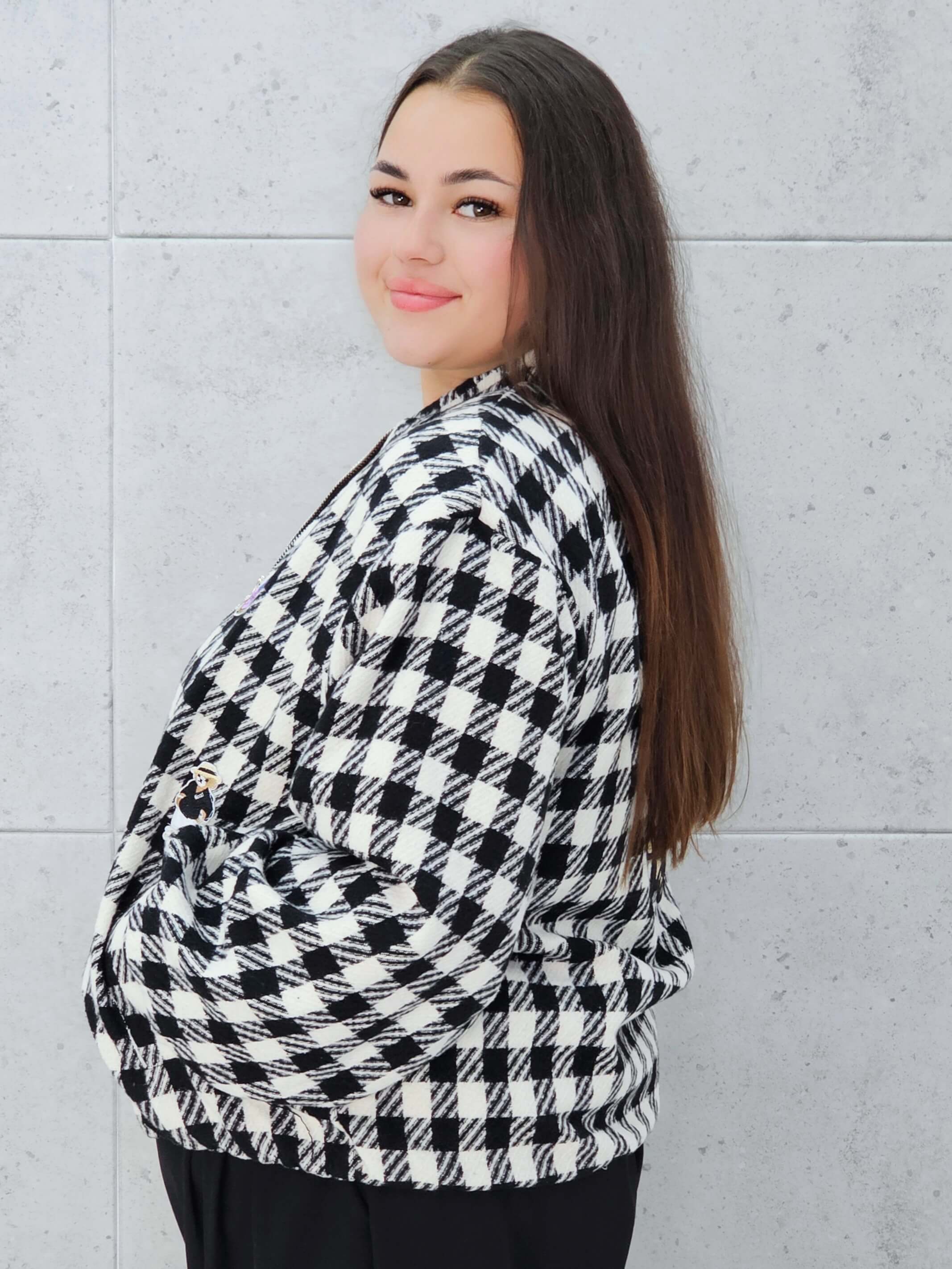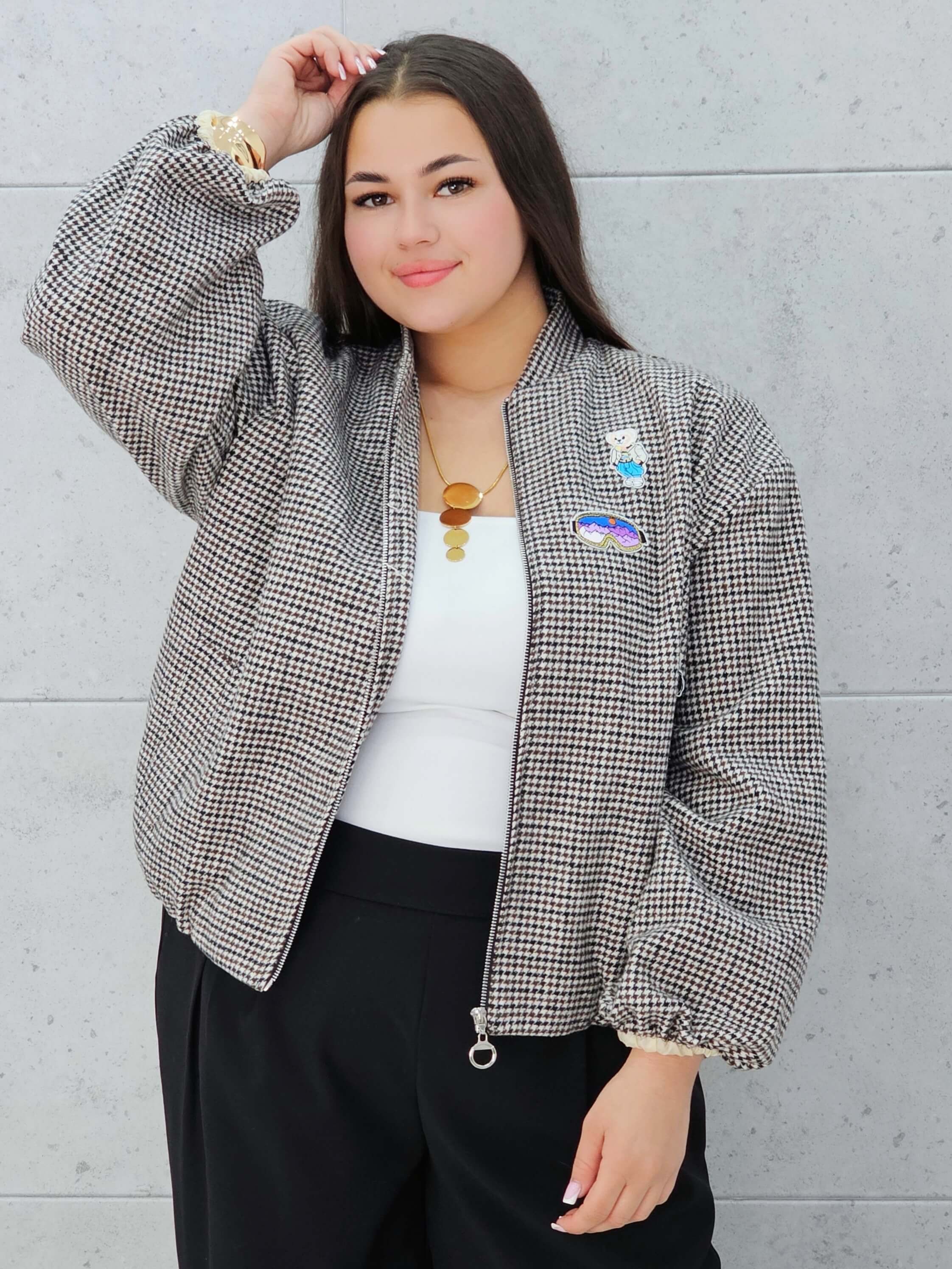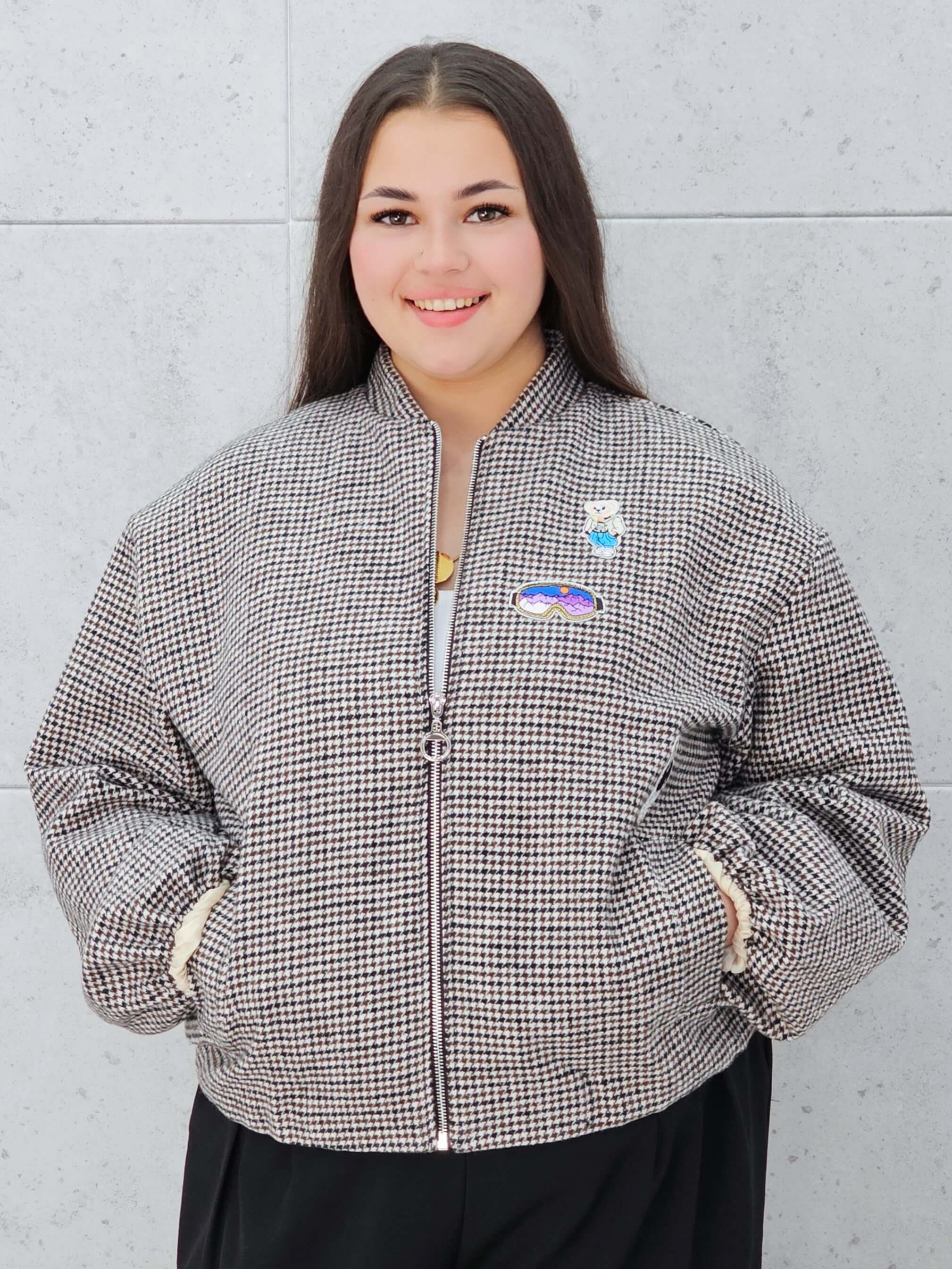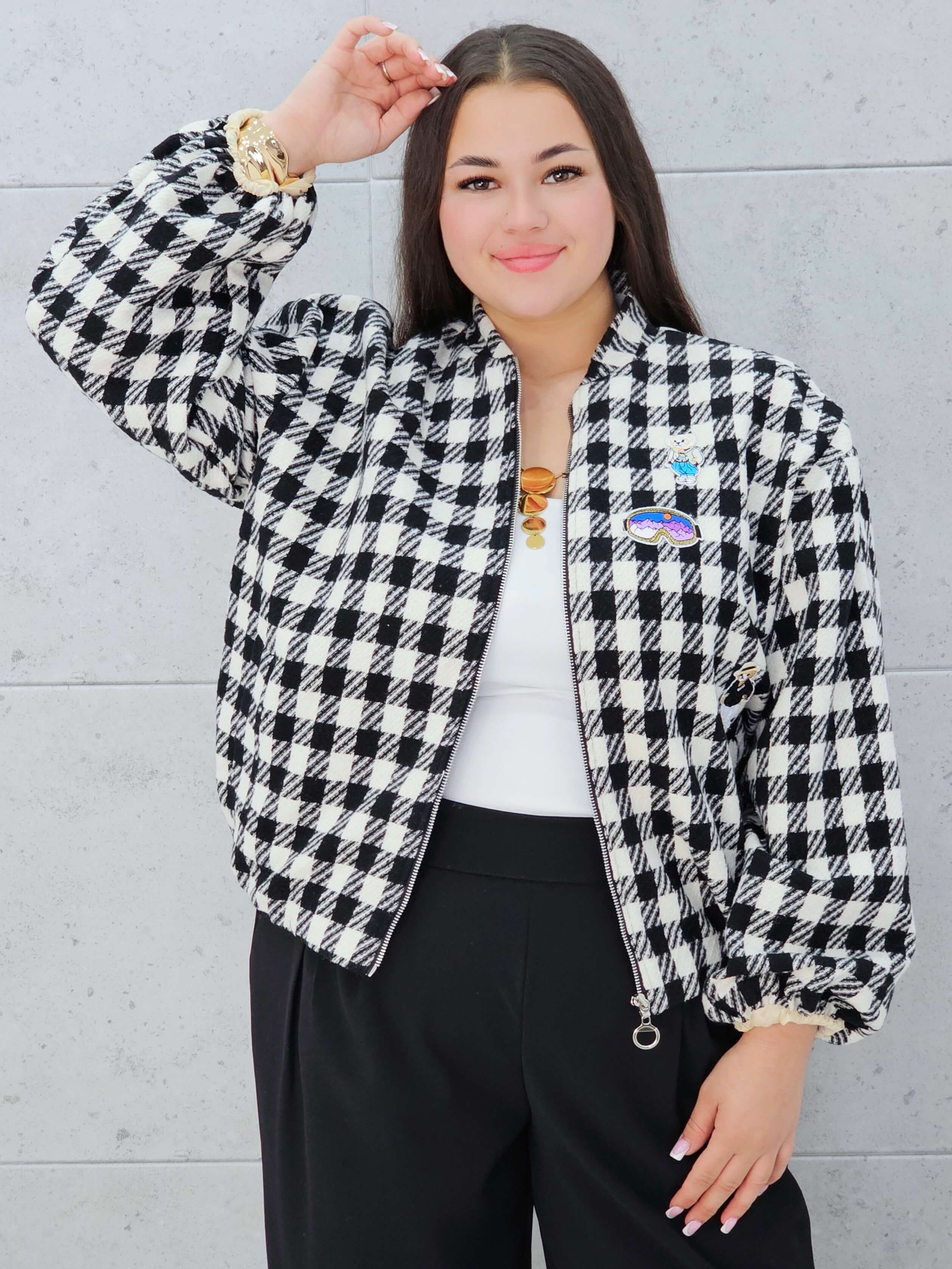 Marynarka w kratkę z aplikacjami