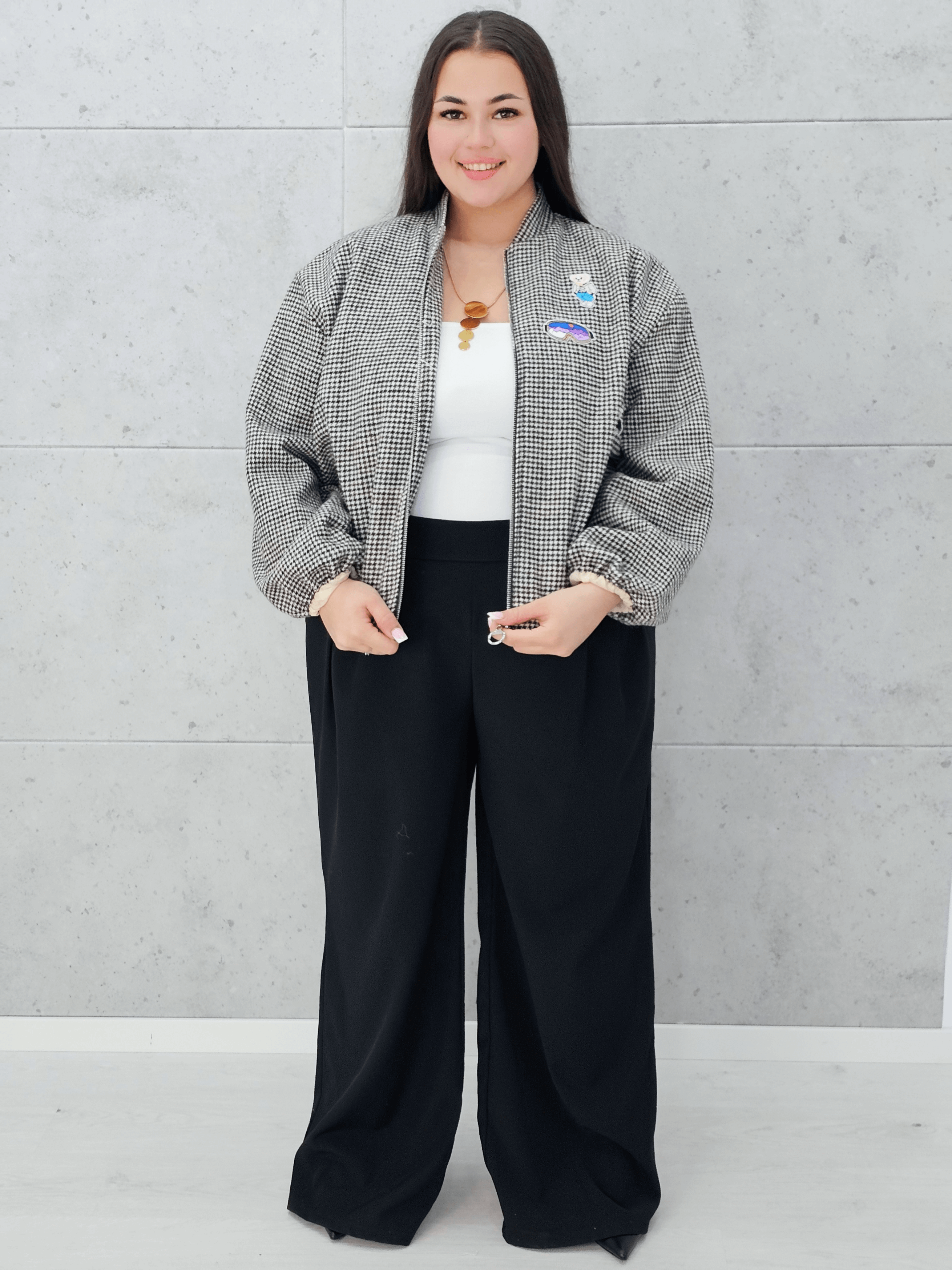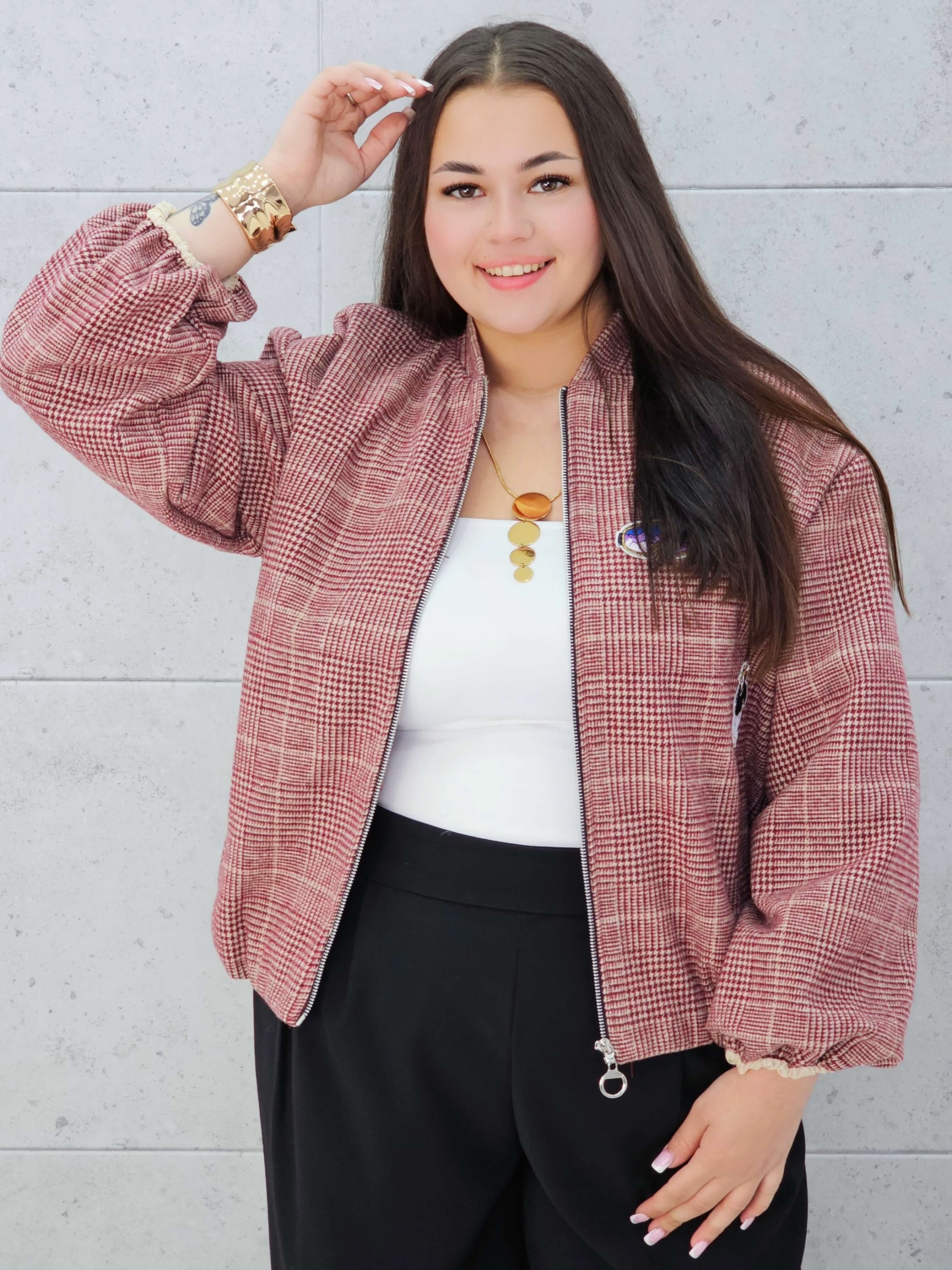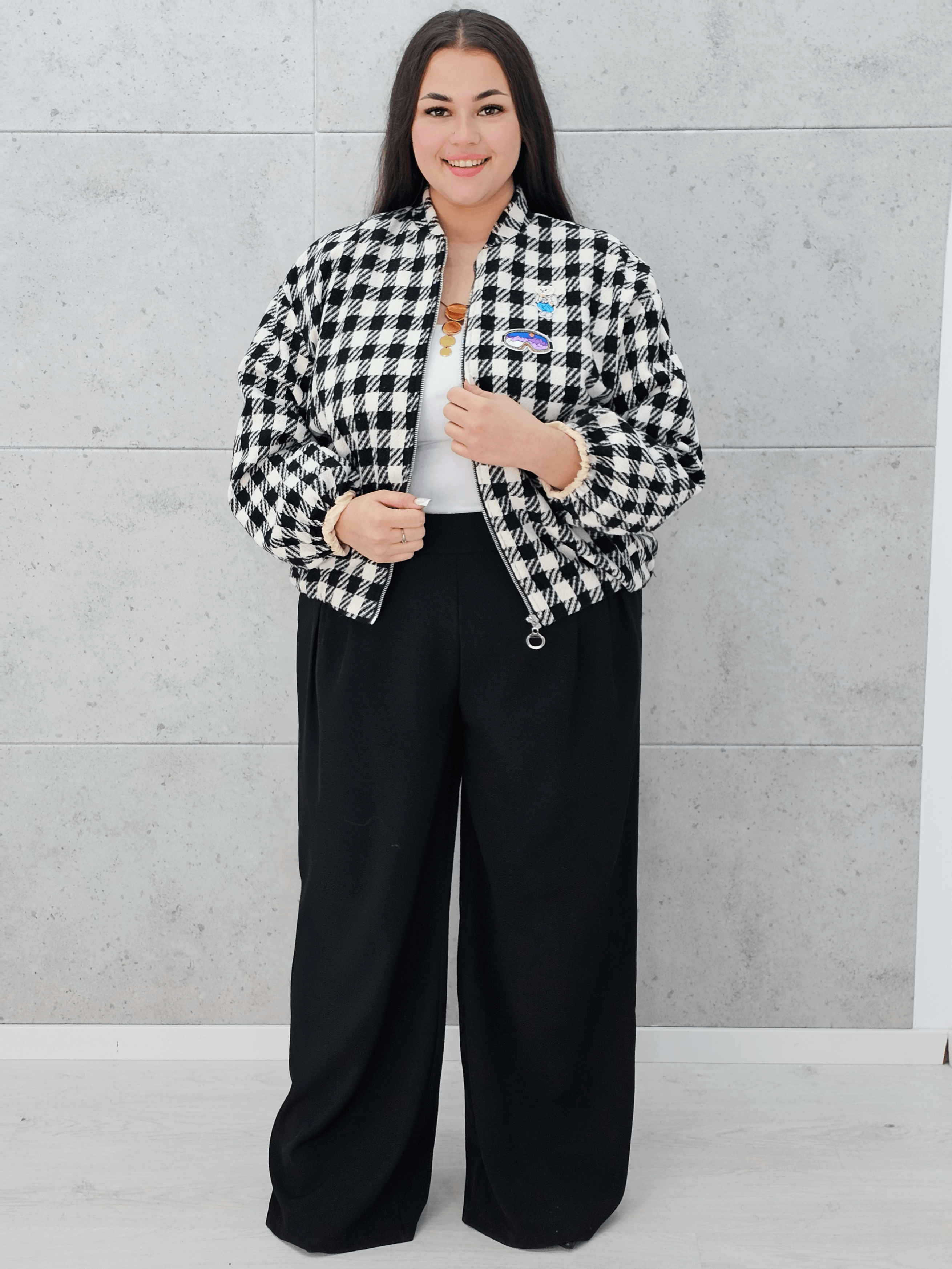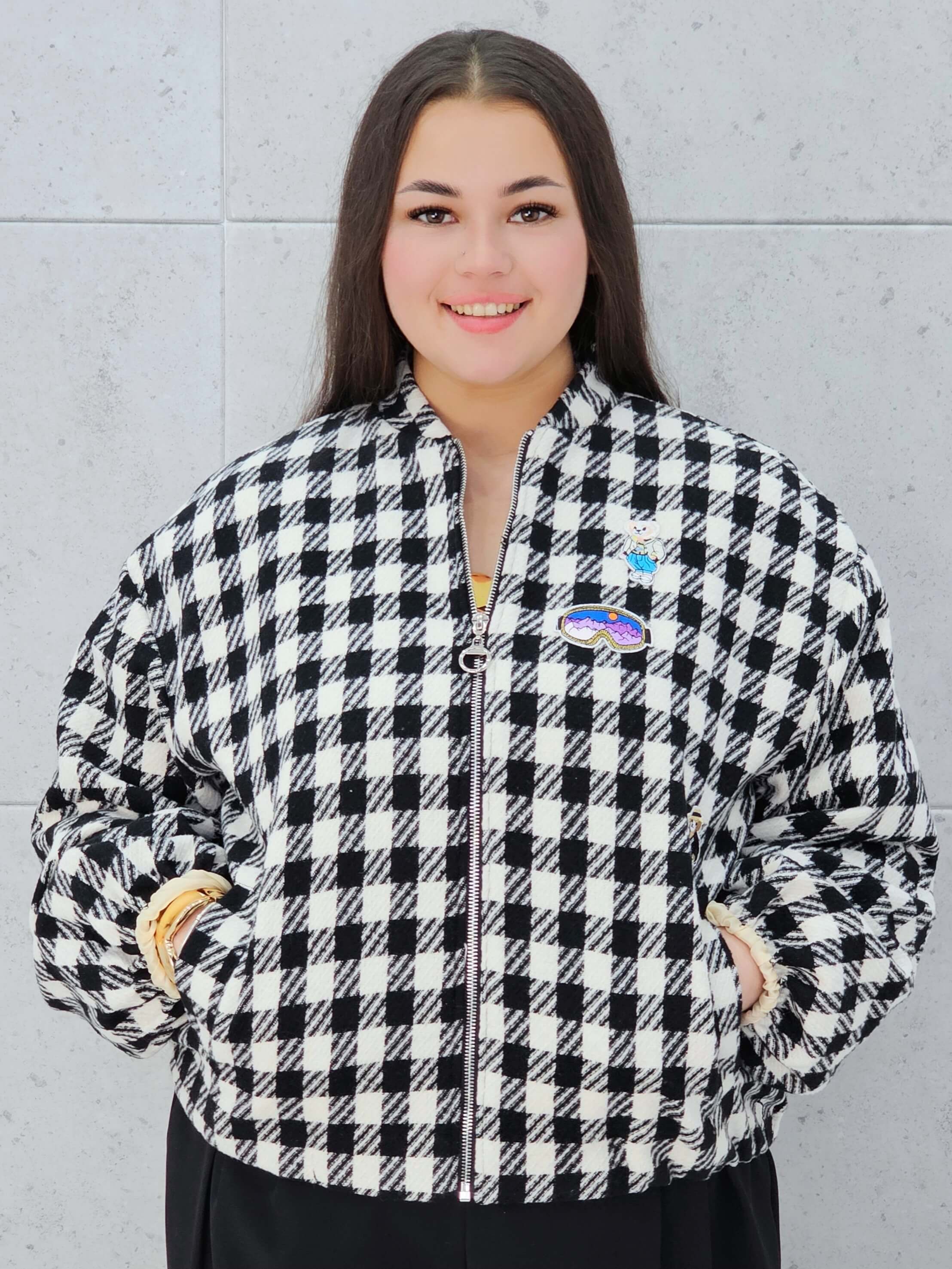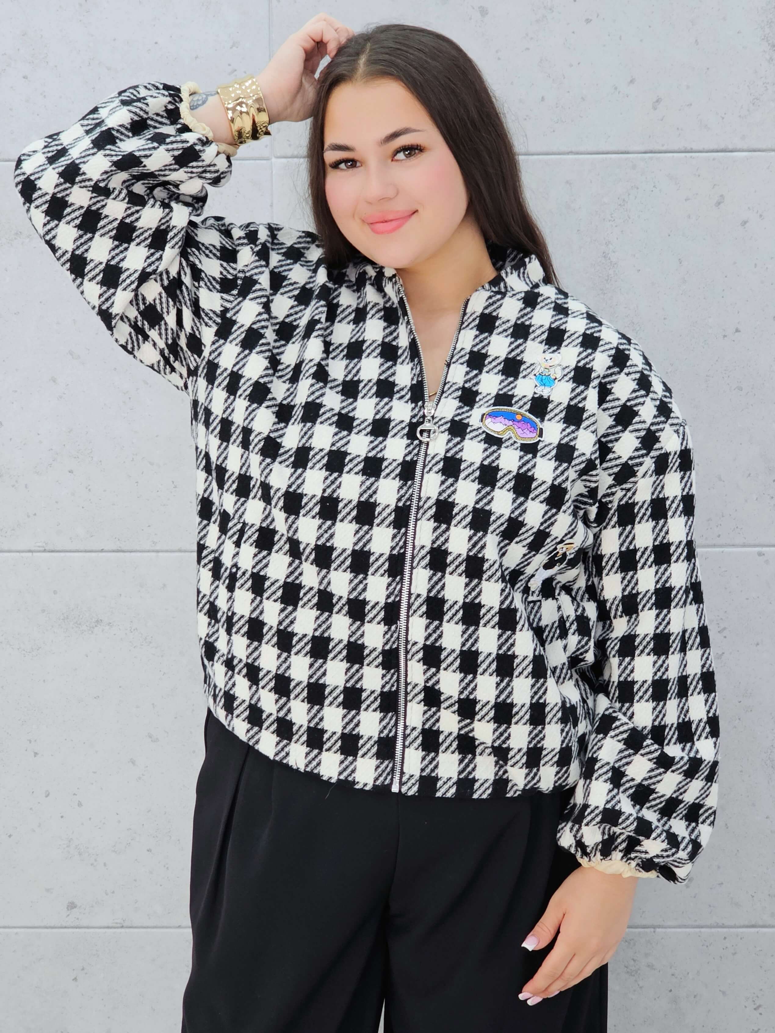 Marynarka w kratkę z aplikacjami