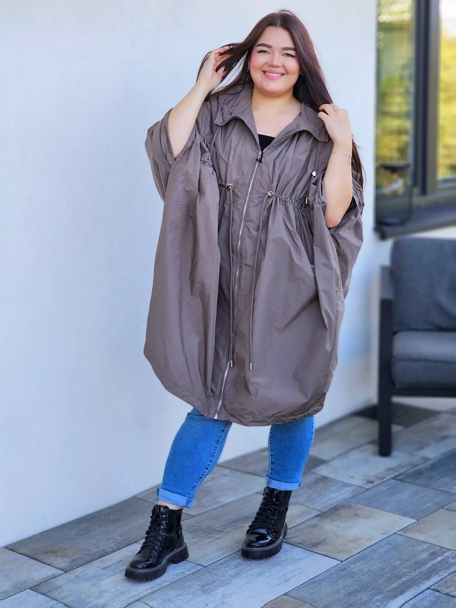 Ta niezwykle lekka parka o oversize’owym kroju to propozycja dla kobiet, które cenią sobie pełną swobodę i komfort noszenia. Jej obszerny fason sprawia, że idealnie układa się na sylwetce w każdym rozmiarze, a regulacja w talii pozwala dopasować ją do własnych potrzeb. To doskonały wybór na wietrzne dni, spacery czy codzienne miejskie stylizacje.