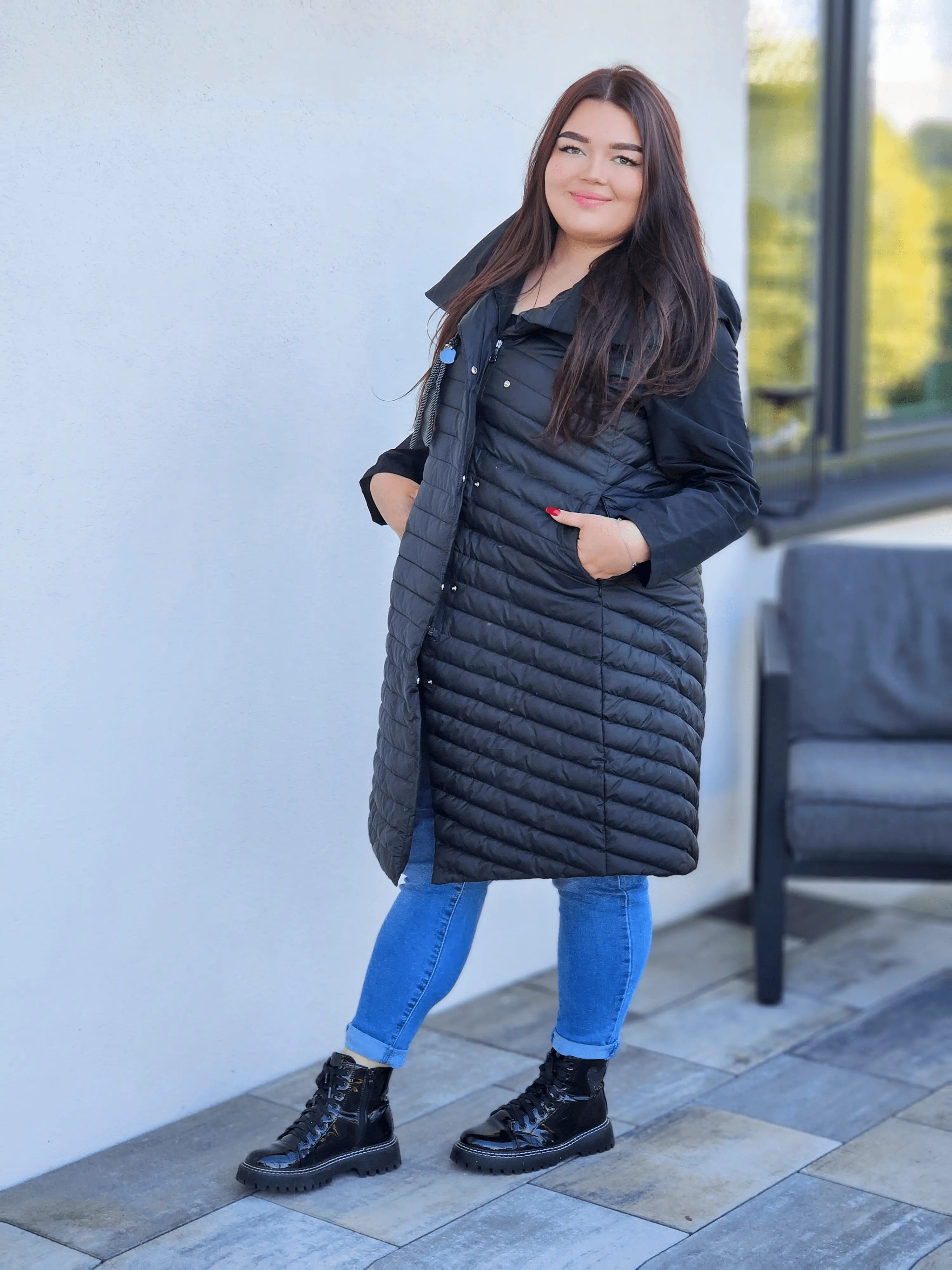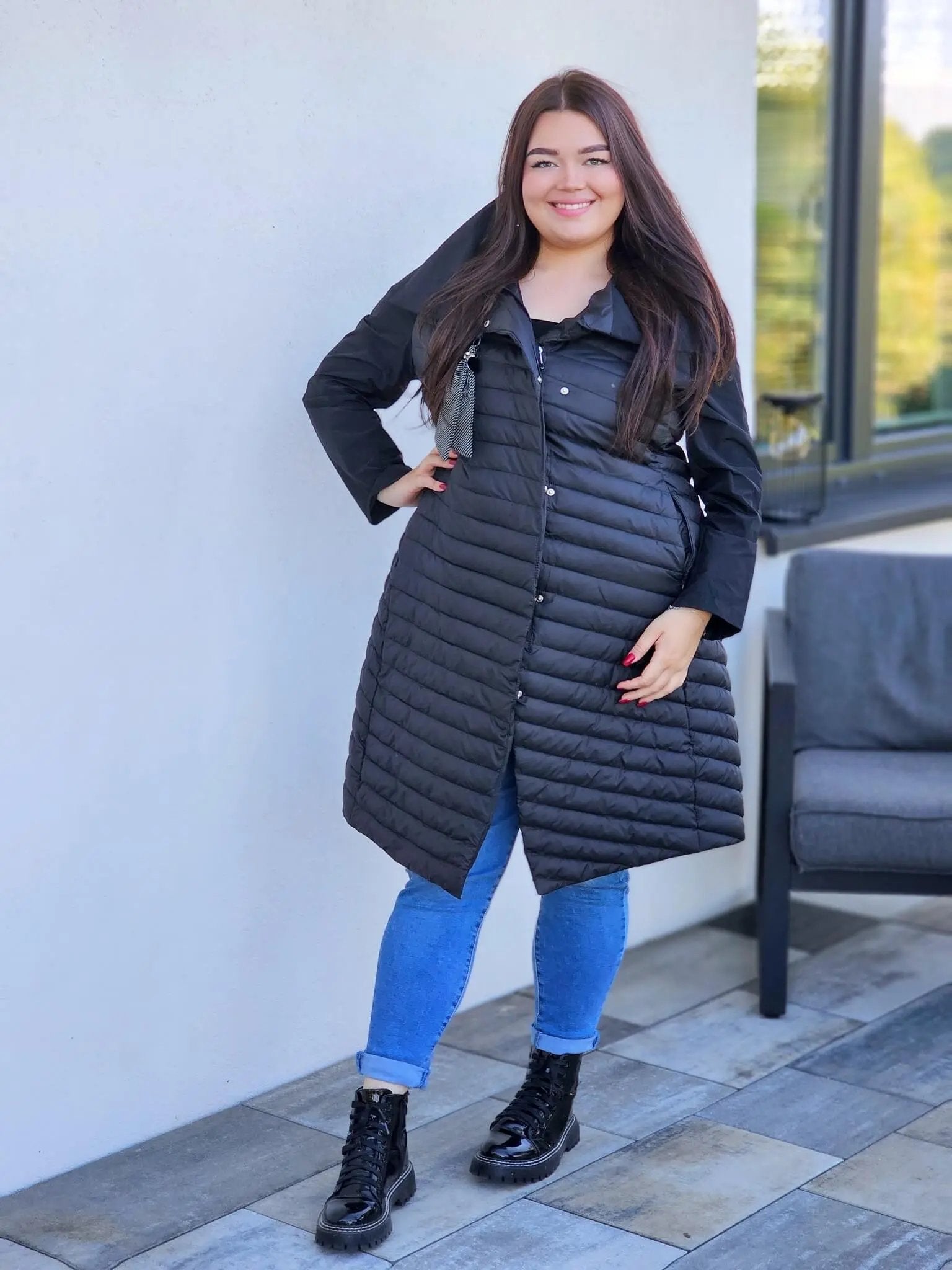 Ta pikowana kurtka to idealny wybór na sezon przejściowy i zimowe poranki. Lekka, ale ciepła konstrukcja zapewnia komfort noszenia, a wysoki kołnierz chroni przed chłodem i wiatrem. Prosty krój uzupełniony subtelnymi pikowaniami dodaje całości klasy, a ozdobny detal przy zamku przyciąga wzrok.