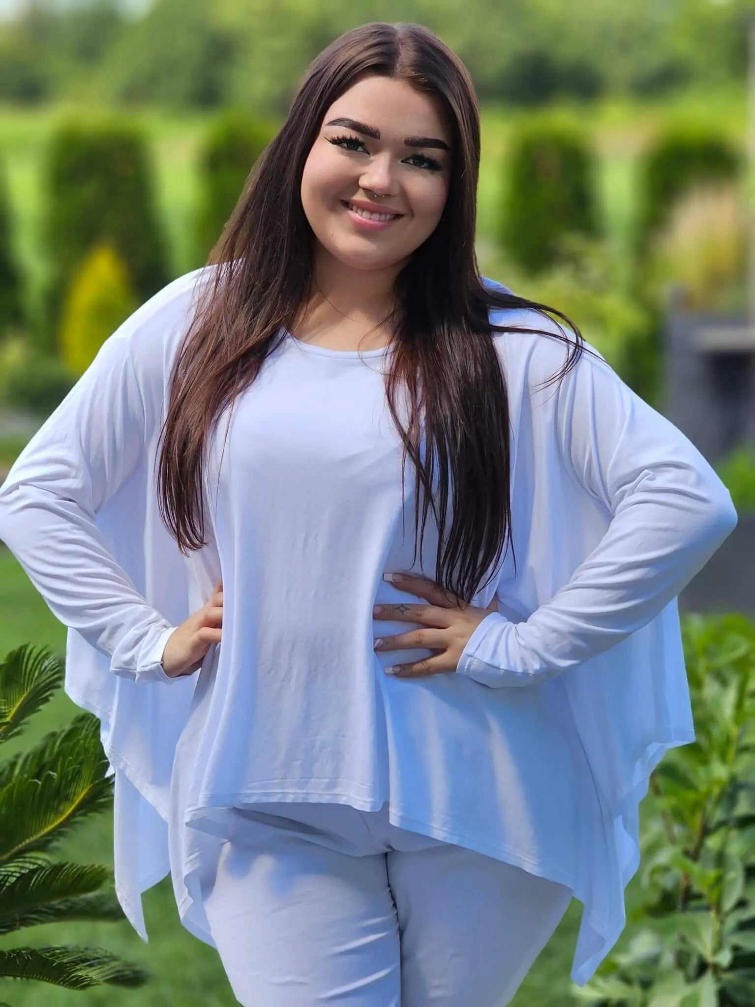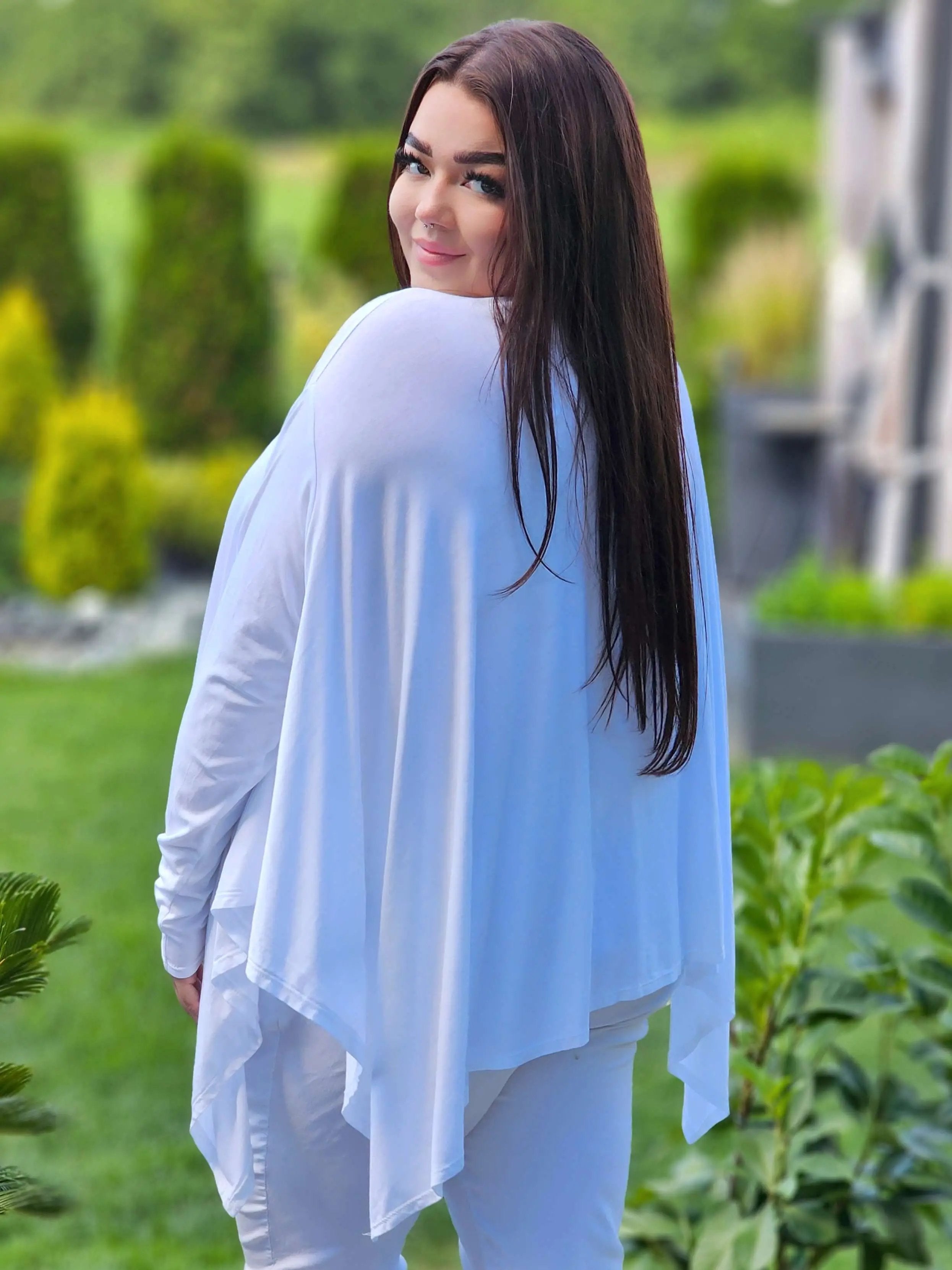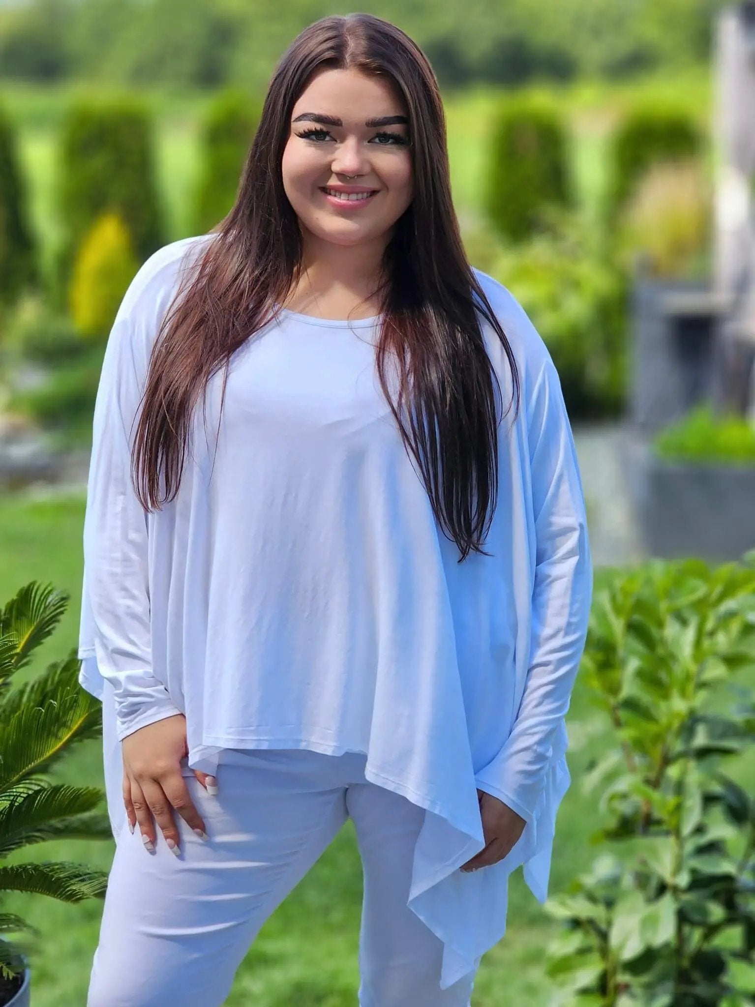 Jeśli szukasz przewiewnej, wygodnej i nietuzinkowej bluzki – właśnie ją znalazłaś! Ta biała bluzka o asymetrycznym kroju pięknie układa się na sylwetce i daje pełną swobodę ruchów. Dzięki oversize’owemu fasonowi i subtelnemu wykończeniu sprawdzi się świetnie w codziennych stylizacjach – od casualu po delikatne boho