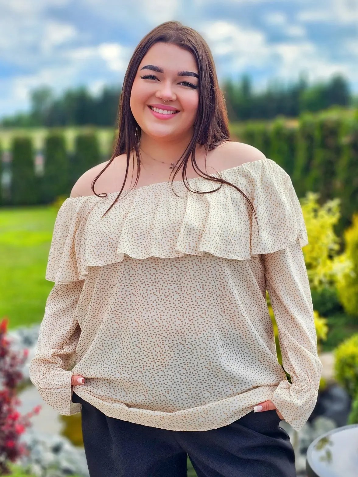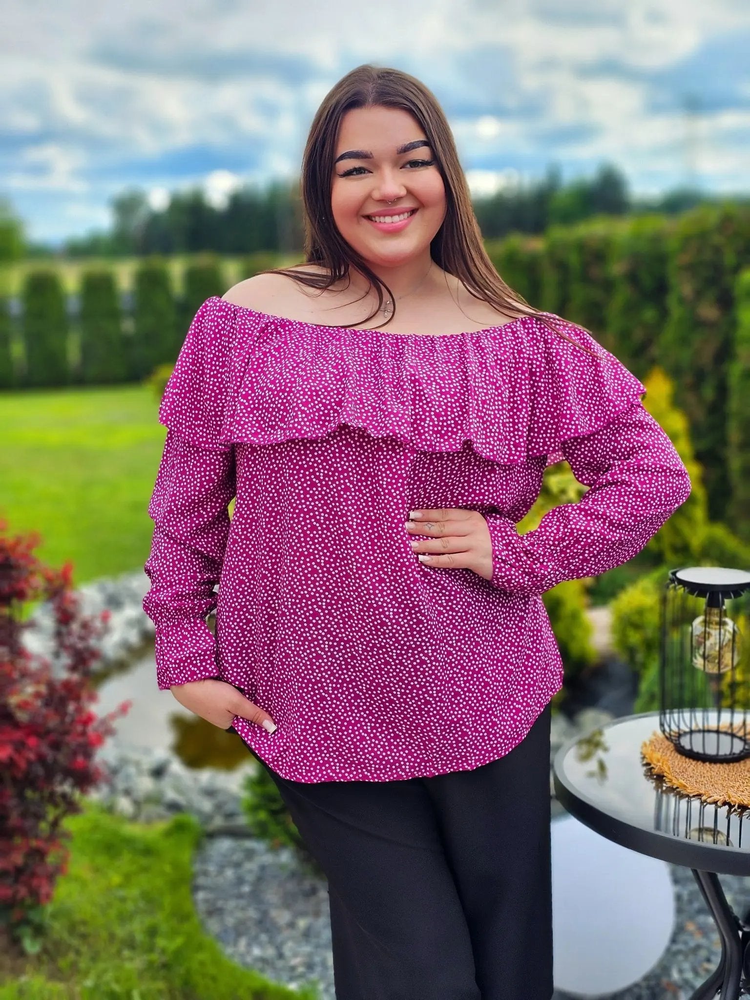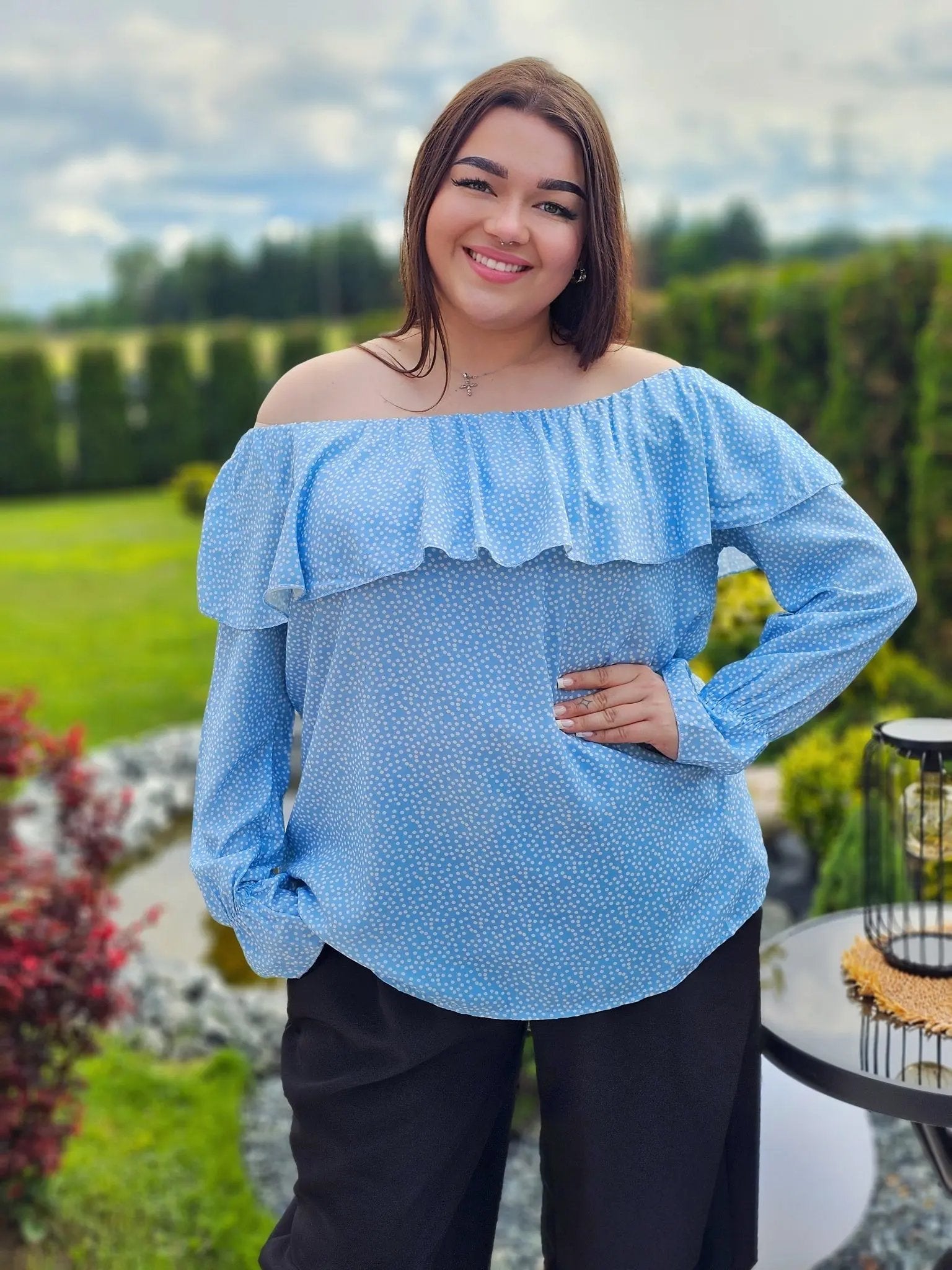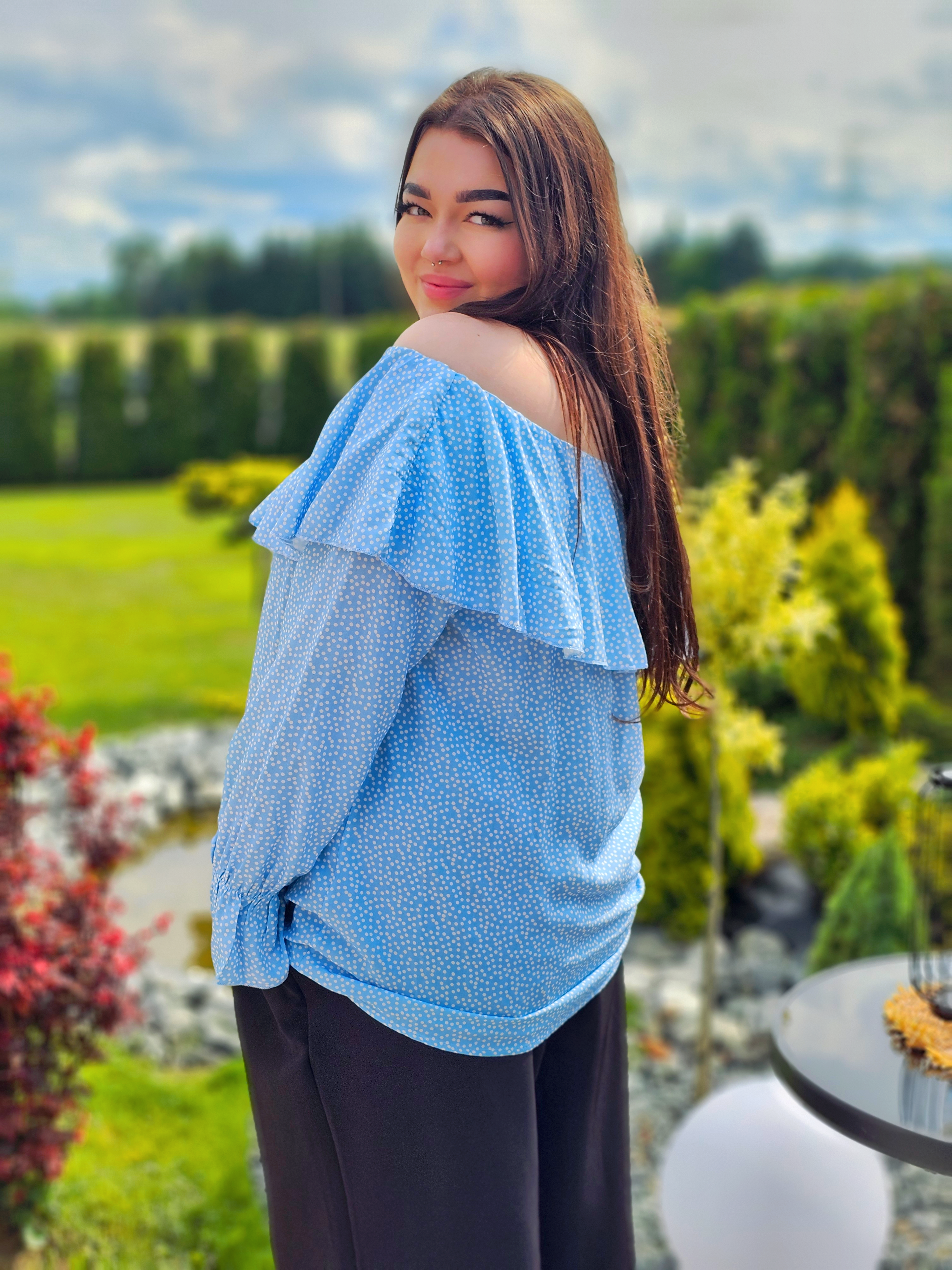 Bluzka hiszpanka w delikatny wzór z falbaną - w 7 kolorach