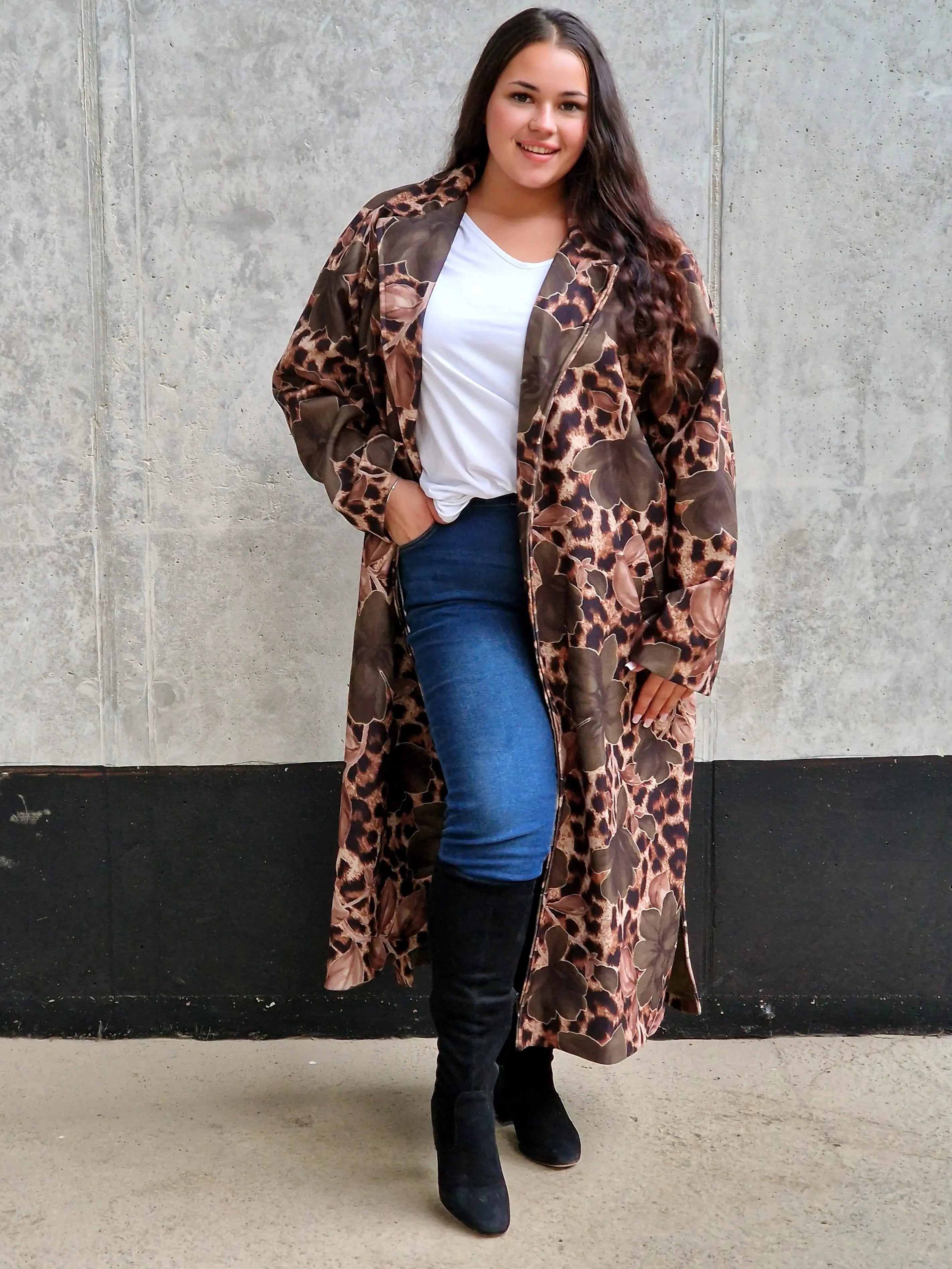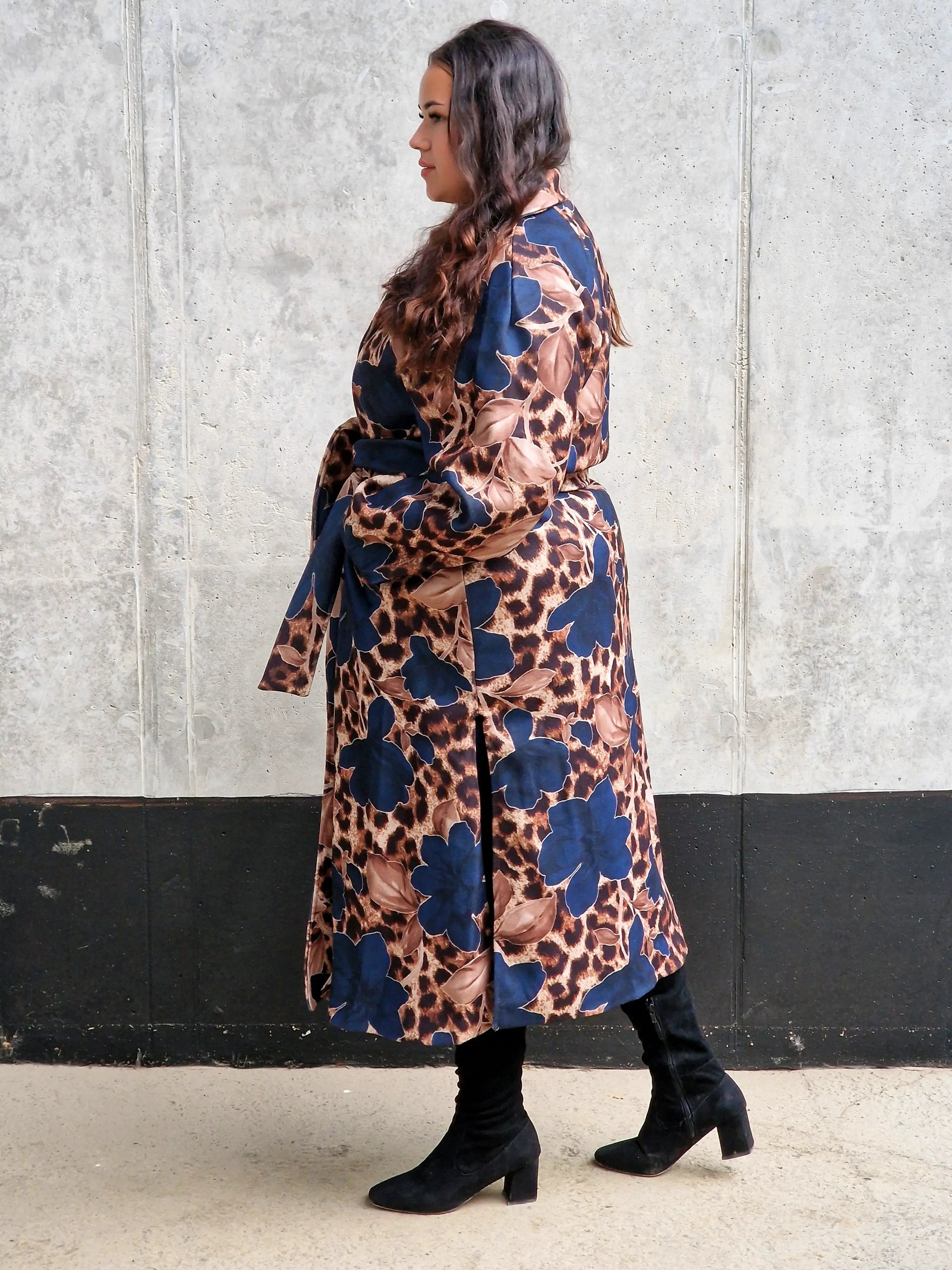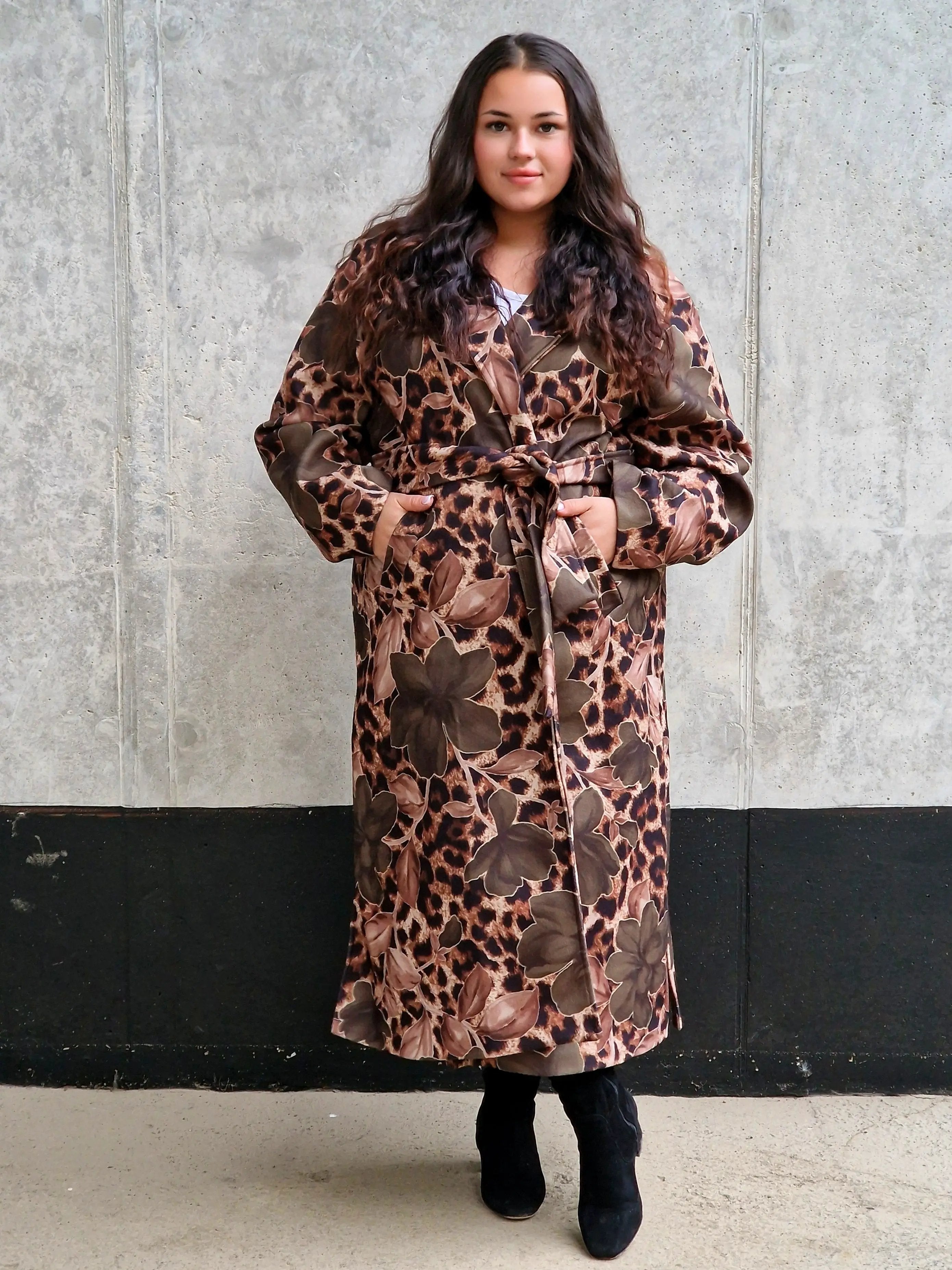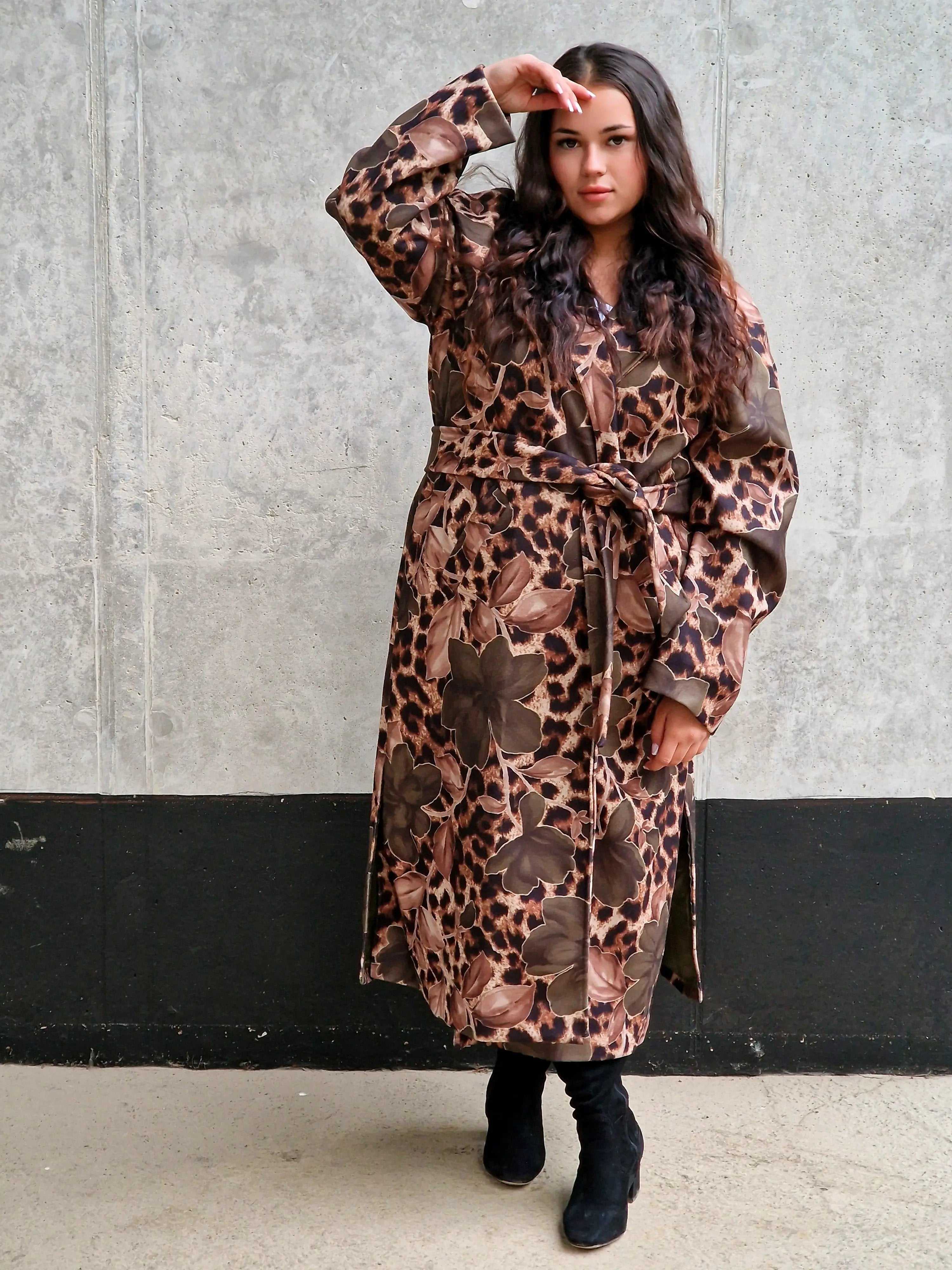 Przyciągnij uwagę wyjątkowym płaszczem, który łączy w sobie dwa wyraziste wzory: klasyczną panterkę i kwiatowy motyw. Ten niezwykły model to idealny wybór dla kobiet, które lubią eksperymentować z modą i wyrażać swoją osobowość. Płaszcz ma prosty krój z wiązaniem w talii, co podkreśla sylwetkę, a szerokie mankiety i wyrazisty kołnierz dodają elegancji. Zrównoważenie dzikiego wzoru panterki z delikatnymi kwiatami tworzy unikalną stylizację, która będzie wyróżniać Cię na każdym kroku.