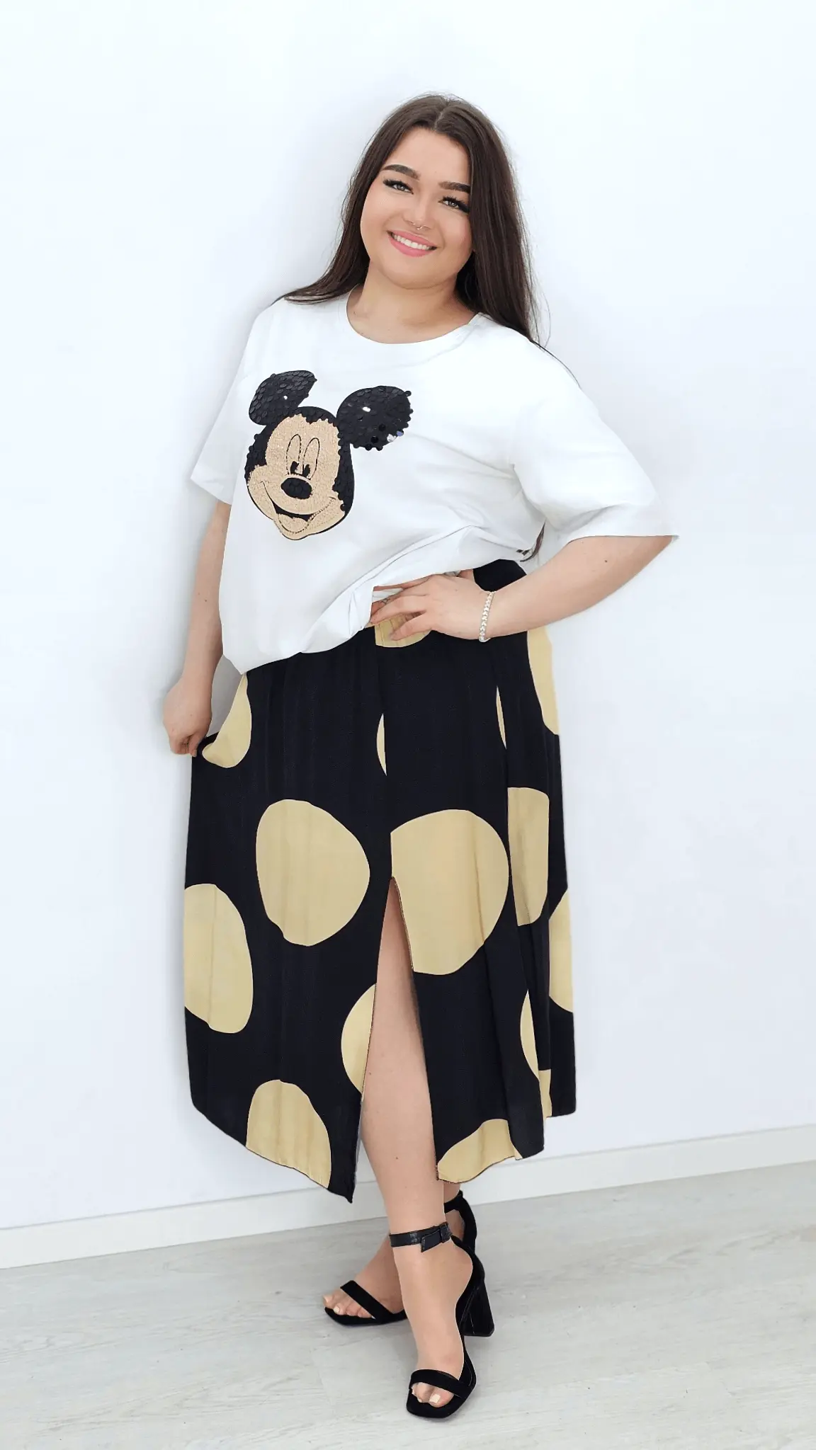 Co więcej, spódnica posiada super print, co oznacza, że jest ozdobiona pięknym i wyrazistym wzorem. który dodaje spódnicy stylu i wyróżnia ją spośród innych.