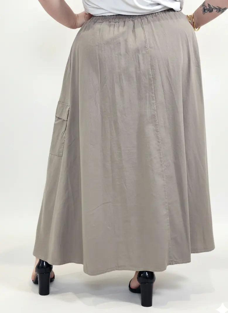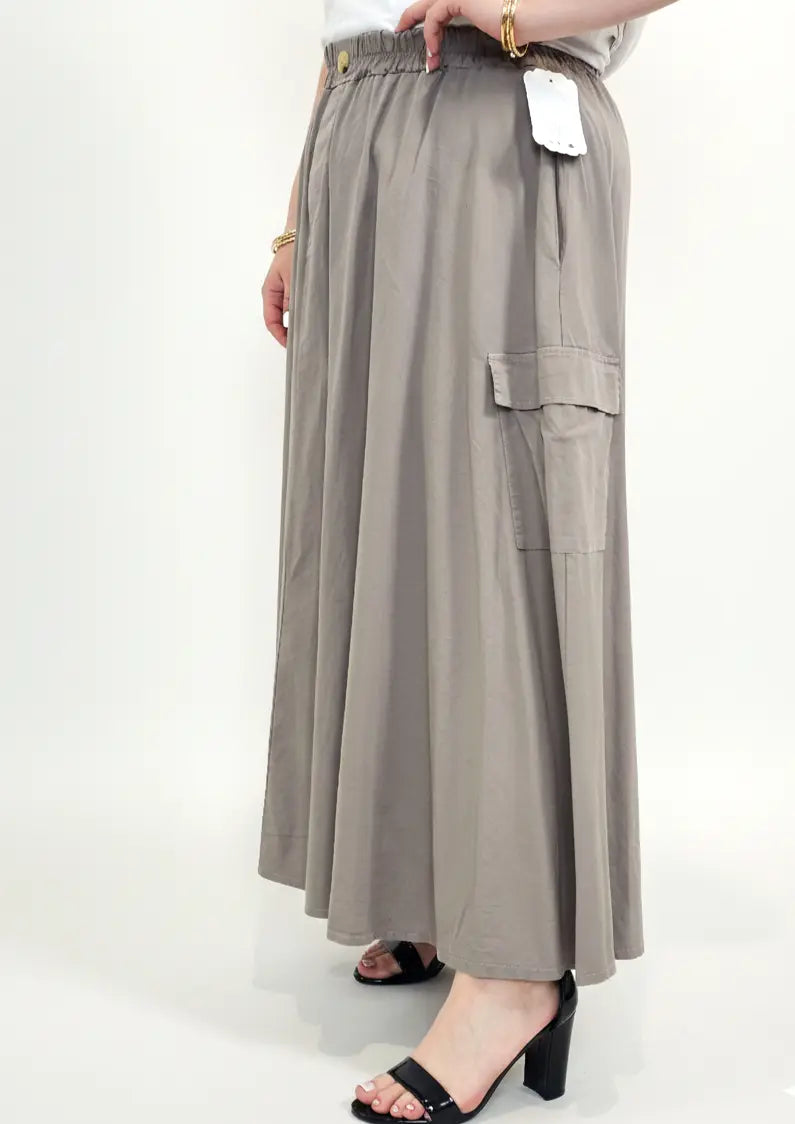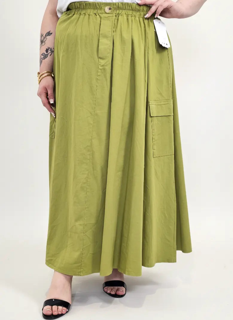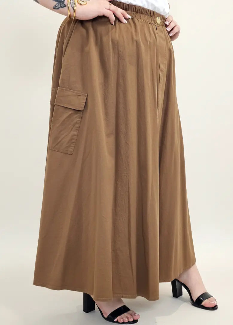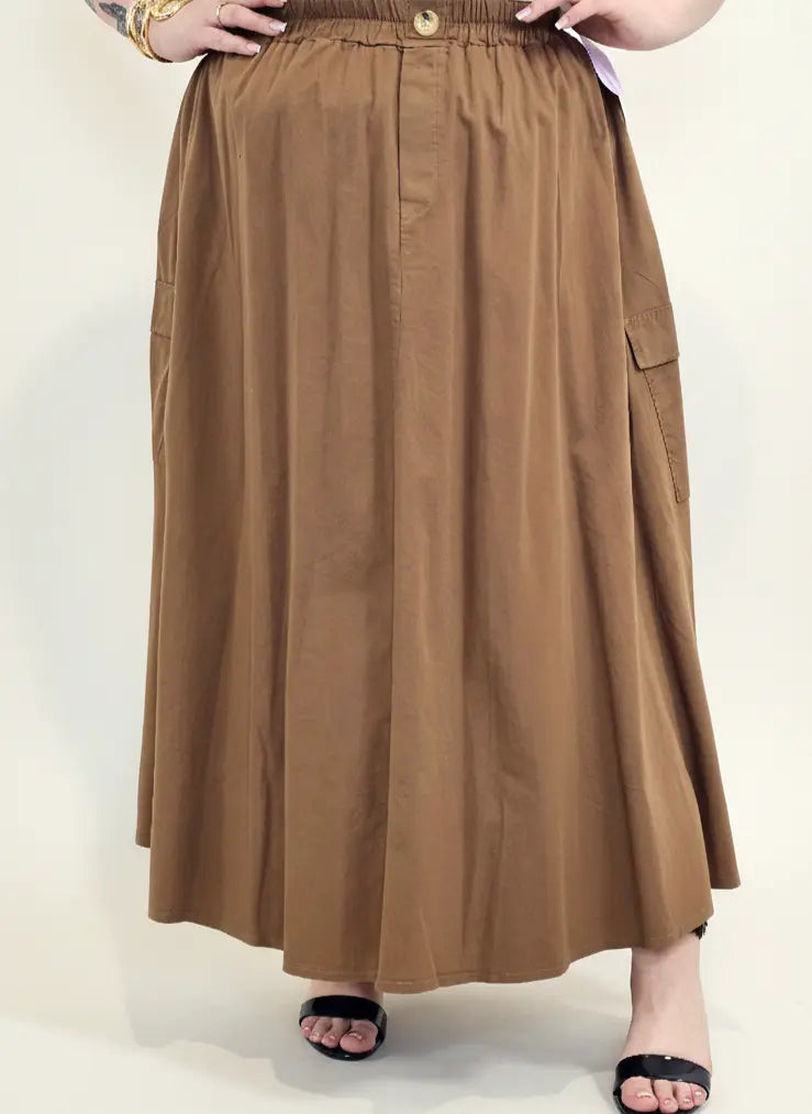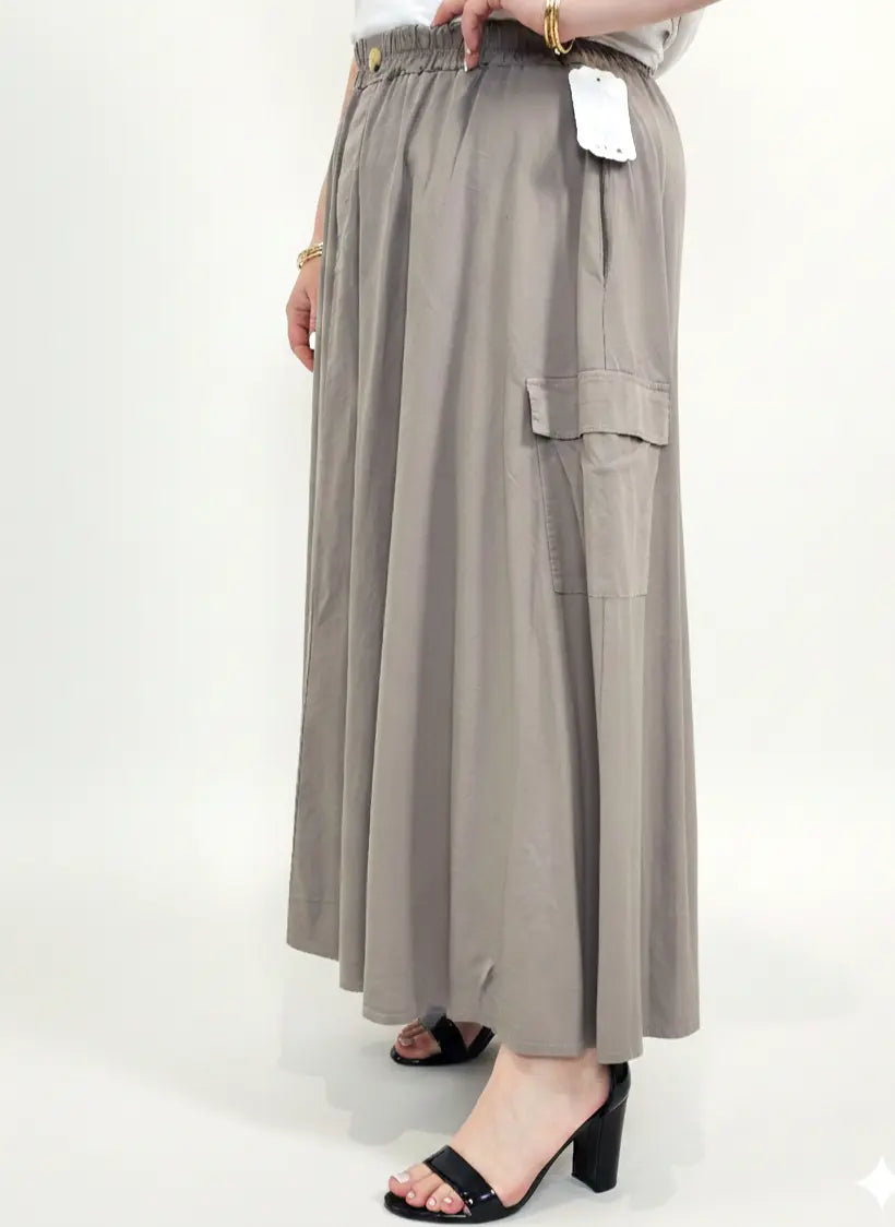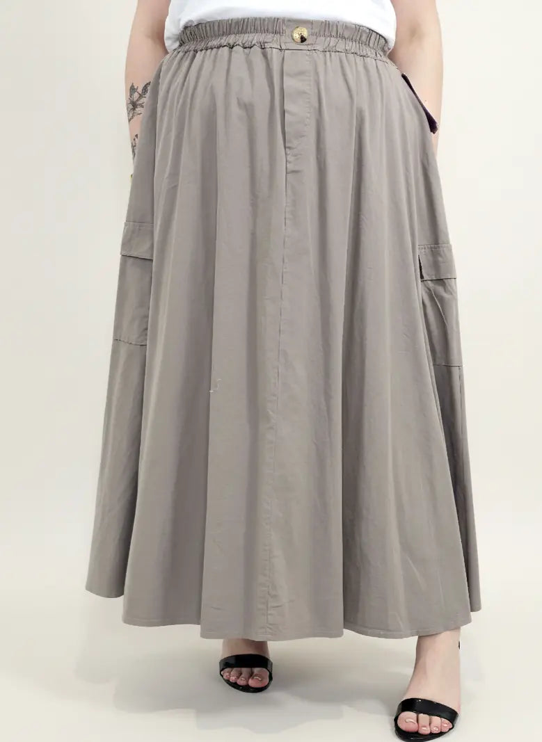Spódnica plus size została uzupełniona o praktyczne kieszenie cargo, które dodają charakteru i wpisują się w aktualne trendy mody plus size. To model, który sprawdzi się zarówno w stylizacjach codziennych z t-shirtem, jak i bardziej eleganckich z koszulą lub bluzką XXL.