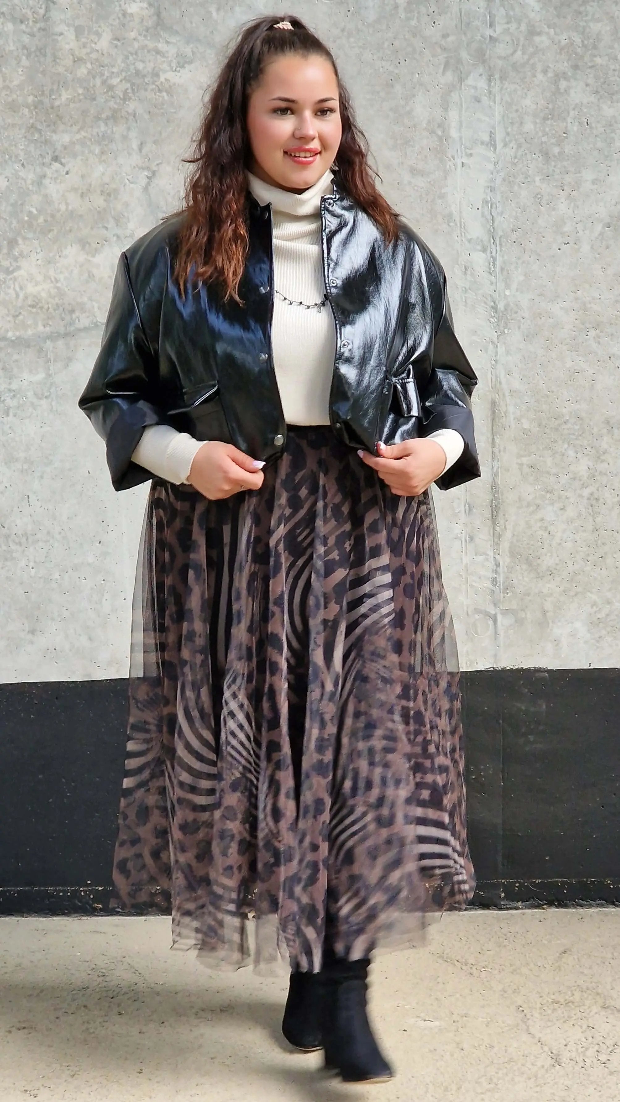 Zwierzęcy print w połączeniu z tiulową tkaniną sprawia, że spódnica jest absolutnym must-have w szafie każdej kobiety, która pragnie wyróżnić się z tłumu.