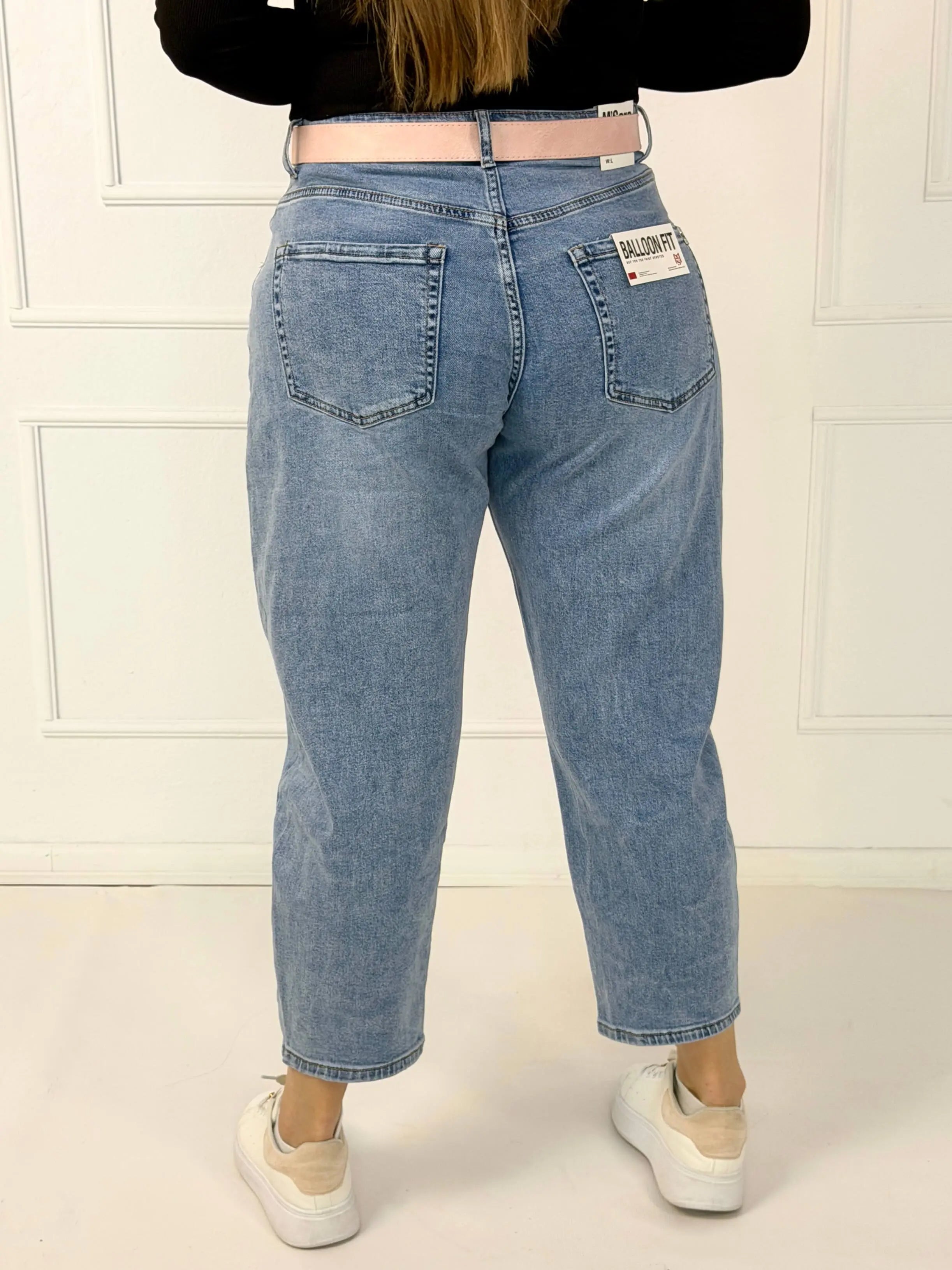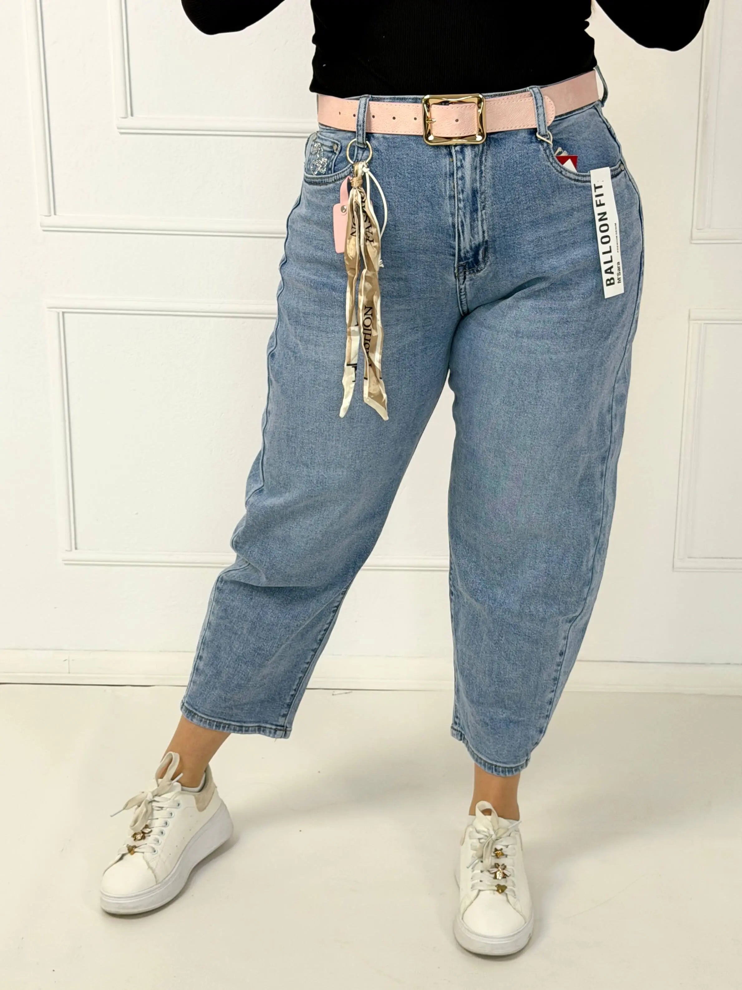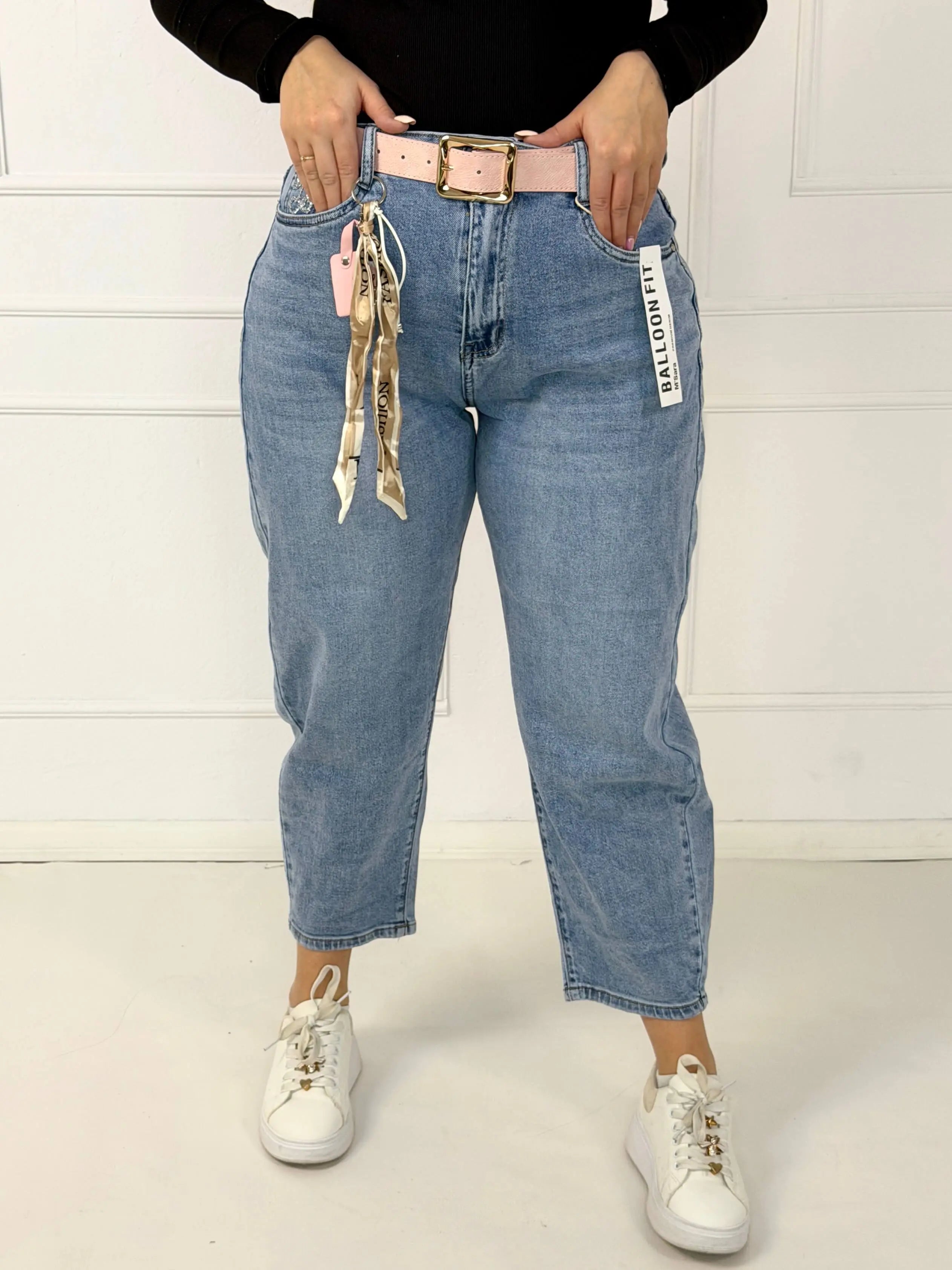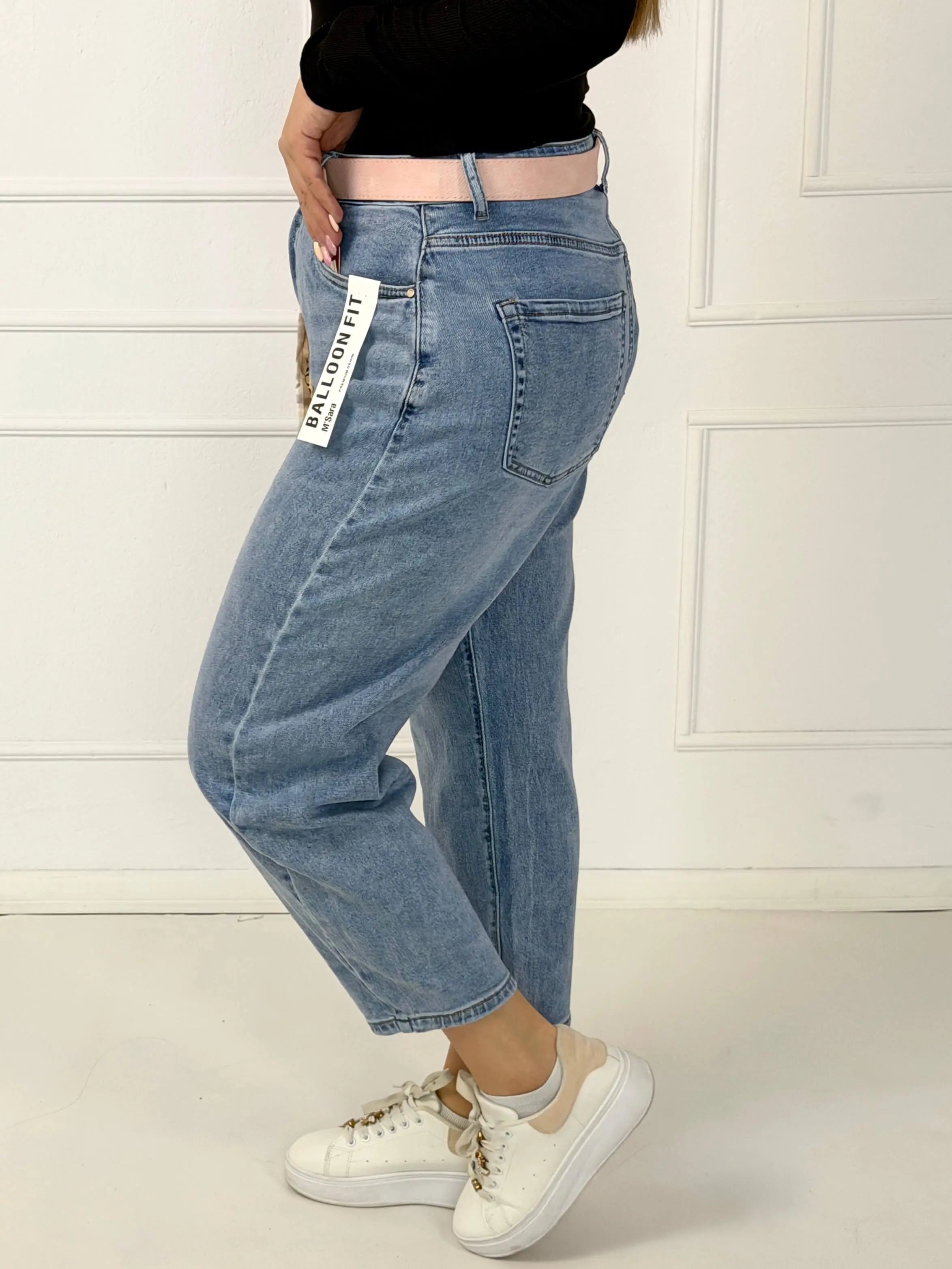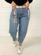 Spodnie jeansowe plus size typu balloon fit z paskiem M.Sara