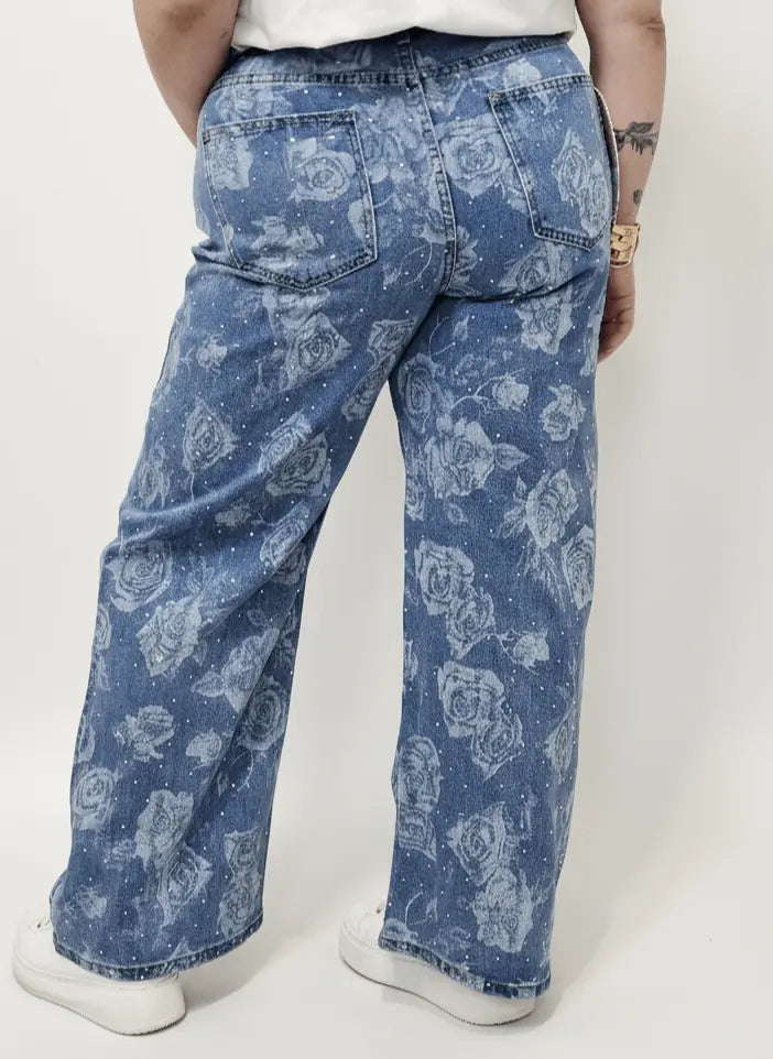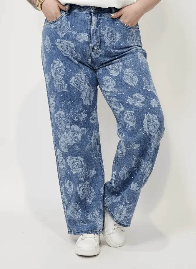 Spodnie jeansowe plus size z kwiatowym wzorem – modne jeansy XXL