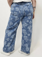 Spodnie jeansowe plus size z modnym kwiatowym wzorem