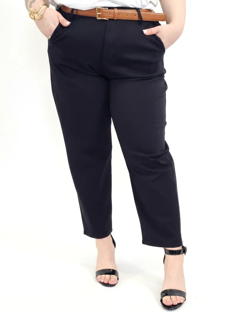 Spodnie plus size eleganckie damskie z prostą nogawką – czarne