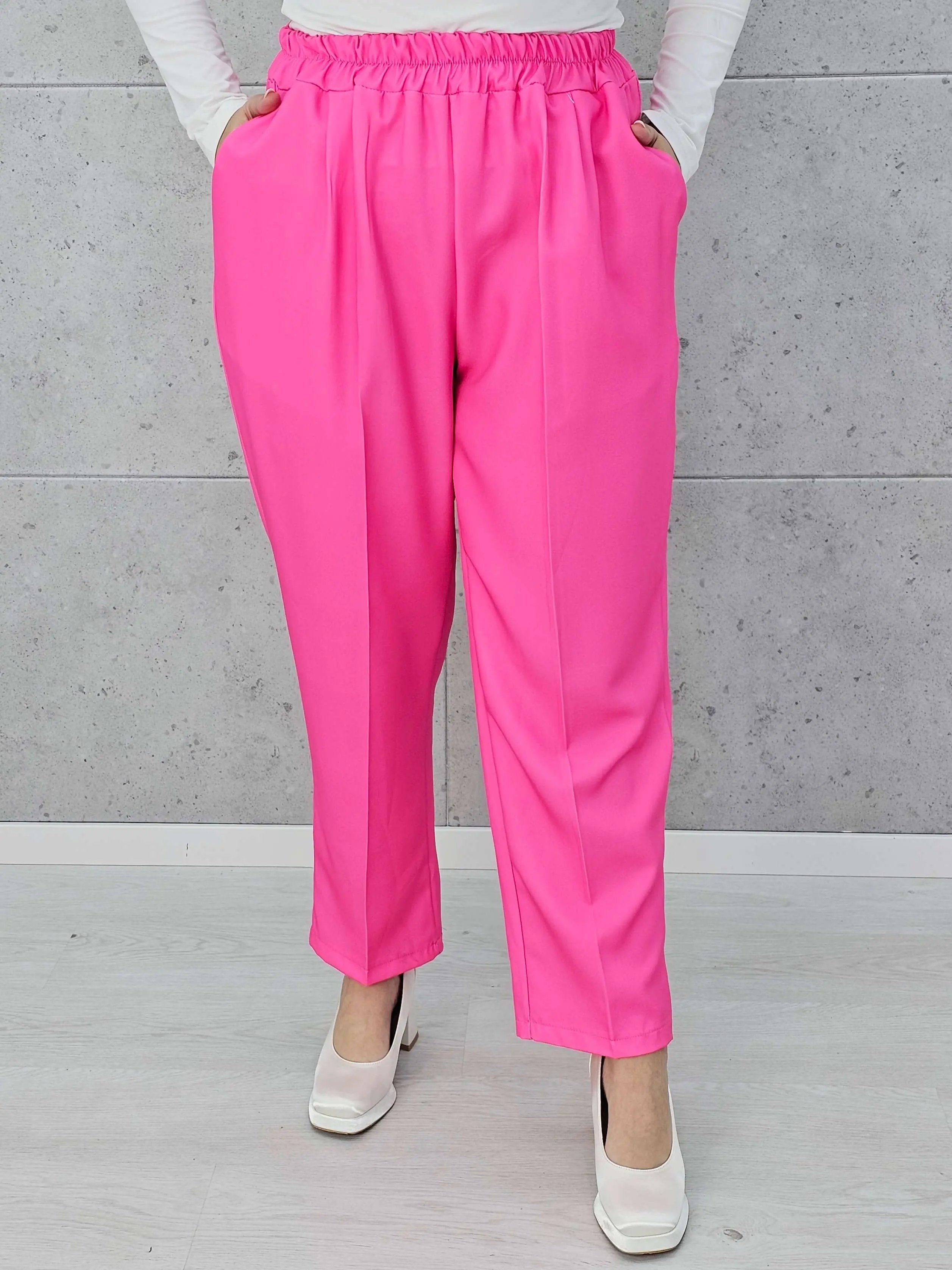 Wystarczy dodać bluzkę, koszulę lub lekki żakiet, aby stworzyć stylizację pełną klasy. Takie spodnie plus size to niezastąpiony element kobiecej garderoby – zawsze modne i komfortowe.