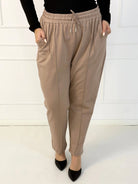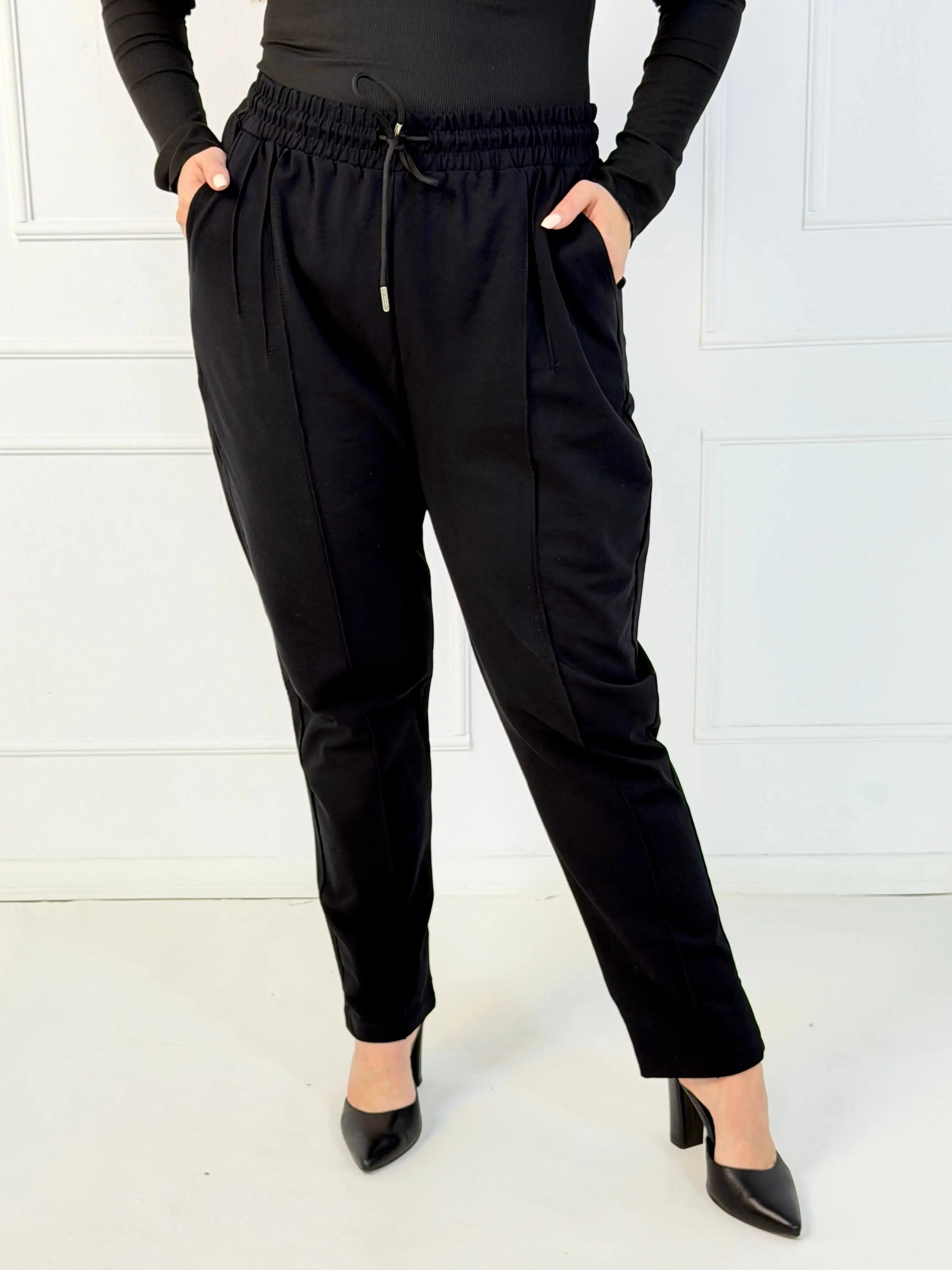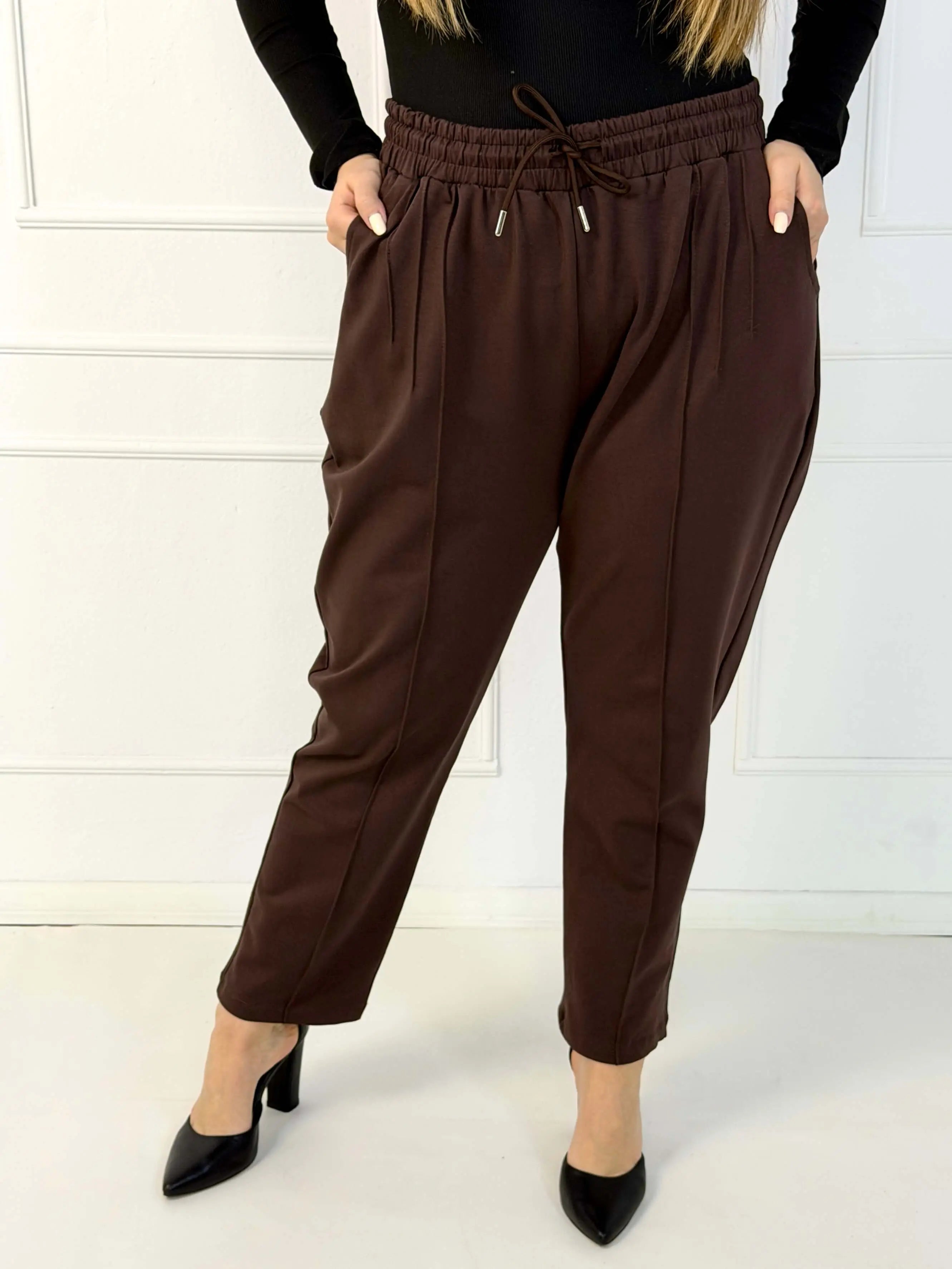 Spodnie plus size z elastycznym pasem, troczkiem i kieszeniami