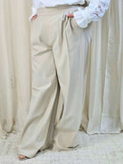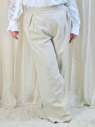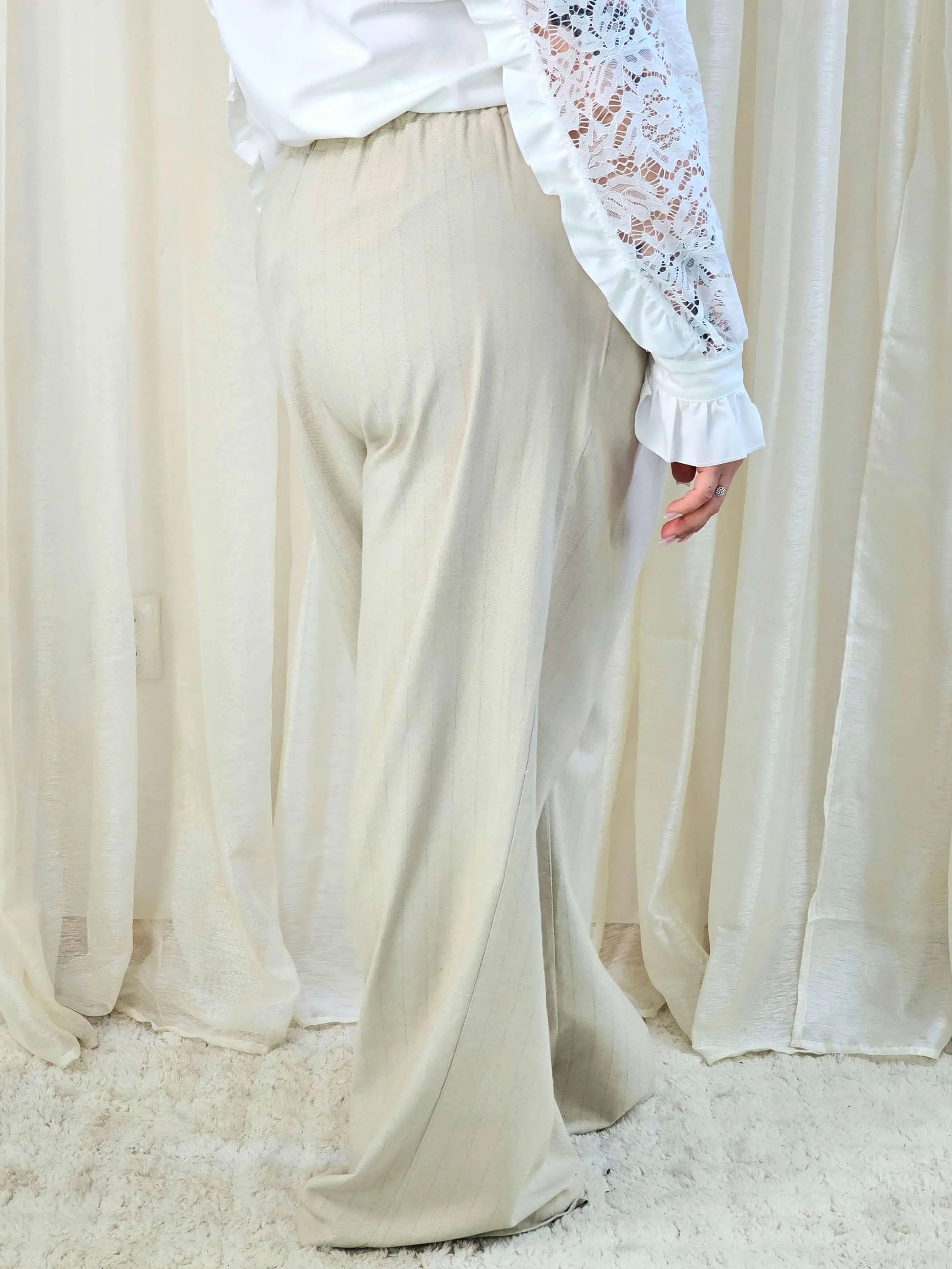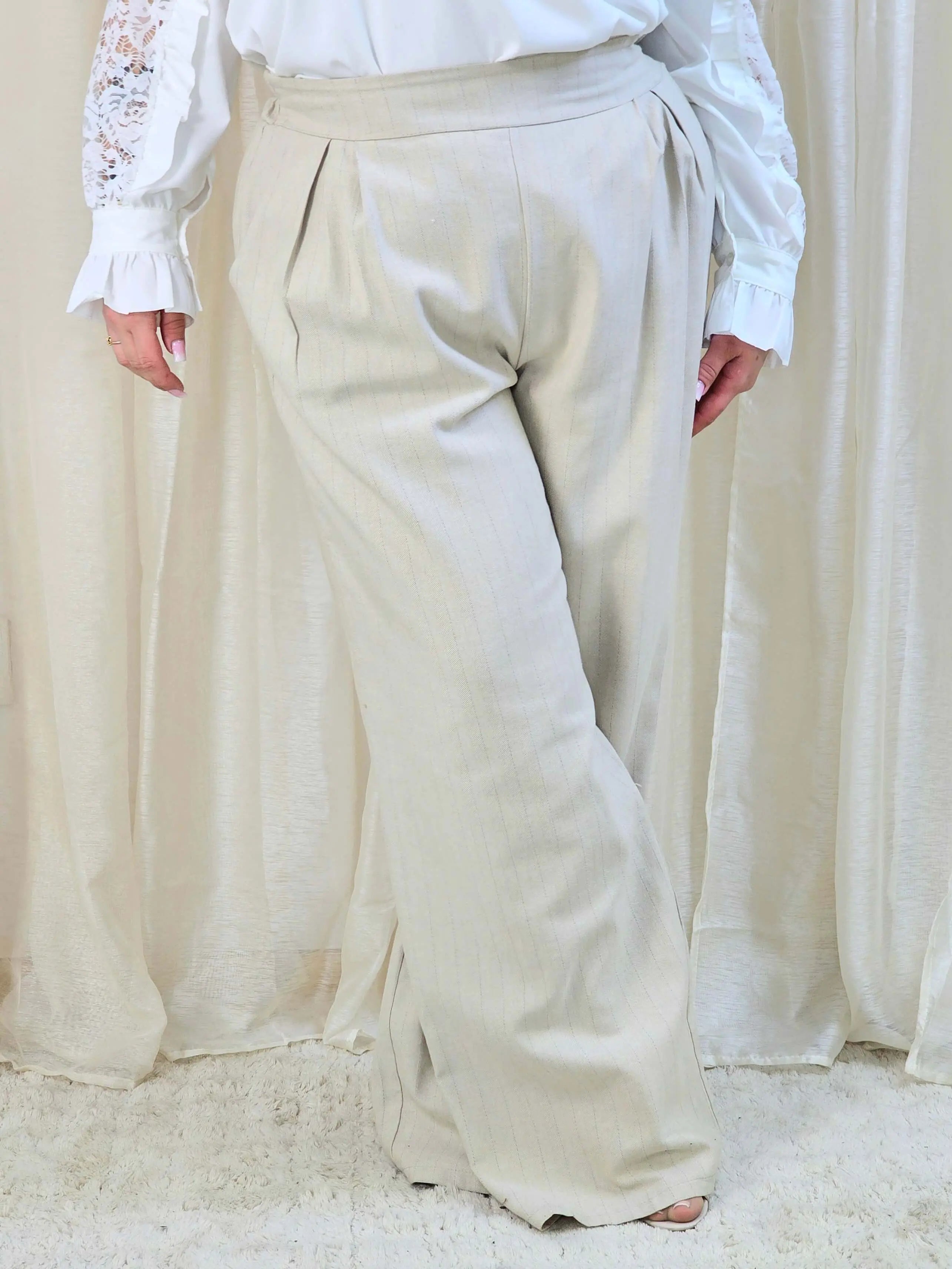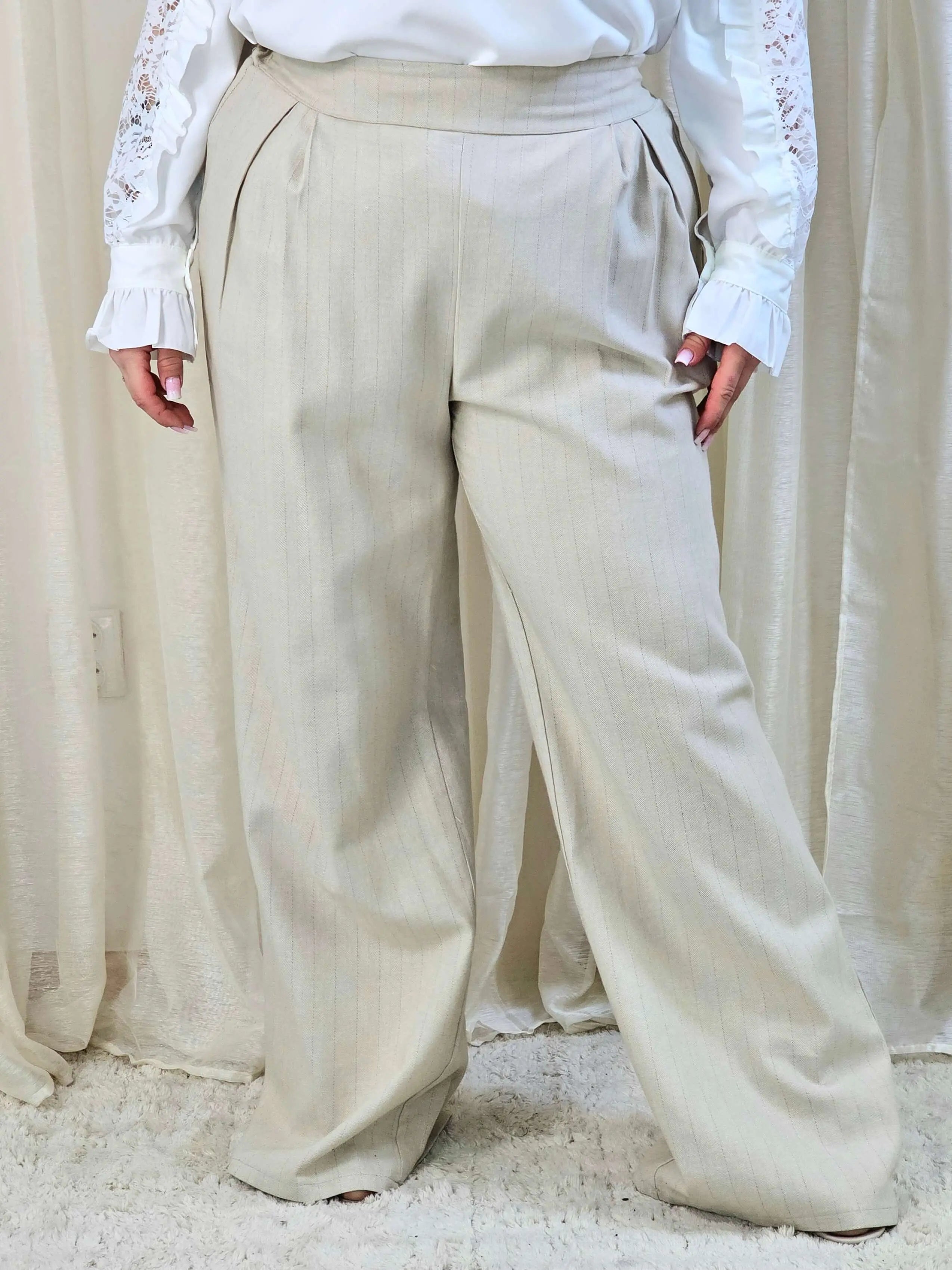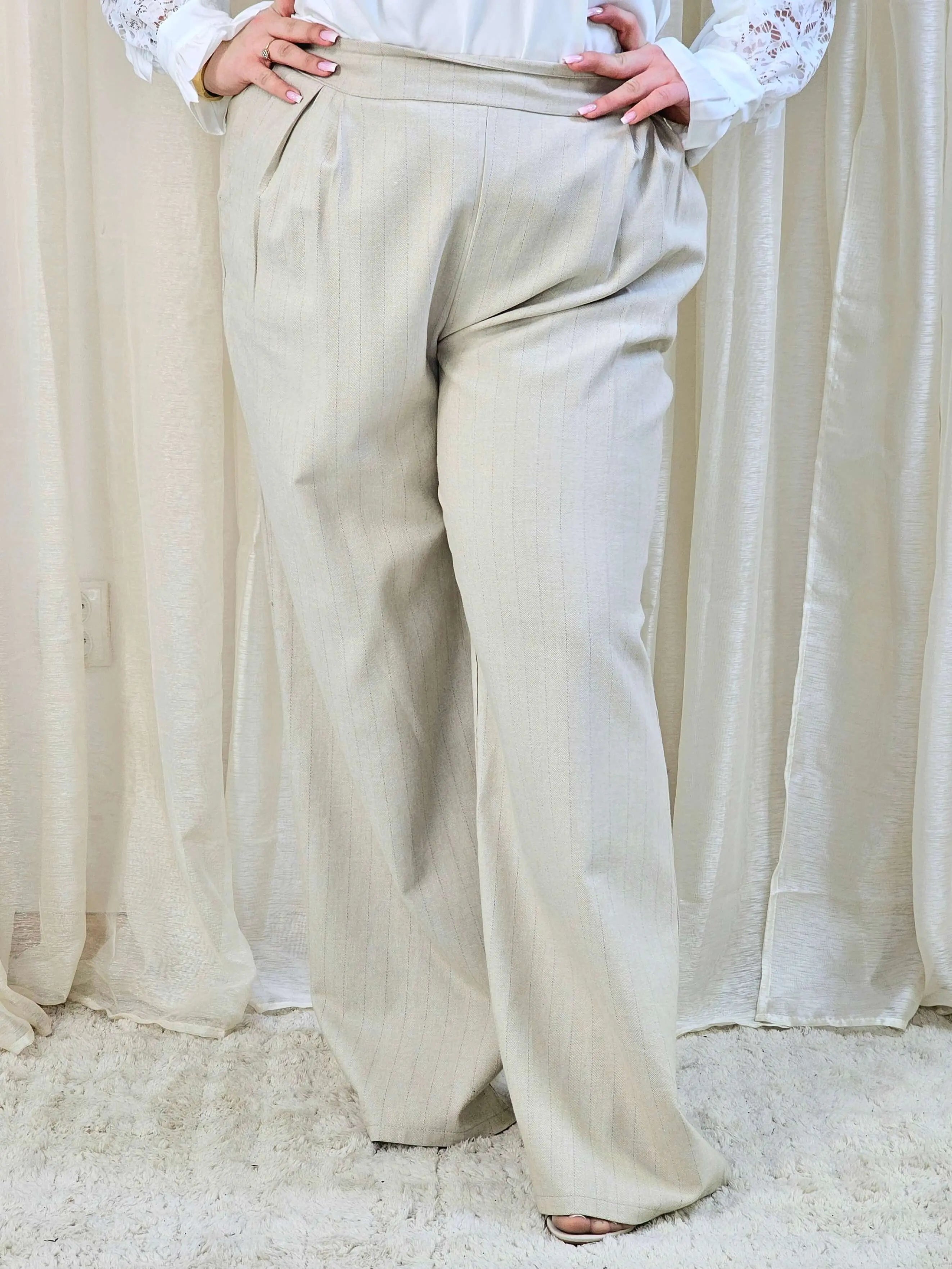 Spodnie plus size z wysokim stanem i delikatnym prążkiem