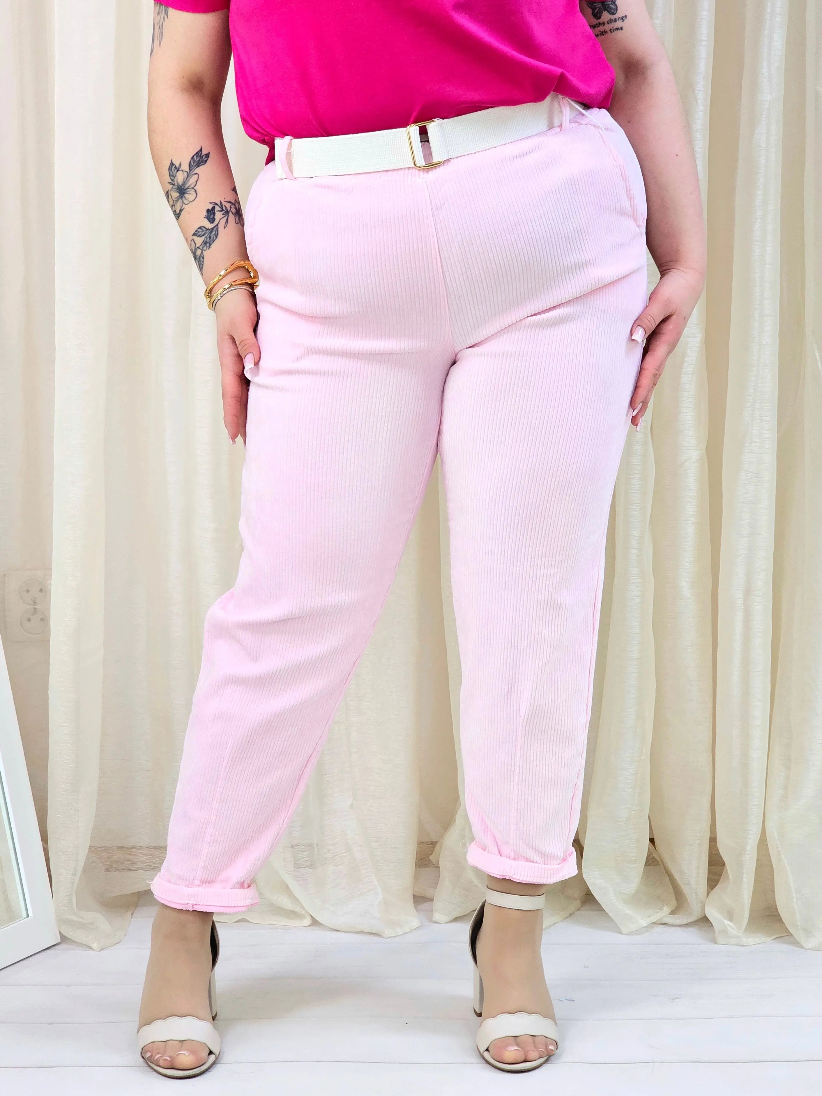Spodnie wykonane z cienkiego sztruksu do rozwiązania stylu i zagrożenia, które z zagrożenia wpasują się w każdą garderobę.