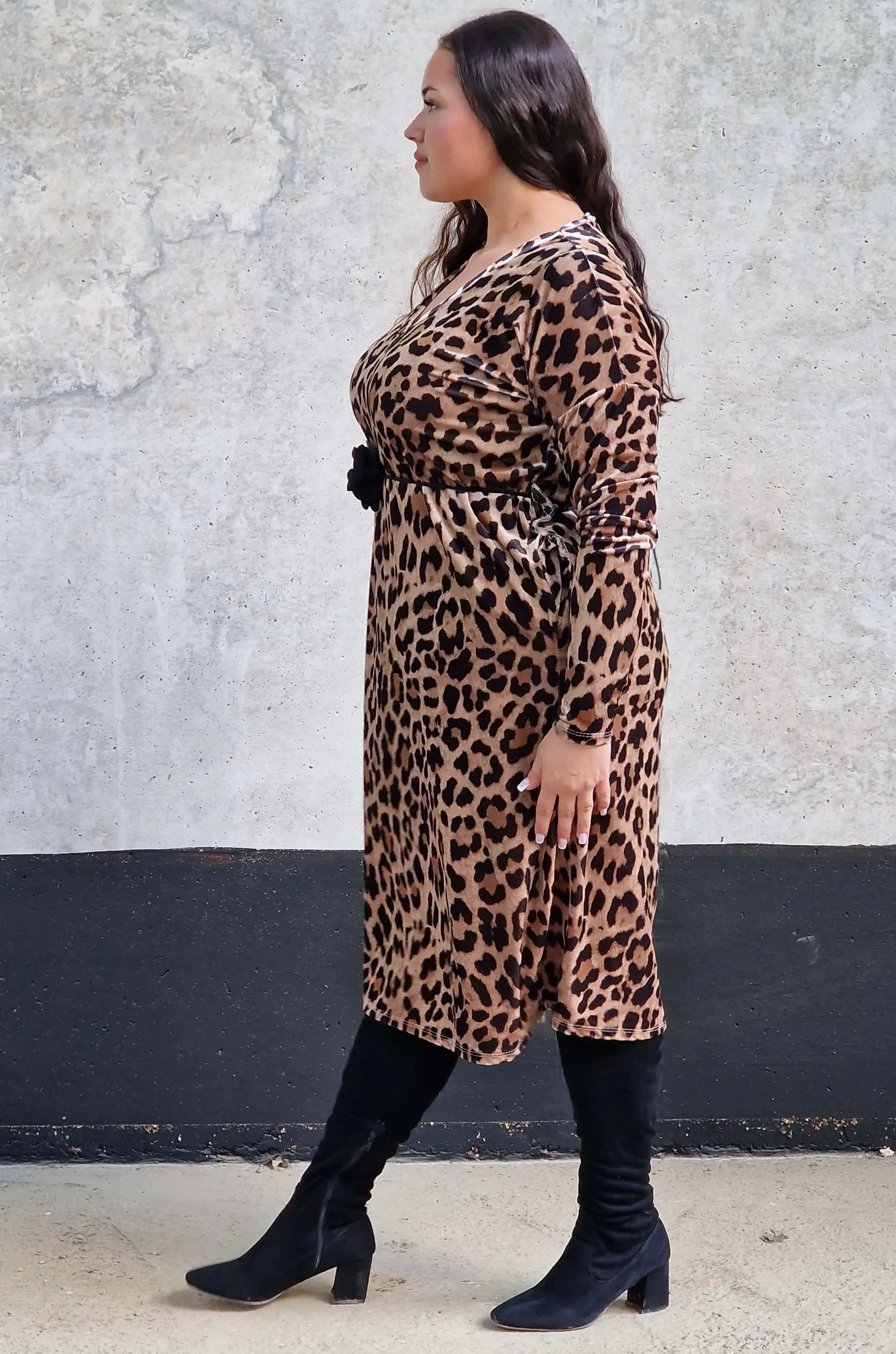 Efektowna sukienka w drapieżny lamparci print to połączenie odważnego stylu z subtelną nutą romantyzmu.