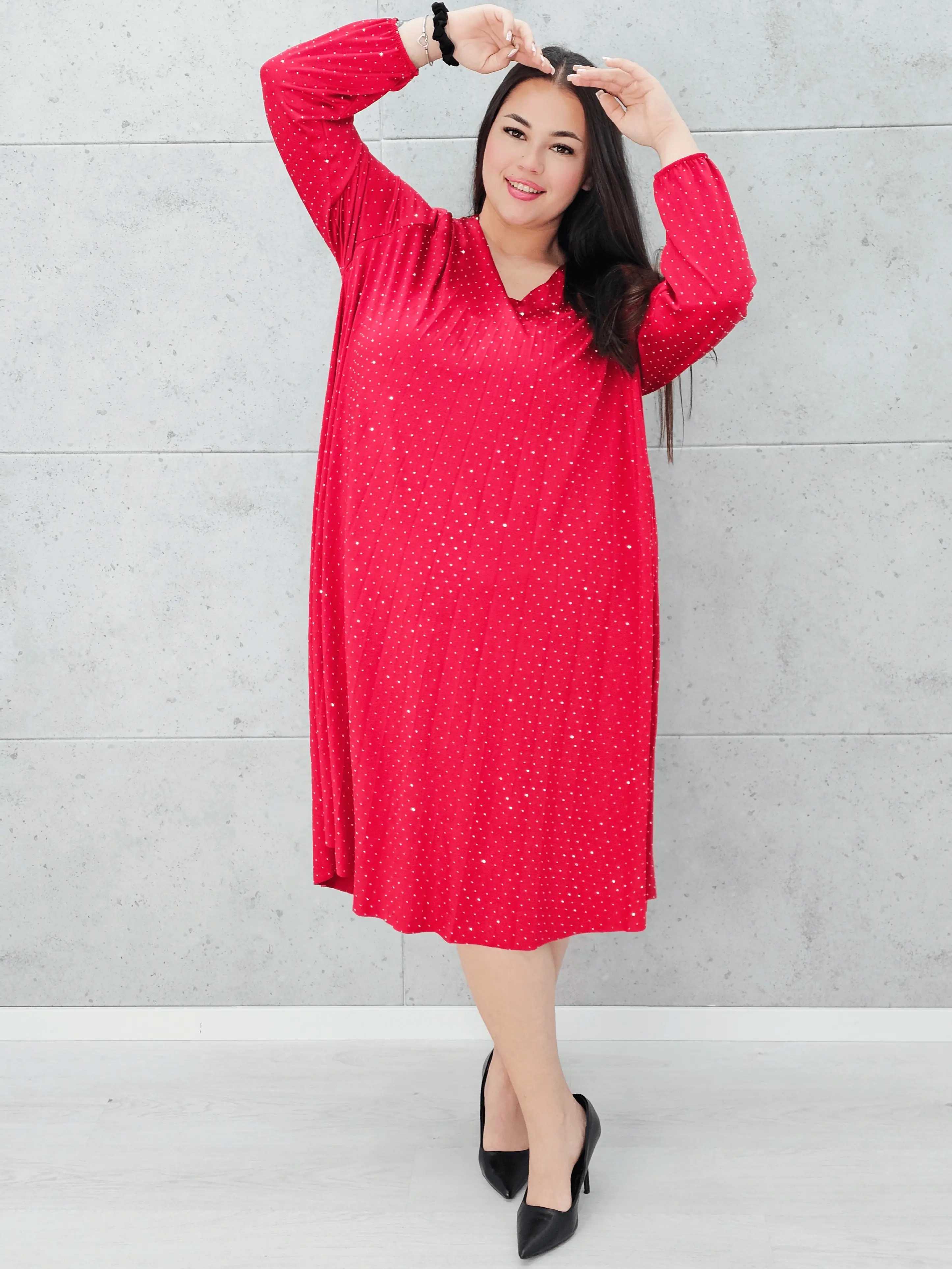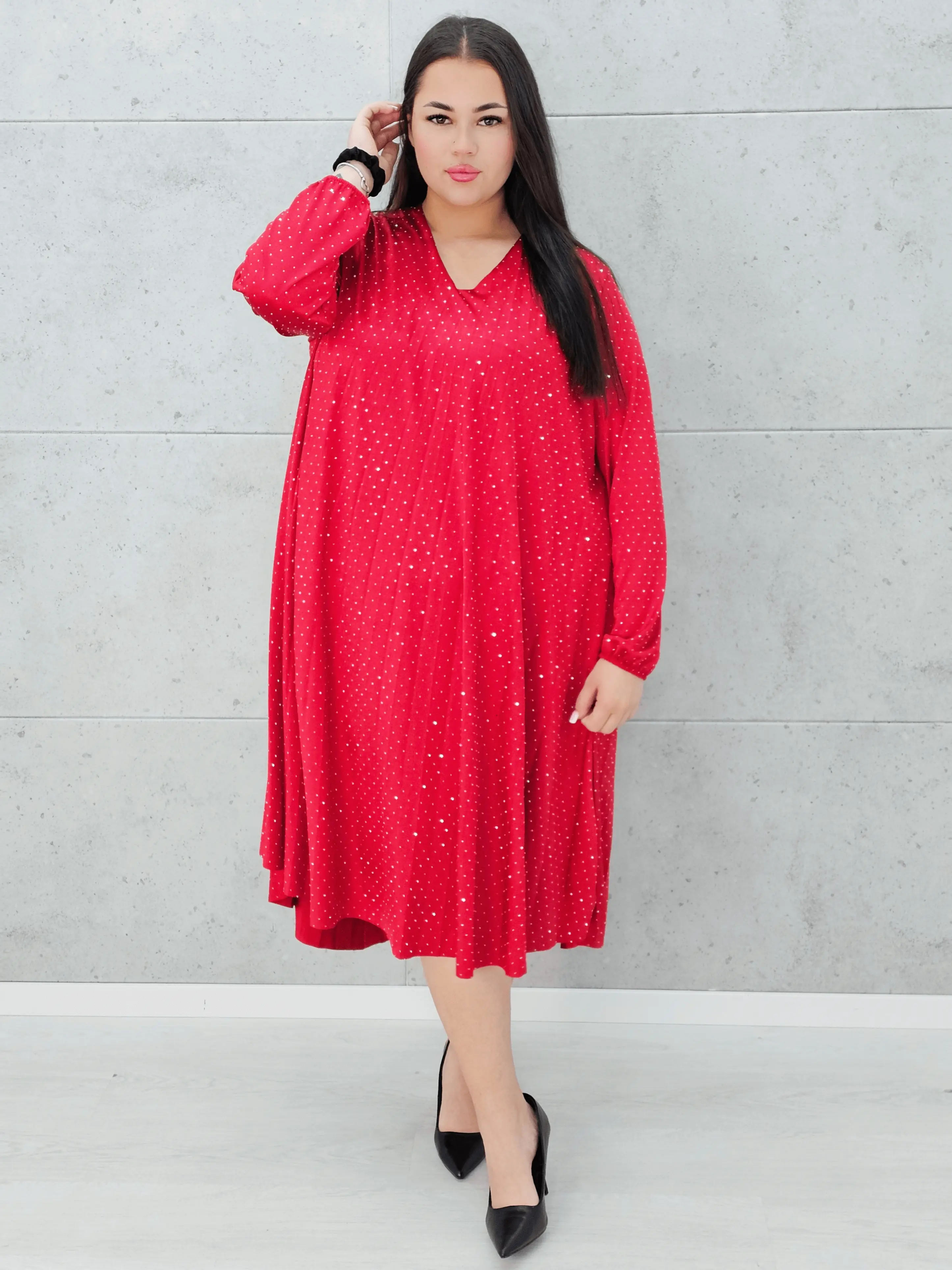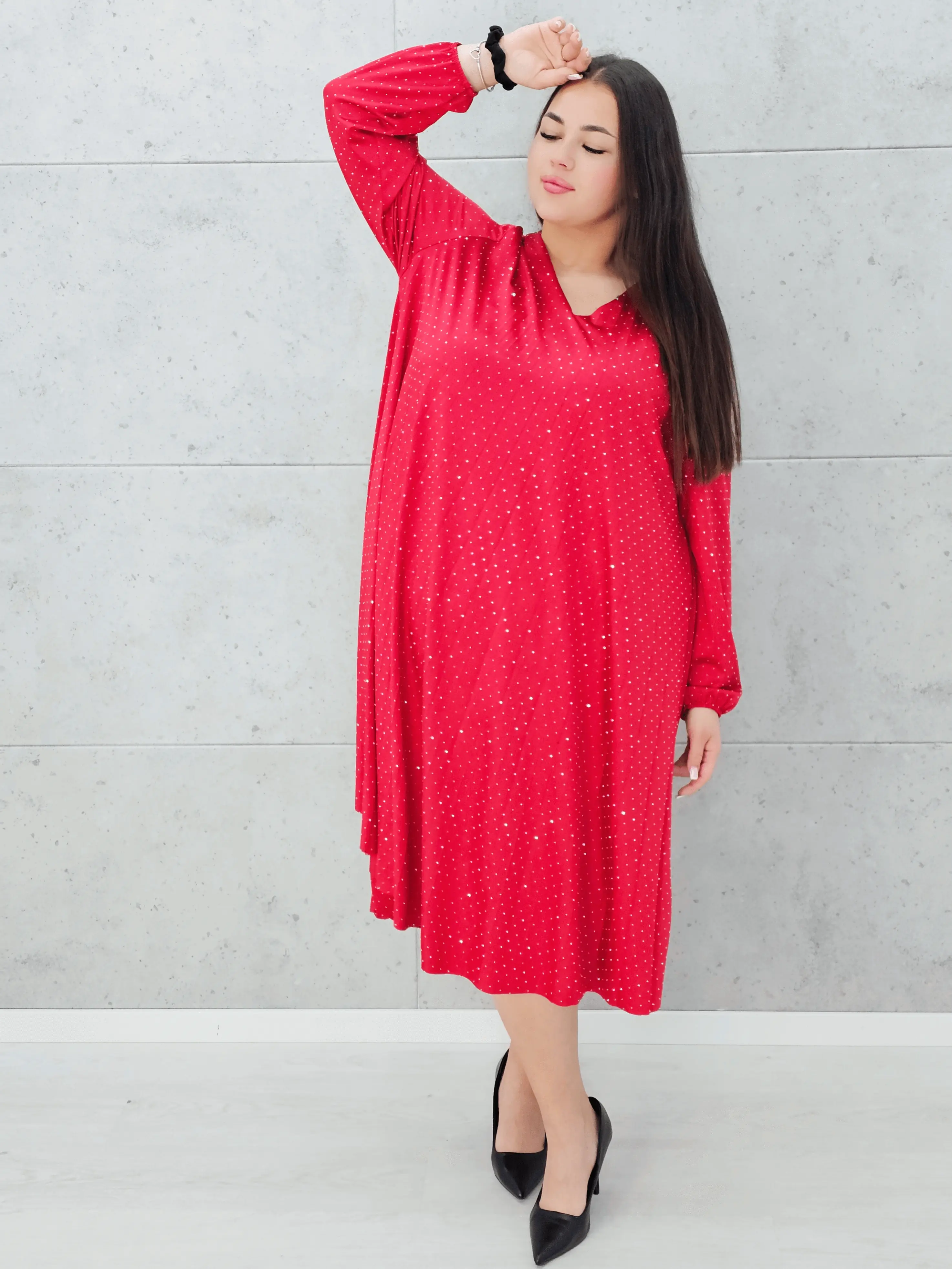 Szukasz sukienki, która doda Ci pewności siebie i podkreśli Twoją urodę? Ten model w intensywnej czerwieni i drobne groszki to ponadczasowa propozycja, która sprawdzi się zarówno na co dzień, jak i na wyjątkowe okazje. Zwiewny fason pięknie układa się na sylwetce i daje pełną swobodę ruchów.