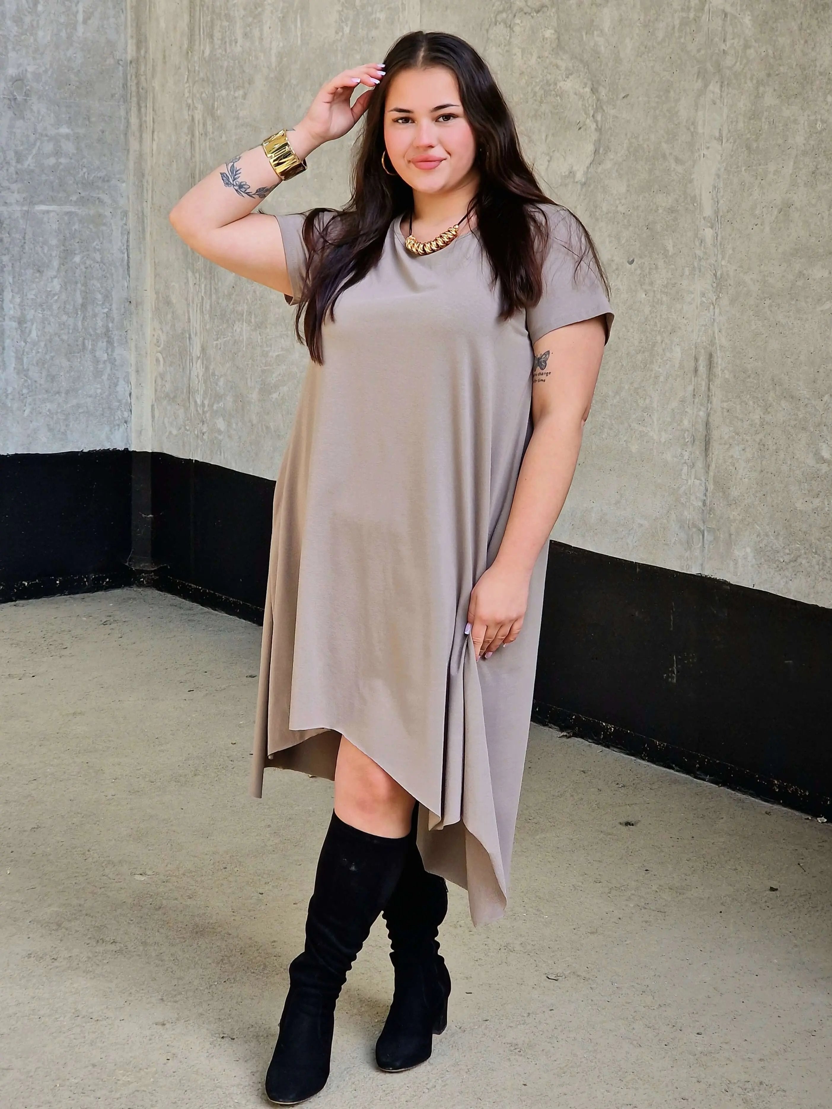 W duchu StylowaXL Moda Plus Size dla Kobiet, ta sukienka basic XXL łączy minimalizm, wygodę i kobiecy urok. Sprawdzi się zarówno w codziennym looku, jak i w podróży – zawsze gwarantując świeży, stylowy wygląd.