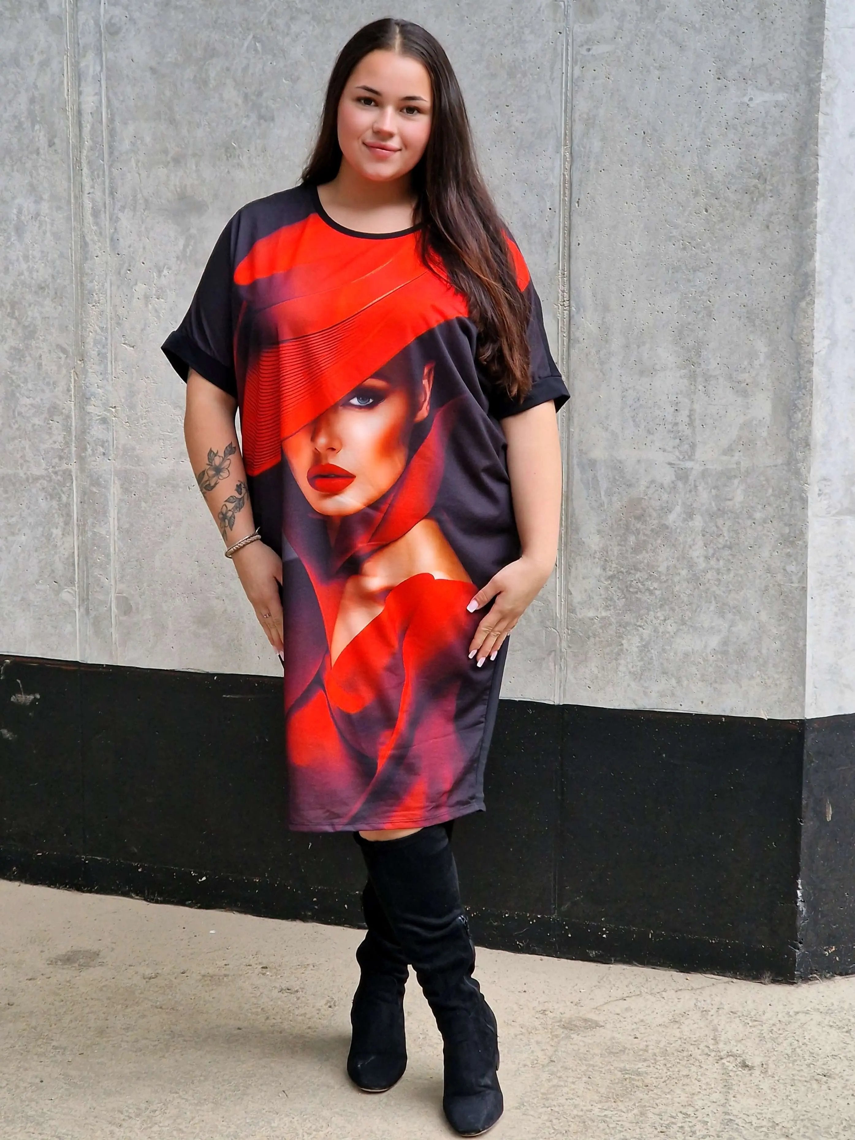 Sukienka bawełniana z aplikacja na przodzie.