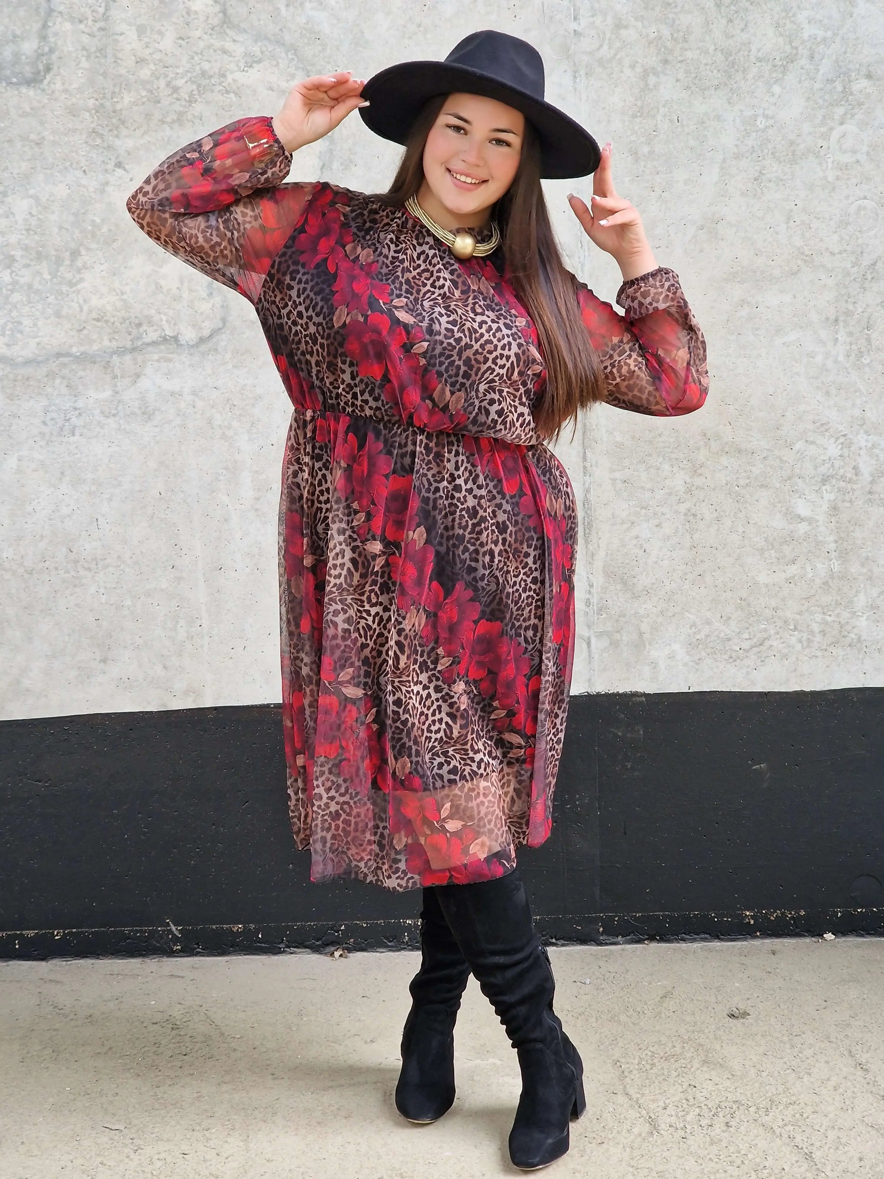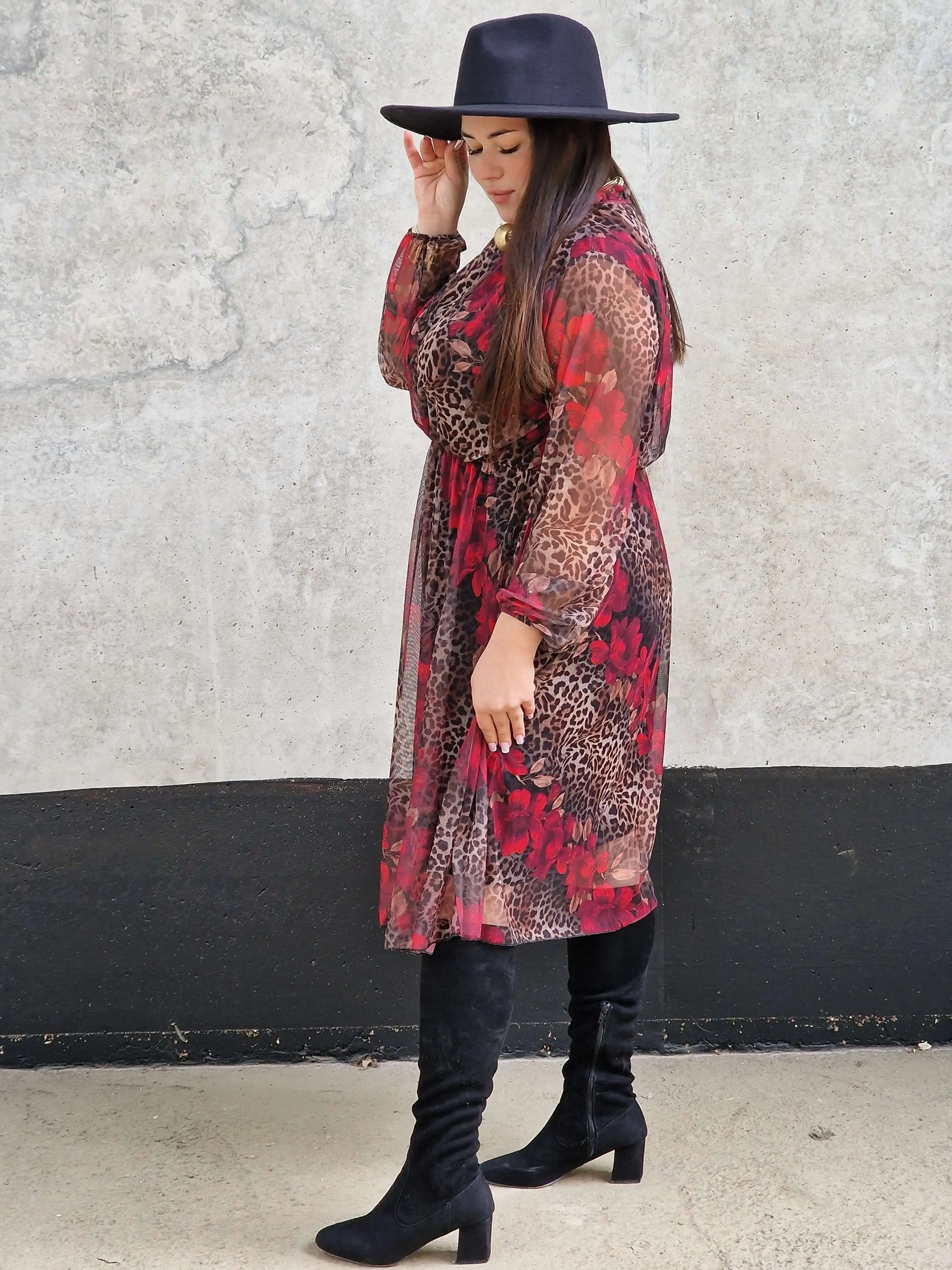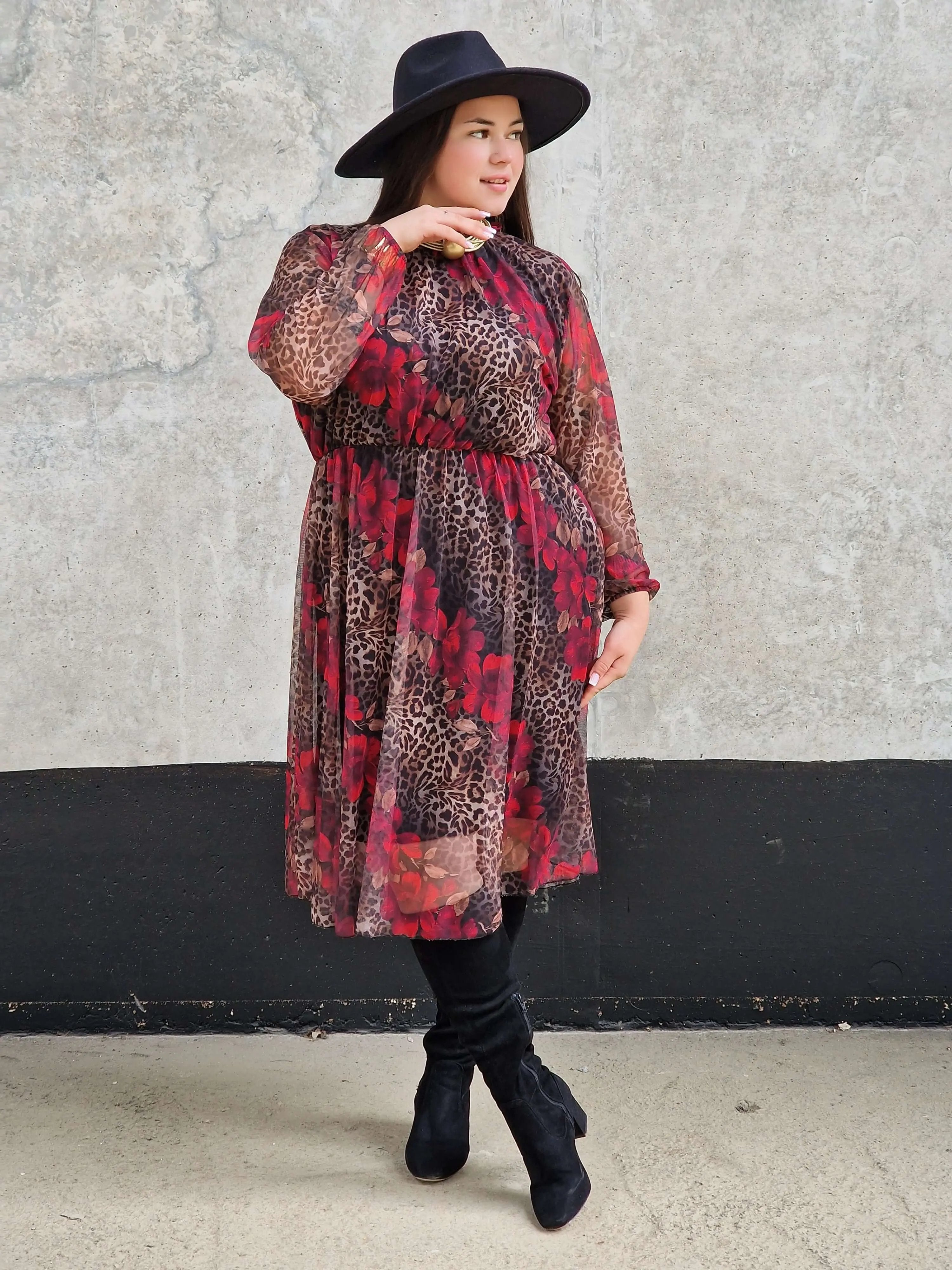 Sukienka z tiulem w panterkę i kwiaty – kobiecy pazur i romantyczna lekkość 🌹🐆