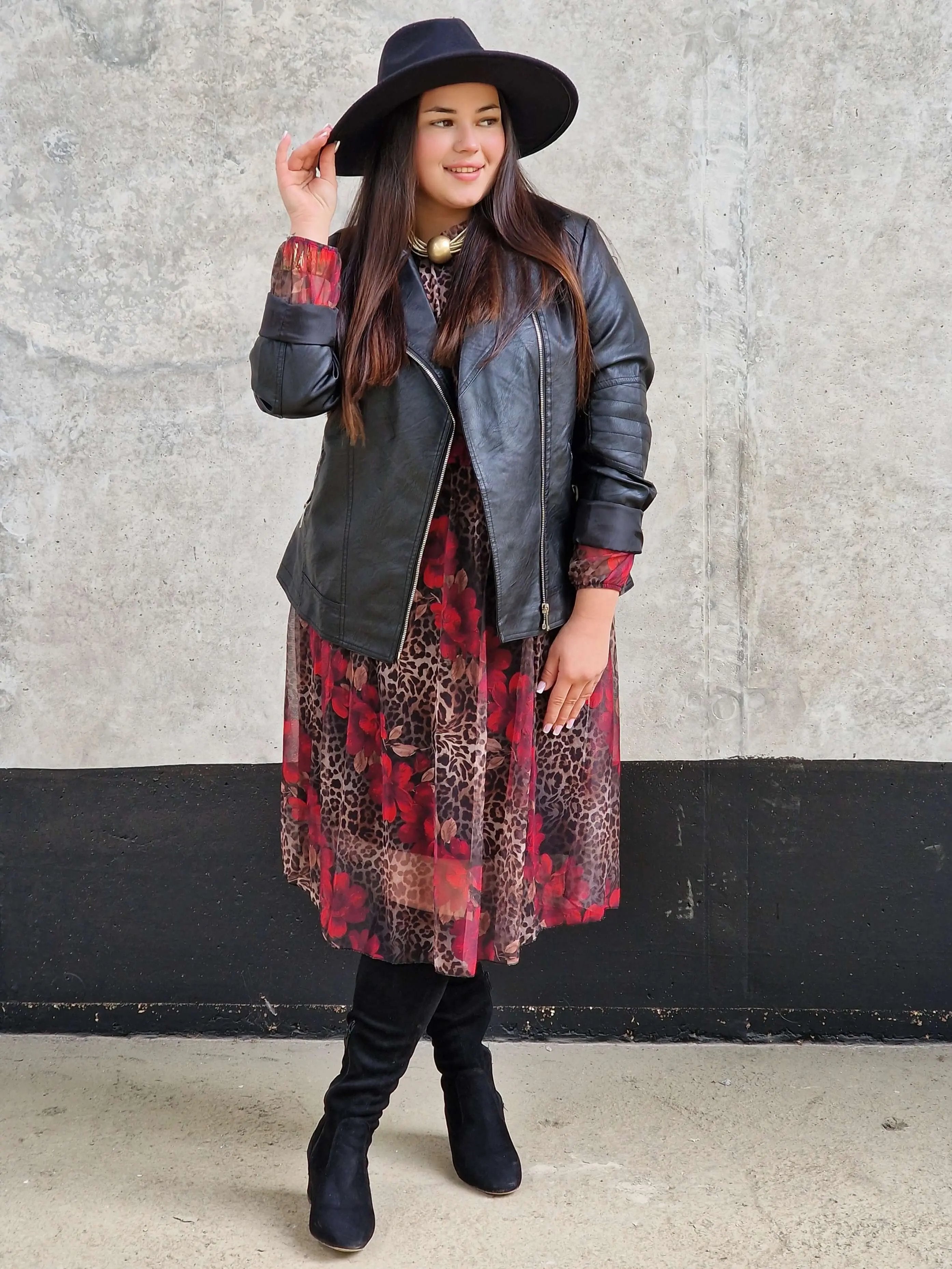 ✔️ Połączenie motywu panterki i kwiatów w czerwieniach lub fuksji