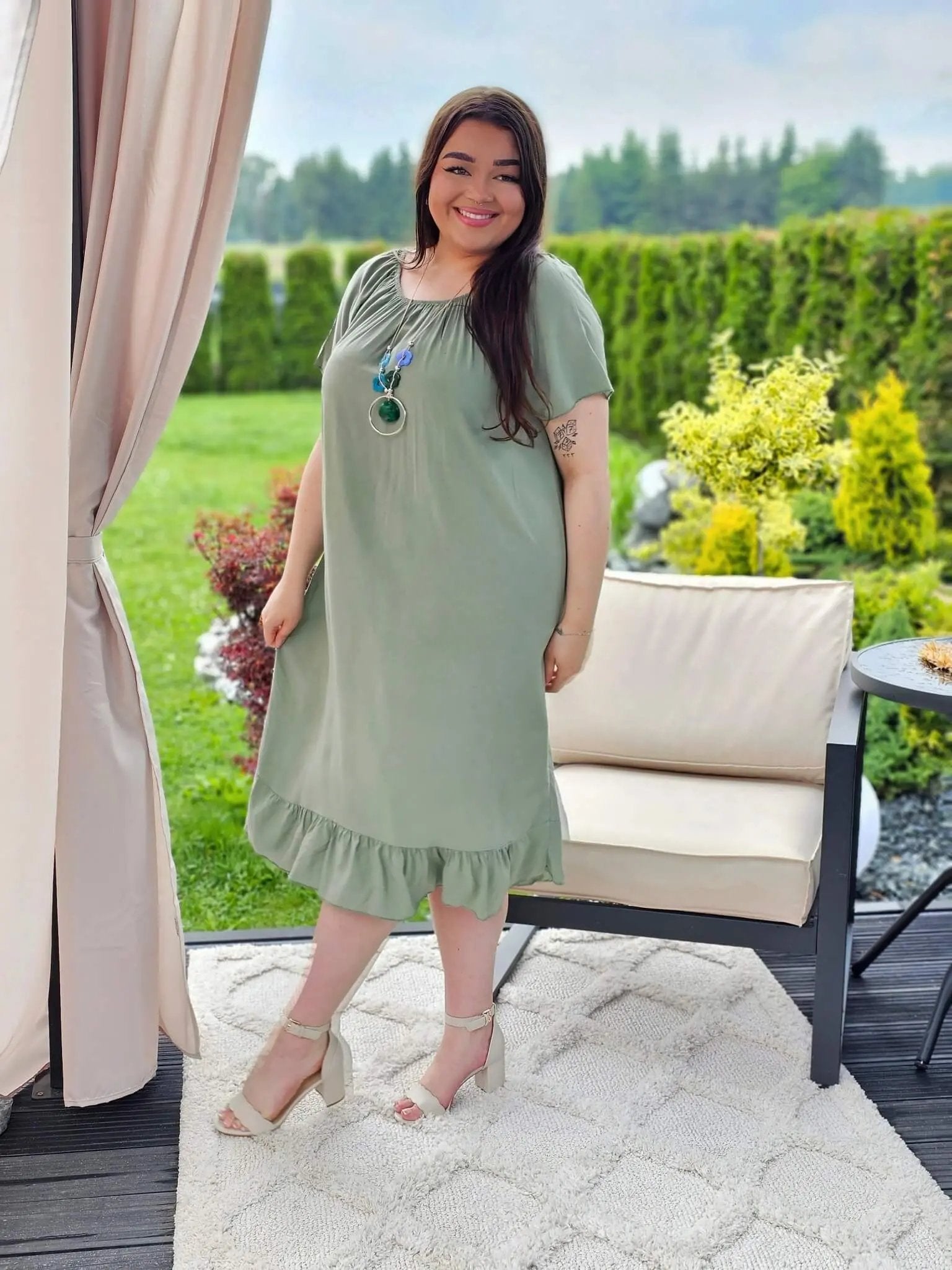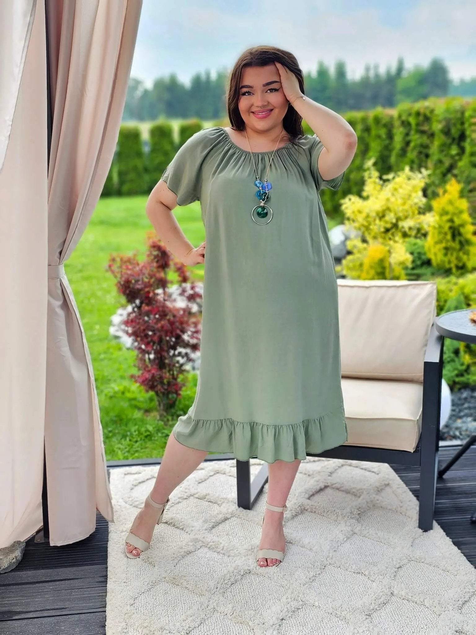 Sukienka hiszpanka brzmi bardzo stylowo i elegancko. Materiał wiskozy jest miękki i przewiewny, co sprawia, że sukienka jest idealna na ciepłe dni. Krótki rękaw zapewni komfort noszenia, a falbana na dole dodaje lekkości i zwiewności. Dołączony naszyjnik może stanowić ciekawy akcent i uzupełnić całość stylizacji.