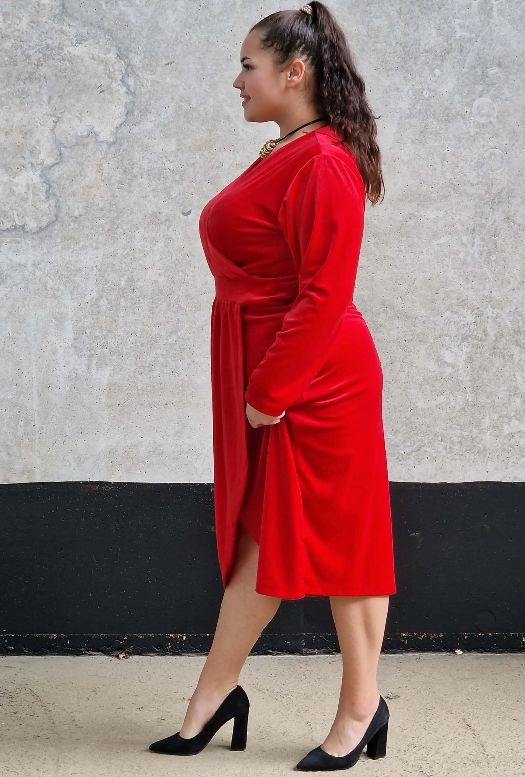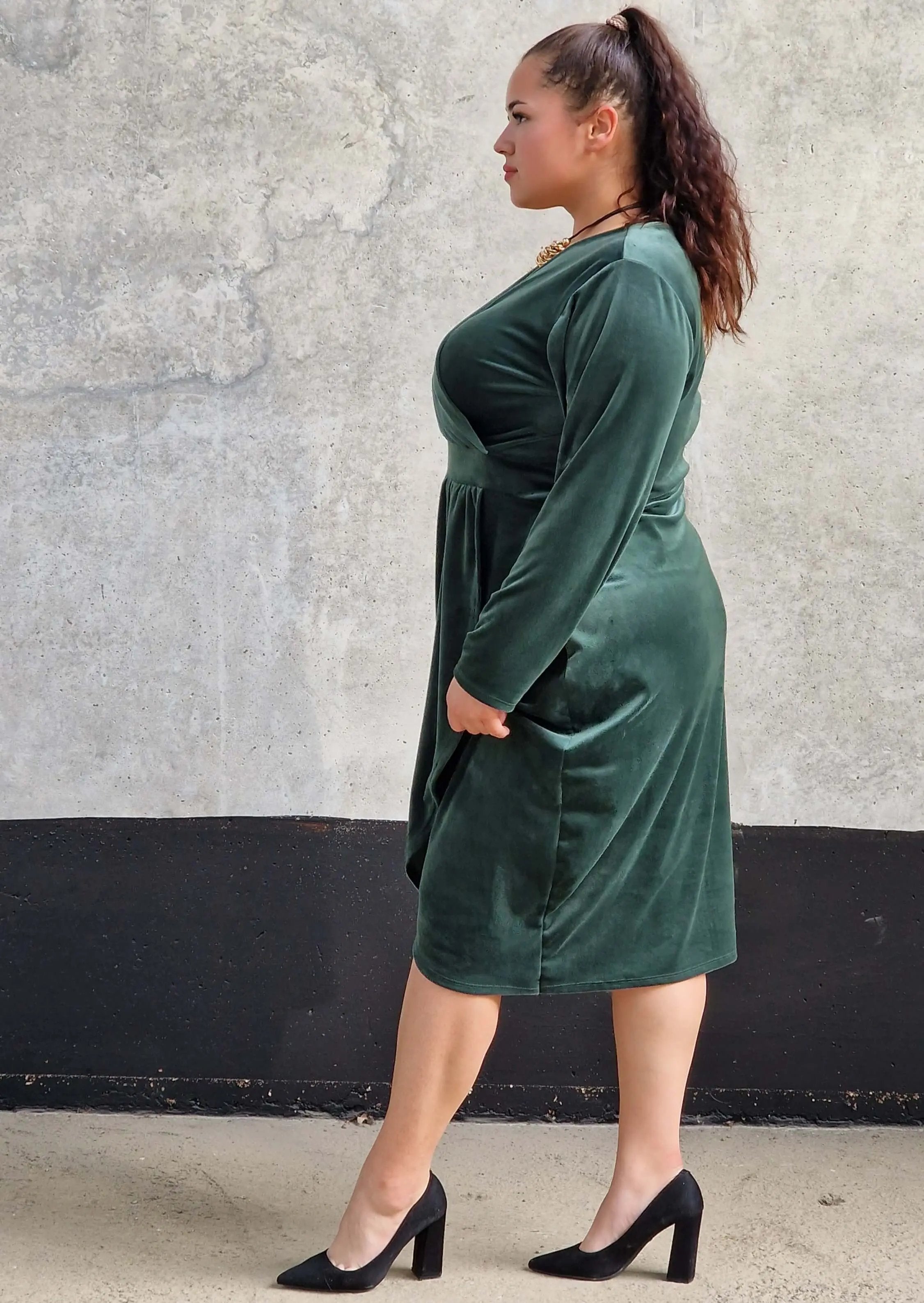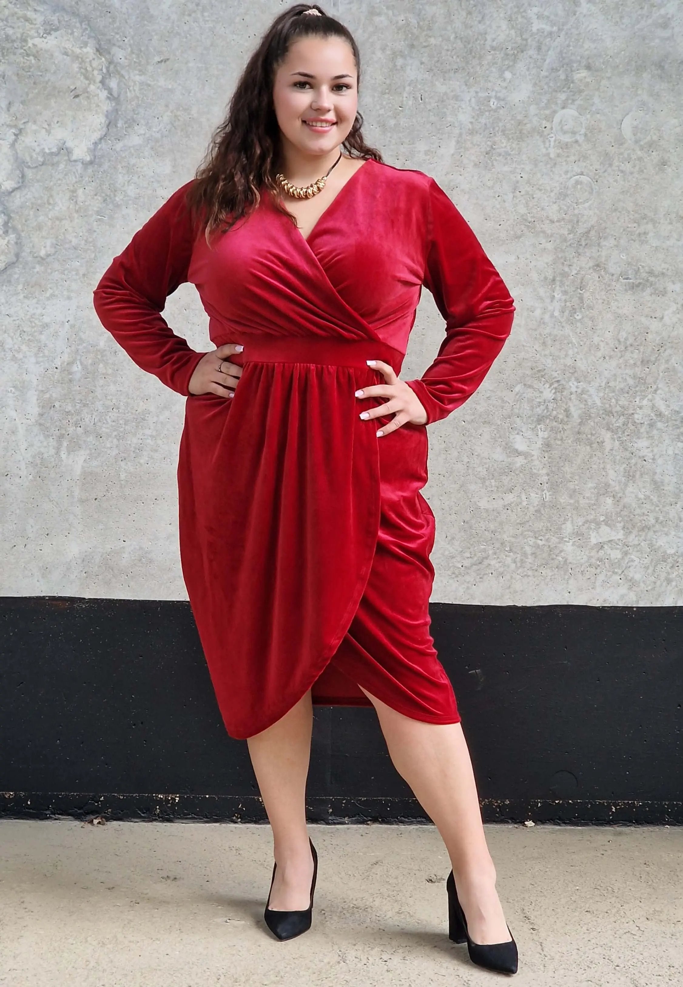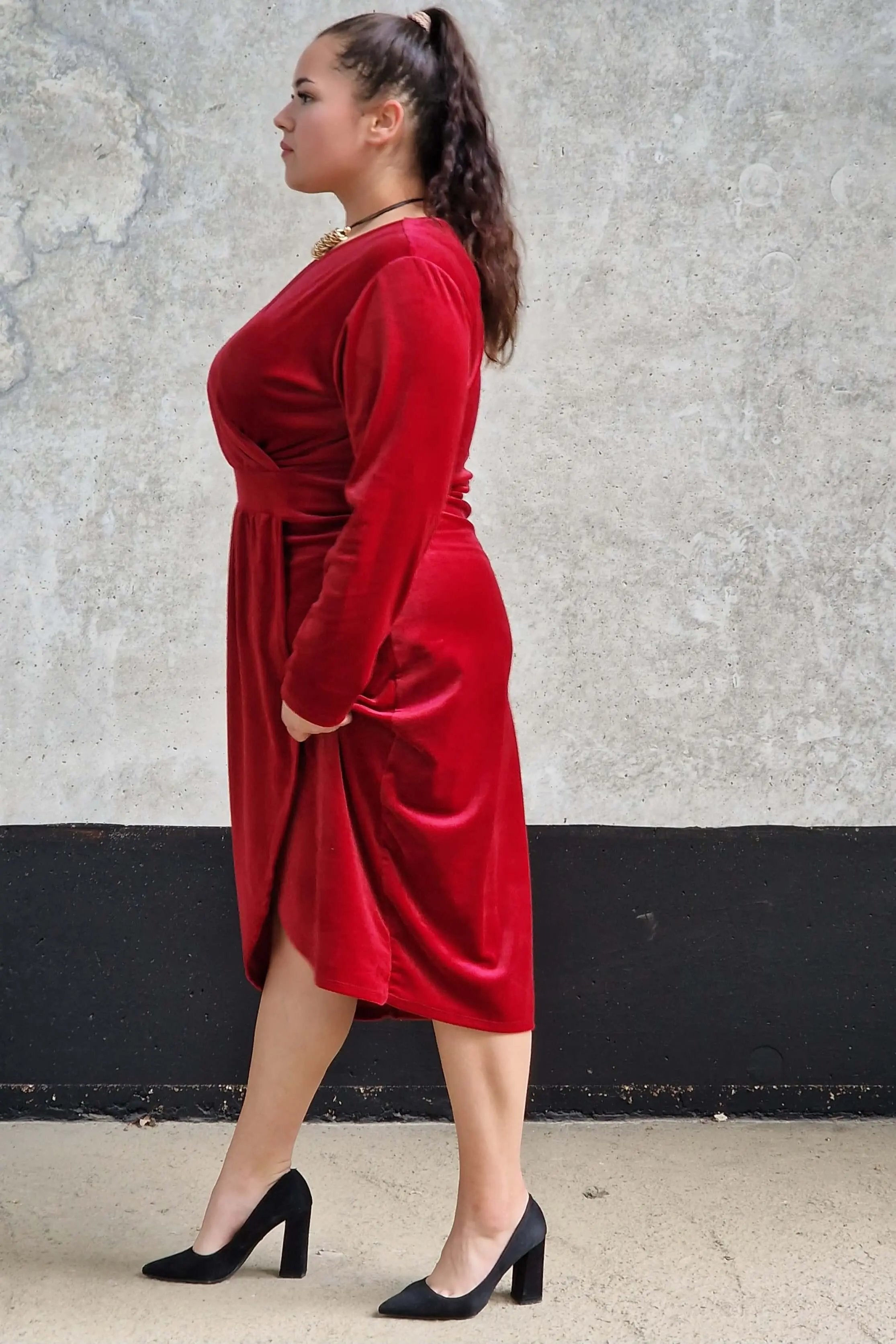 Szukasz sukienki, która połączy wygodę z elegancją? Ten welurowy model to prawdziwy hit! Miękki materiał otula ciało, a zakładany krój pięknie podkreśla kobiecą sylwetkę. Kopertowy dekolt, szeroki pas i efektowne drapowanie sprawiają, że wygląda zjawiskowo – zarówno w wersji dziennej, jak i wieczorowej. Do wyboru aż cztery kolory – wybierz swój!