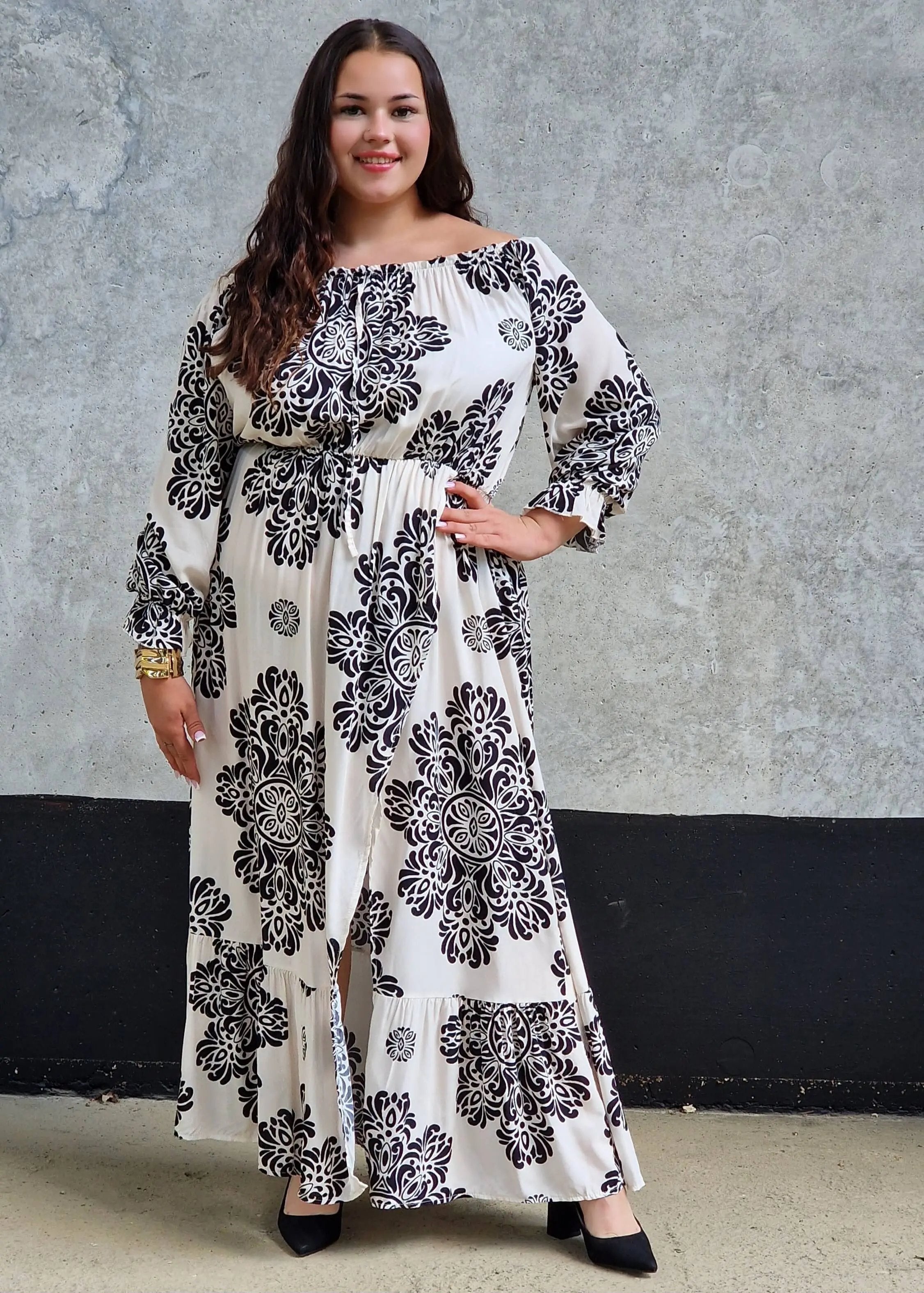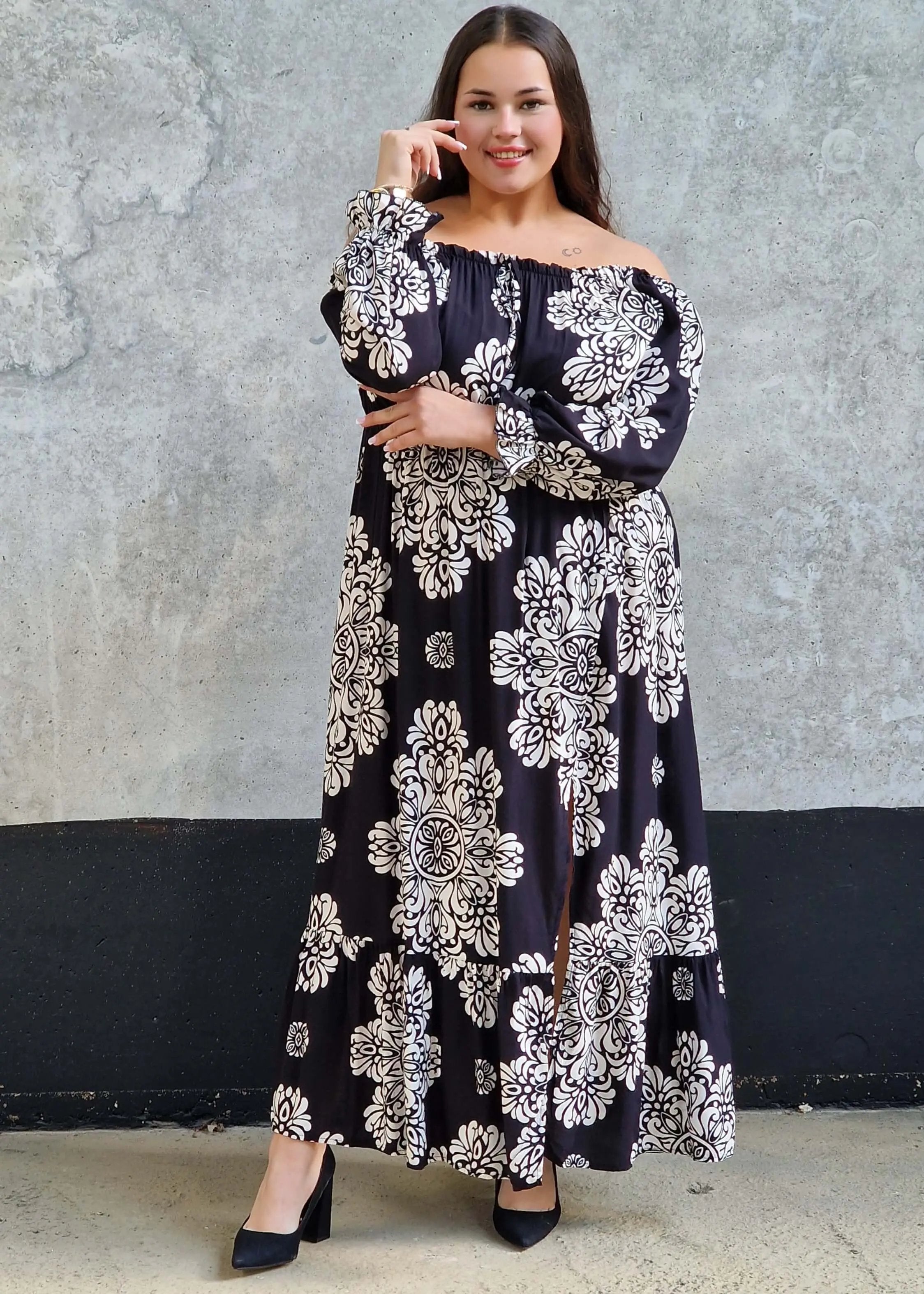 Dostępna w czterech intensywnych kolorach z ornamentowym printem, ta sukienka maxi plus size wygląda spektakularnie niezależnie od wersji. Luźny, przewiewny fason sprawia, że doskonale dopasowuje się do sylwetki XXL, gwarantując pełen komfort i swobodę ruchów.
