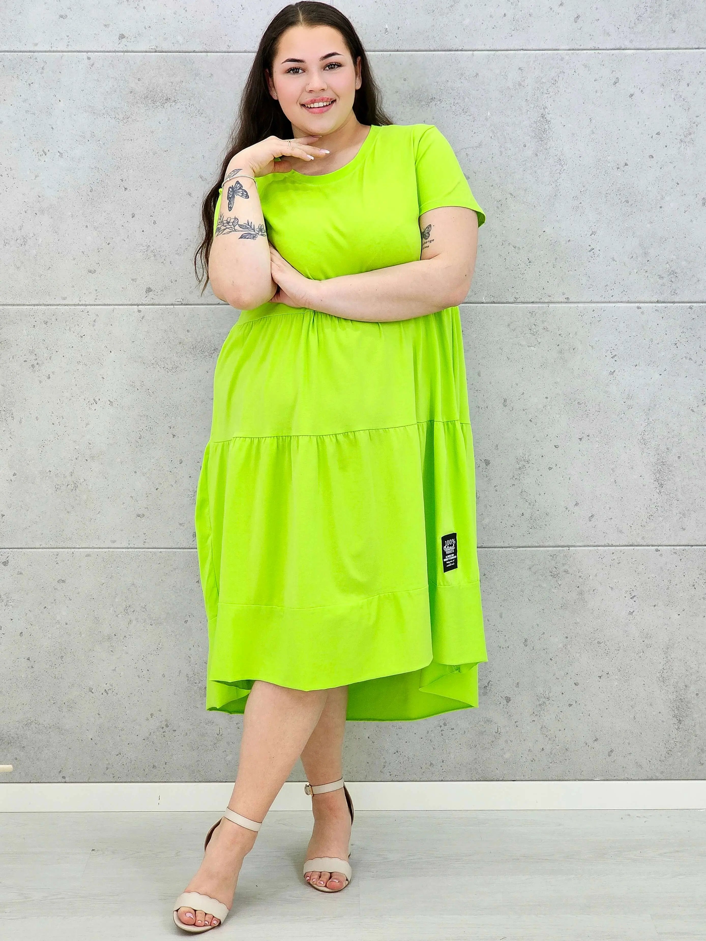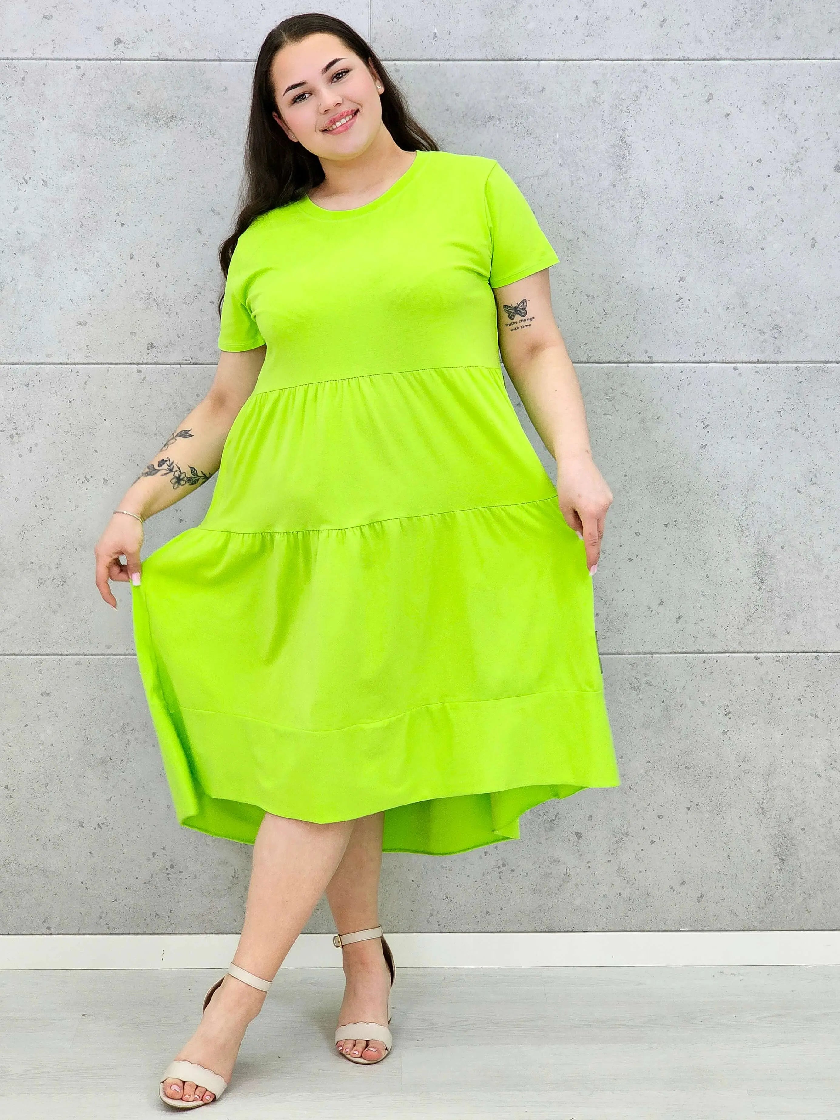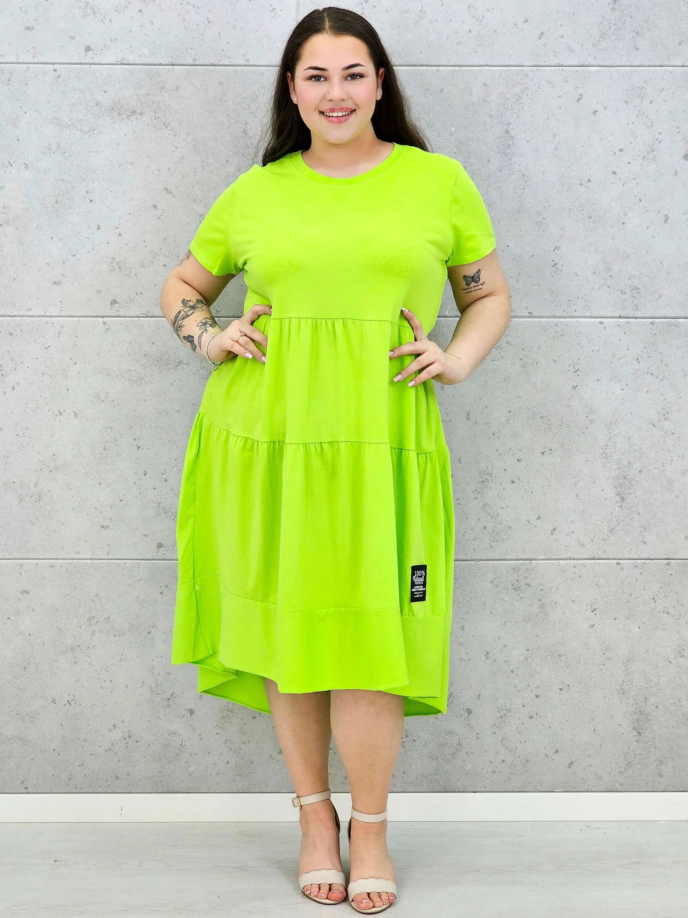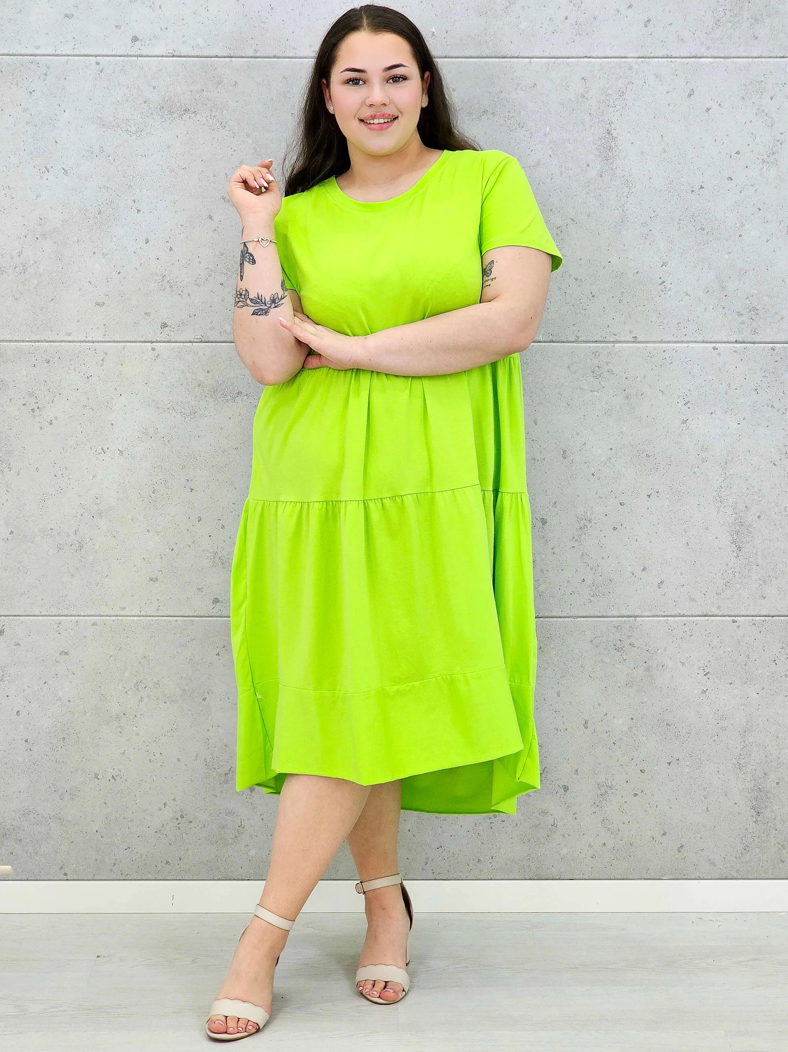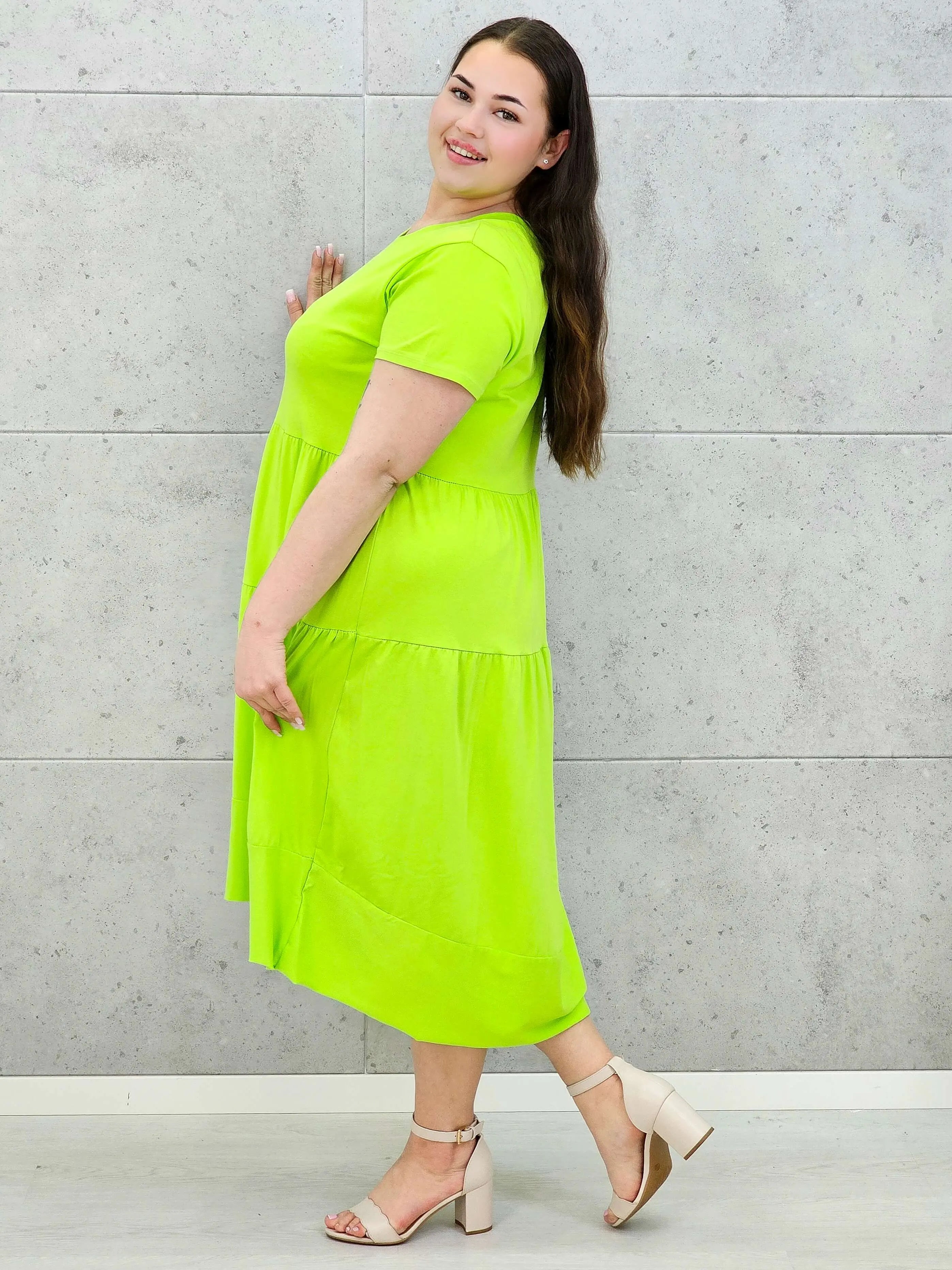 Prezentujemy stylową sukienkę midi, idealną na każdą okazję. Sukienka wykonana jest z wysokiej jakości materiału, który zapewnia komfort noszenia przez cały dzień. Model ma krótkie rękawy, co sprawia, że jest doskonała na cieplejsze dni.