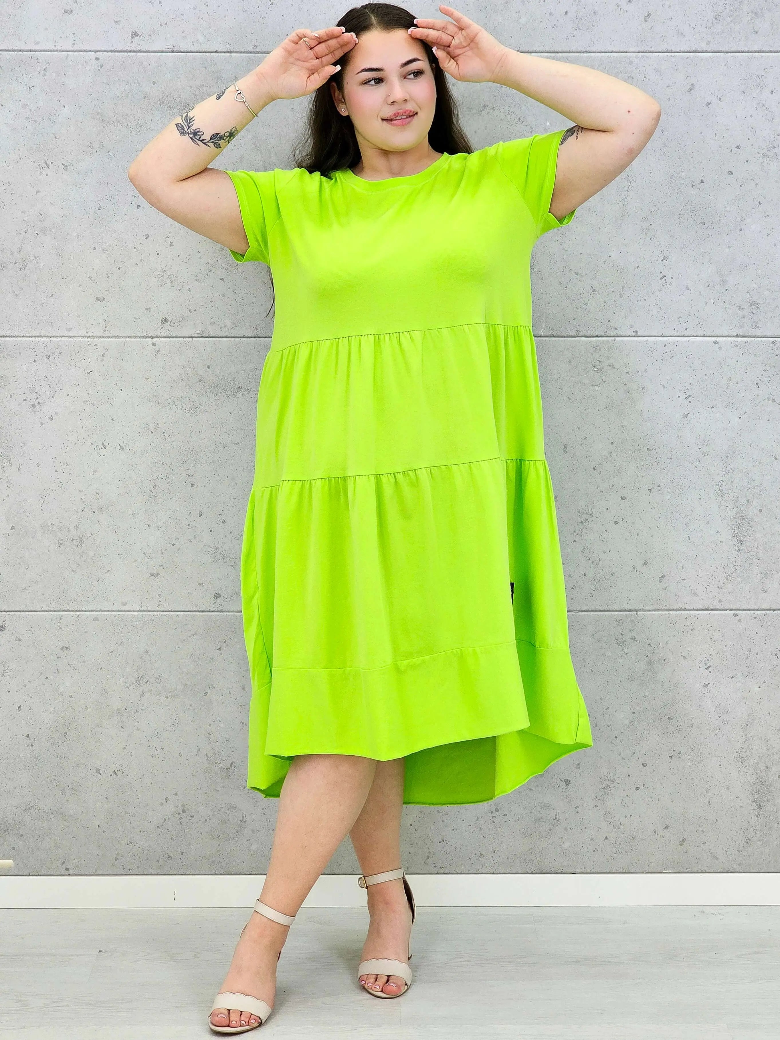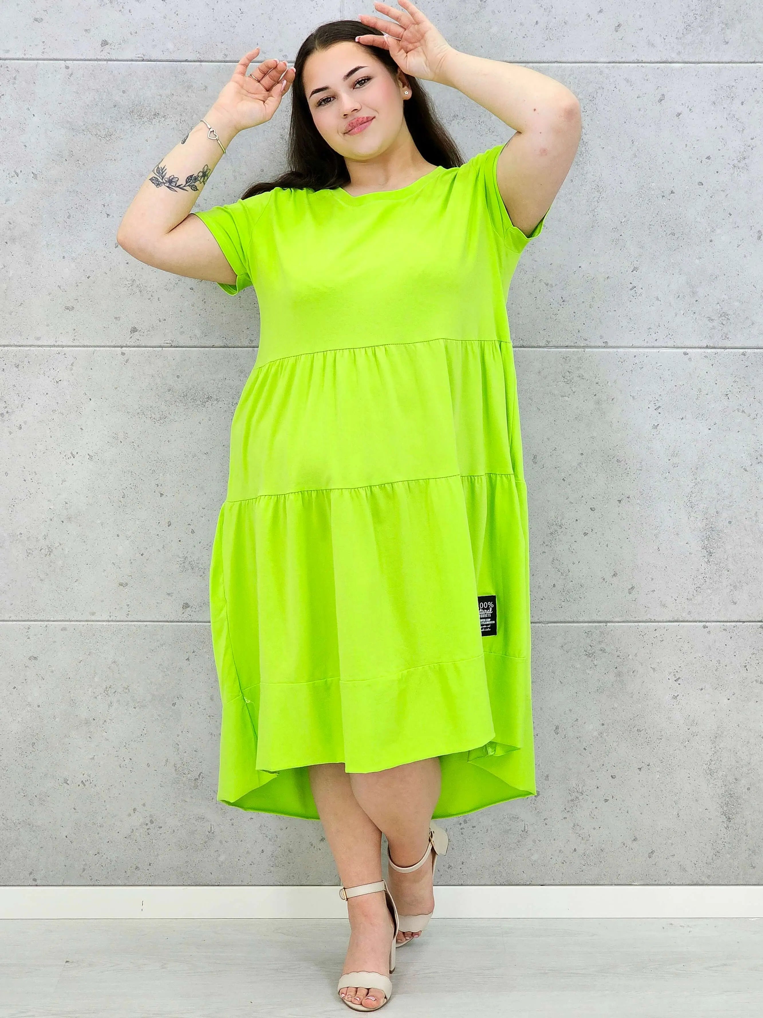 - Krój: Luźny, z kilkoma warstwami, które nadają sukience lekkości i swobodnego wyglądu