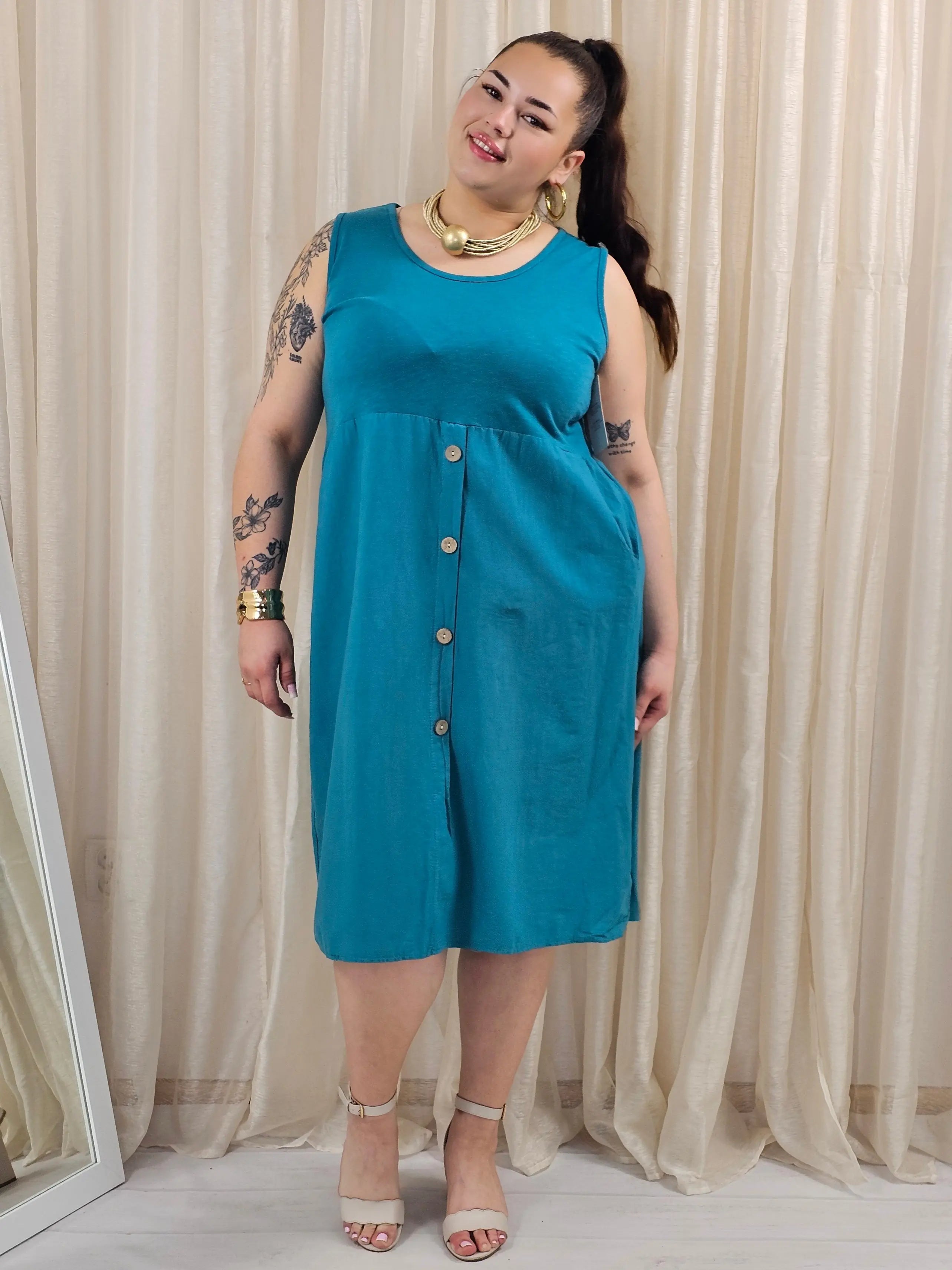 Sukienka odcinana pod biustem dołem ozdobne guziczki w kilku kolorach